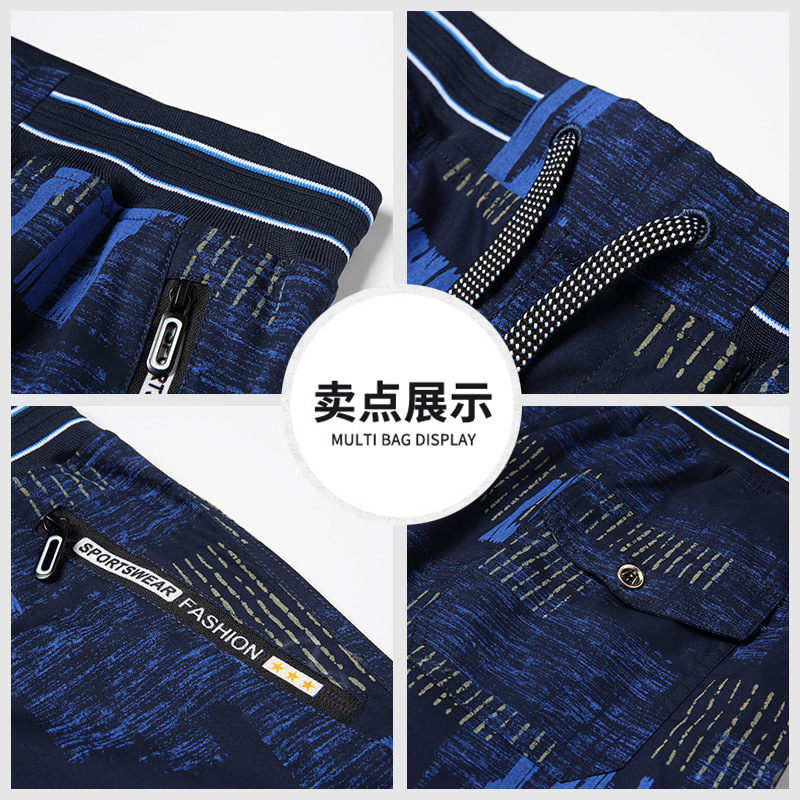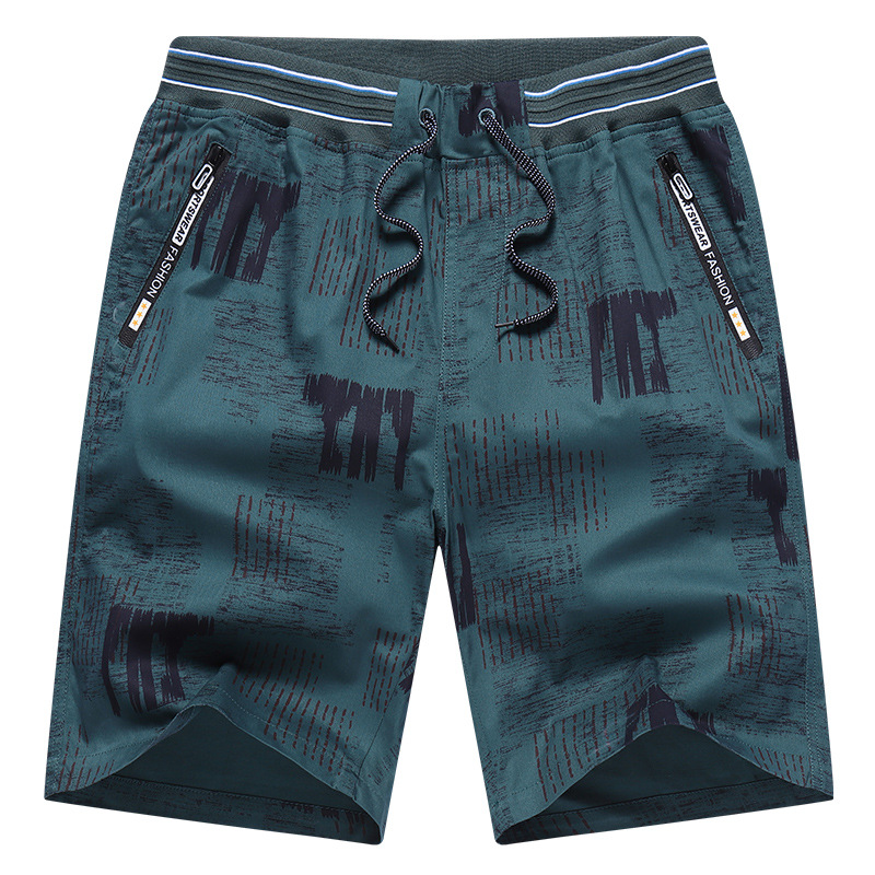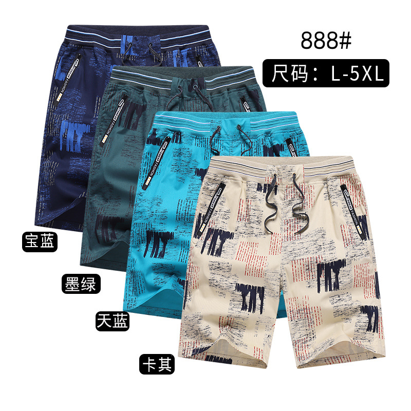 男士短裤男款夏季休闲沙滩裤纯棉迷彩五分裤中年居家印花外穿中裤