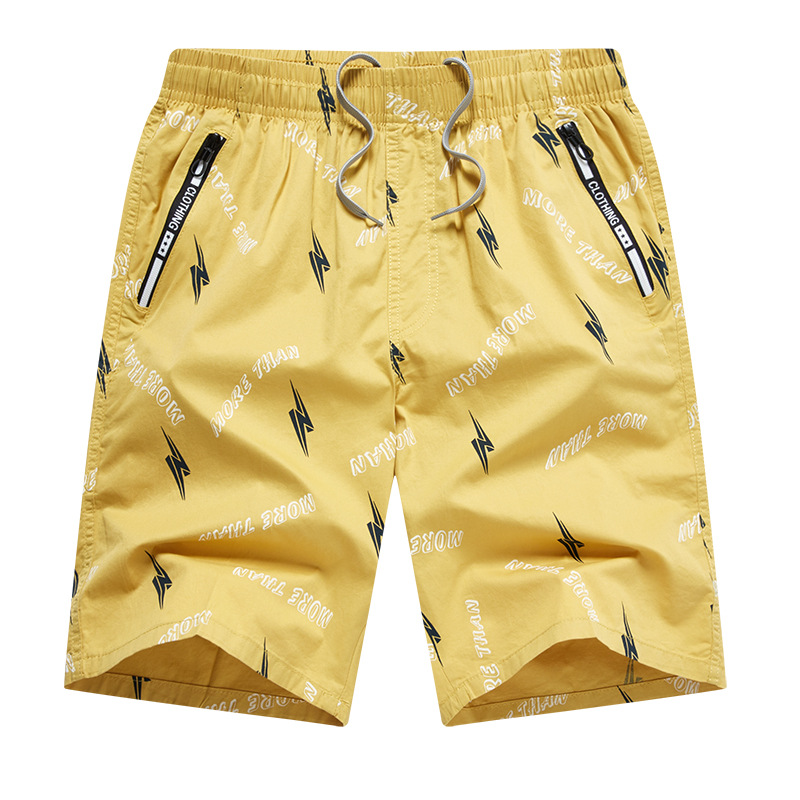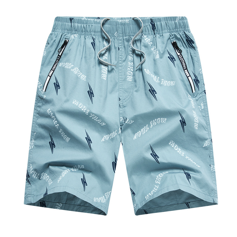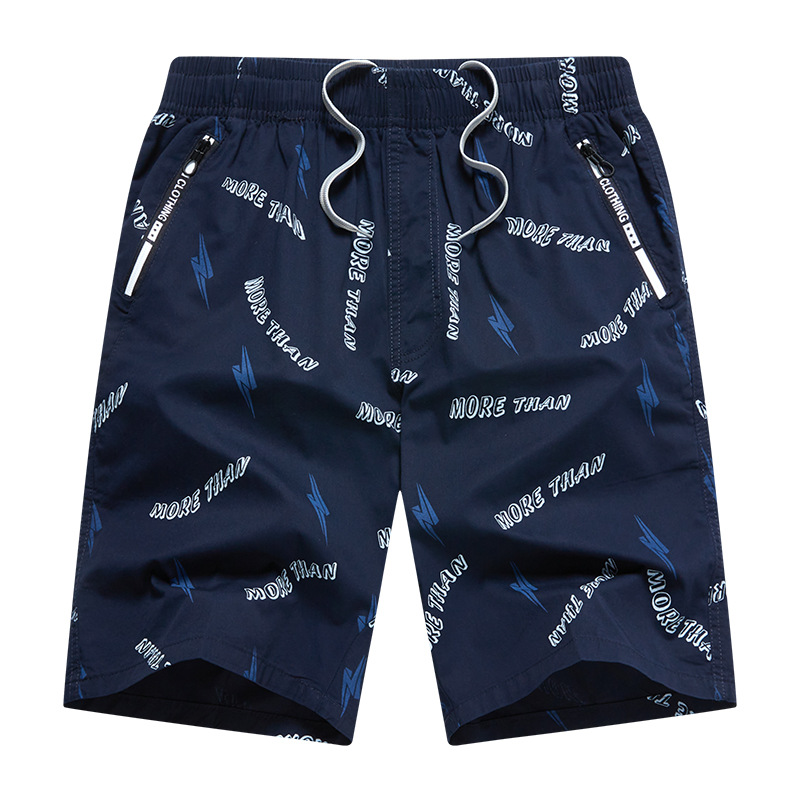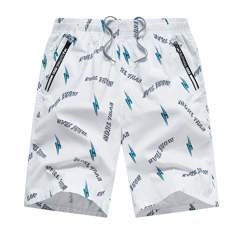 纯棉男士短裤男夏季款外穿中年直筒五分裤沙滩印花男中裤