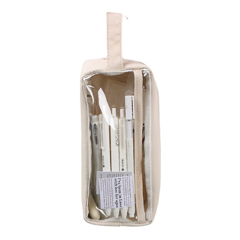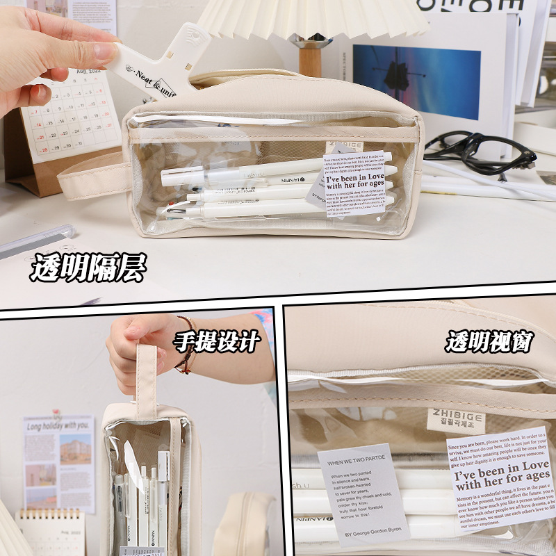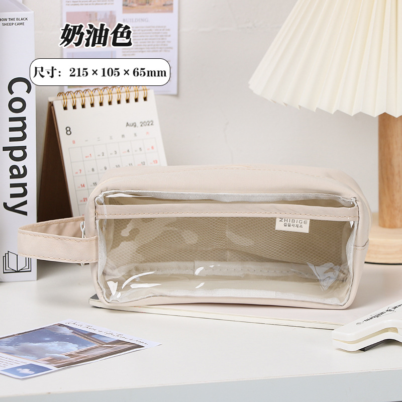简约透明笔袋ins高颜值学生中小学森系透明考试专用大容量铅笔盒