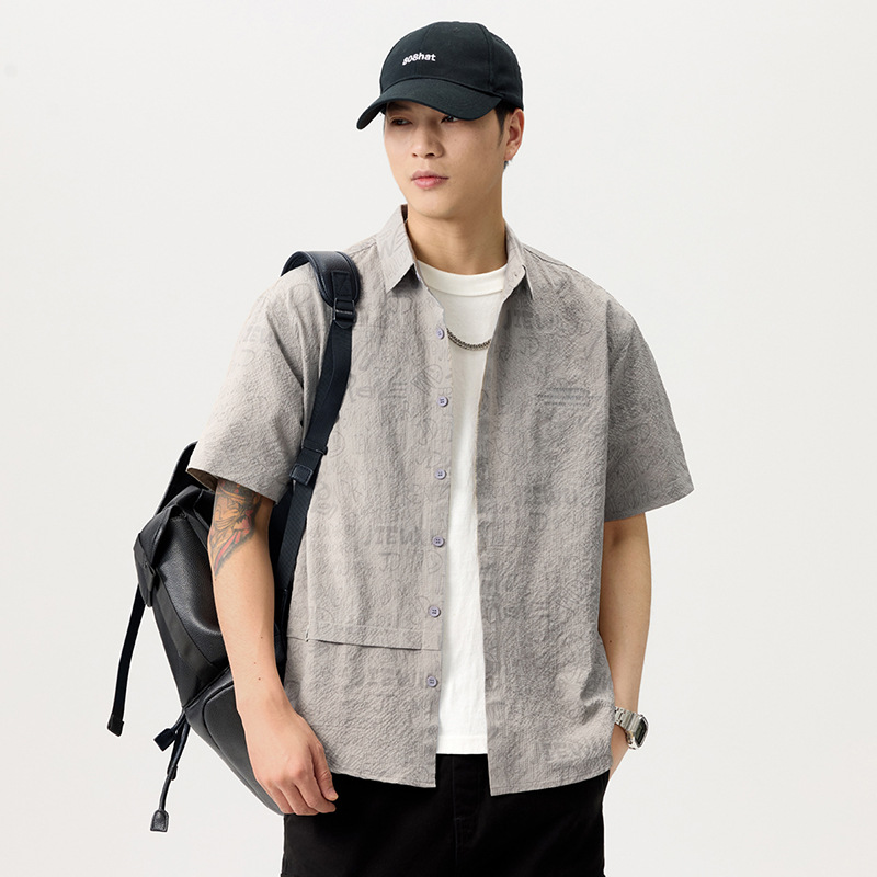 2025夏季新款薄款冰丝速干短袖衬衫男宽松肌理感提花凉感衬衣短袖