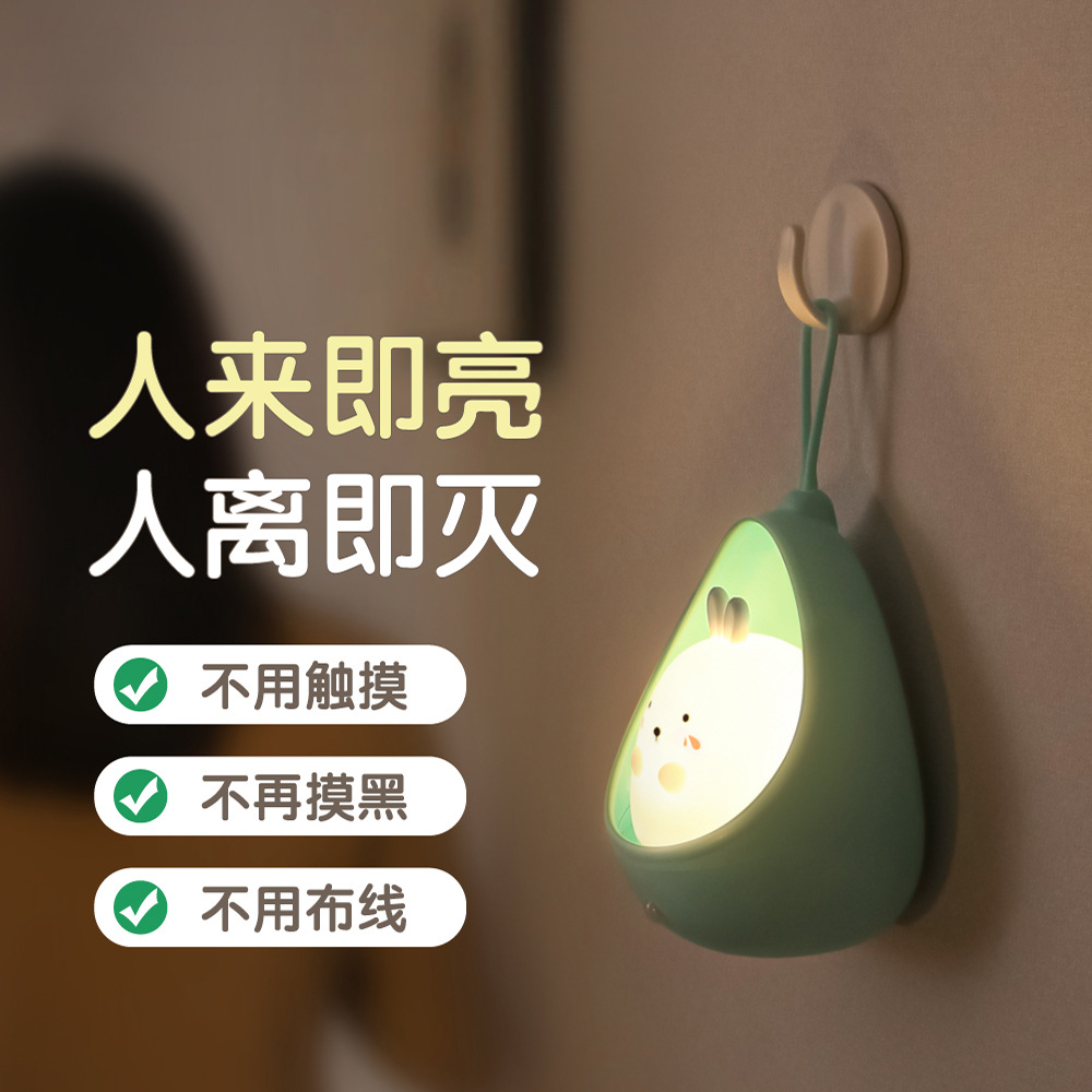 智能人体感应小夜灯USB充电氛围床头灯led创意硅胶感应灯