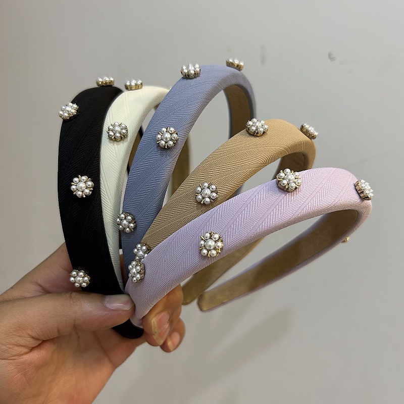 气质珍珠立体装饰发箍法式复古窄边头箍女宽边镶钻头扣洗脸发卡