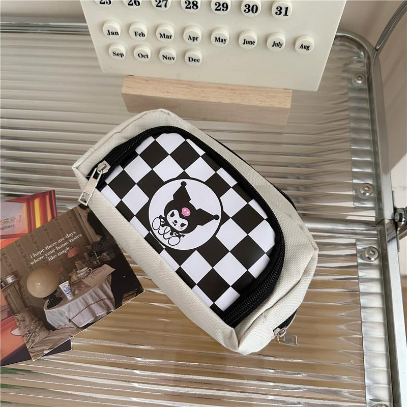 韩国ins风高颜值库洛米笔袋多功能文具盒学生大容量棋盘格铅笔盒