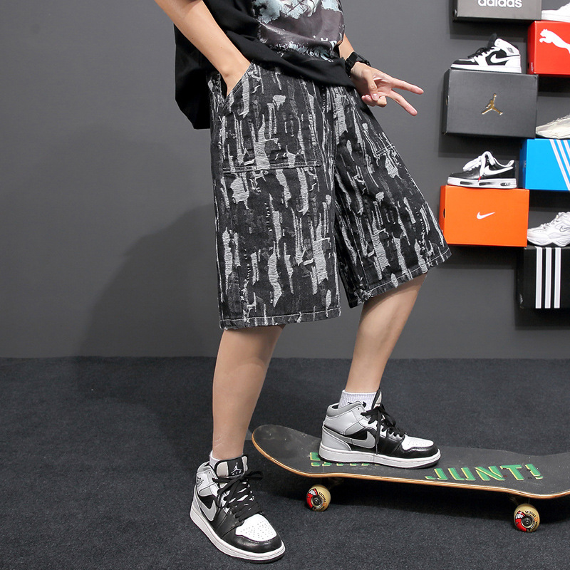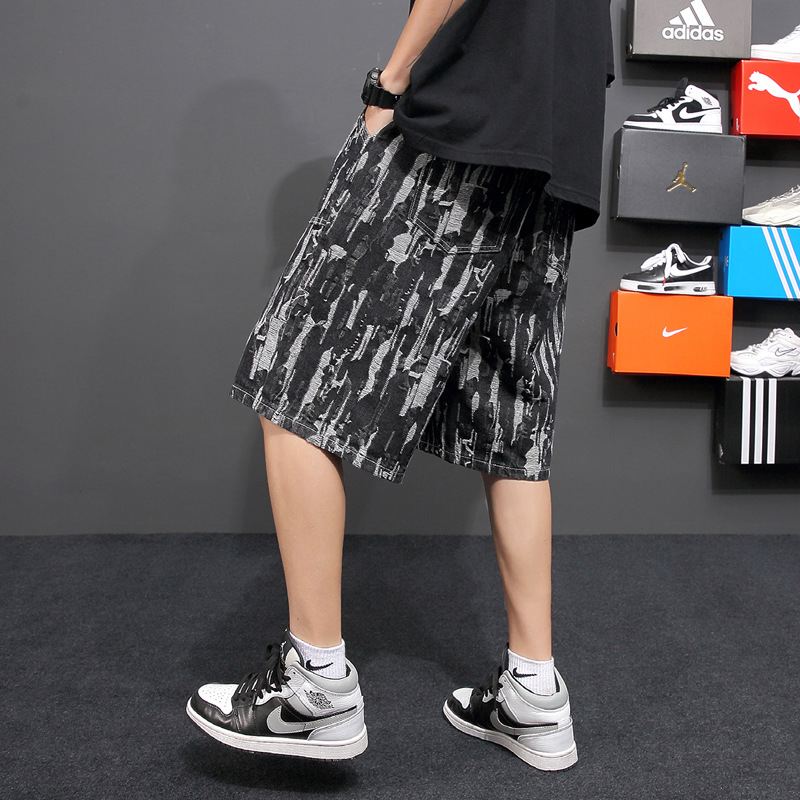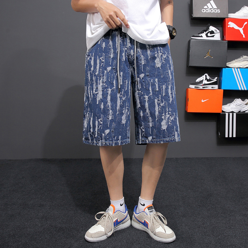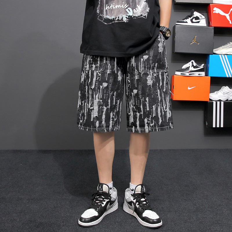 夏季潮流渐印花男士五分裤大码破洞韩版修身时尚休闲通勤户外运动