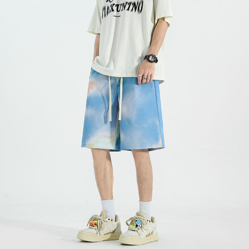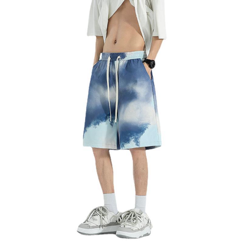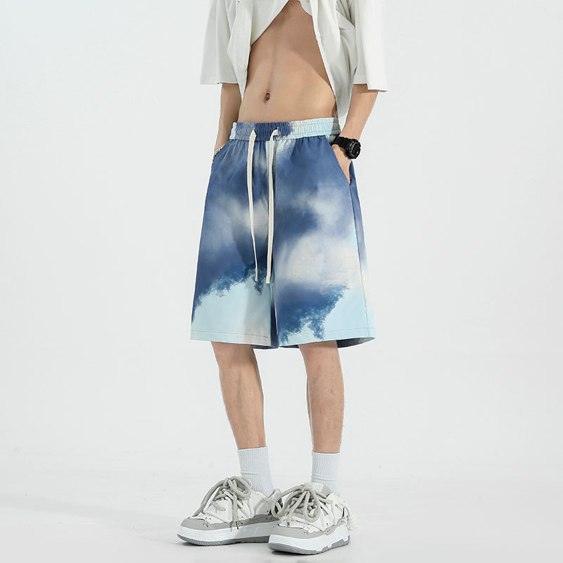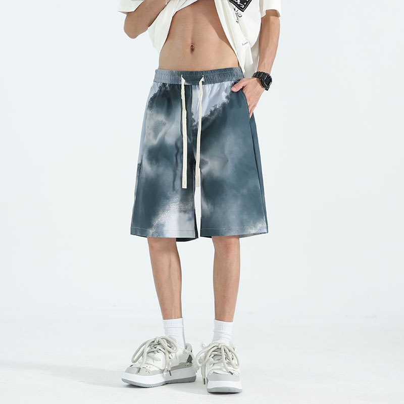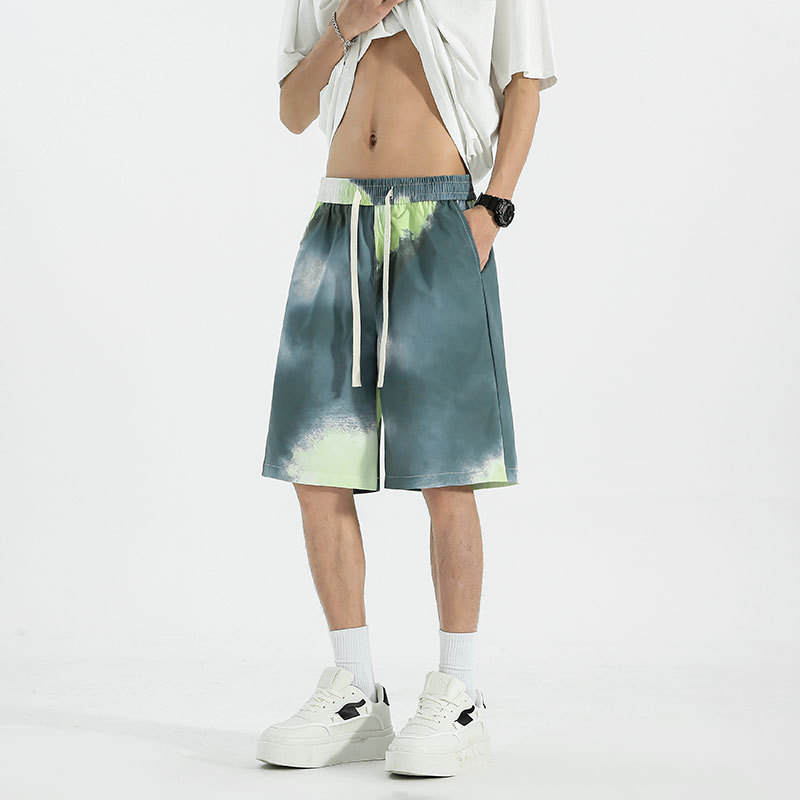 夏季五分裤渐变抽绳短裤多色多平台印花宽松休闲时尚沙滩裤
