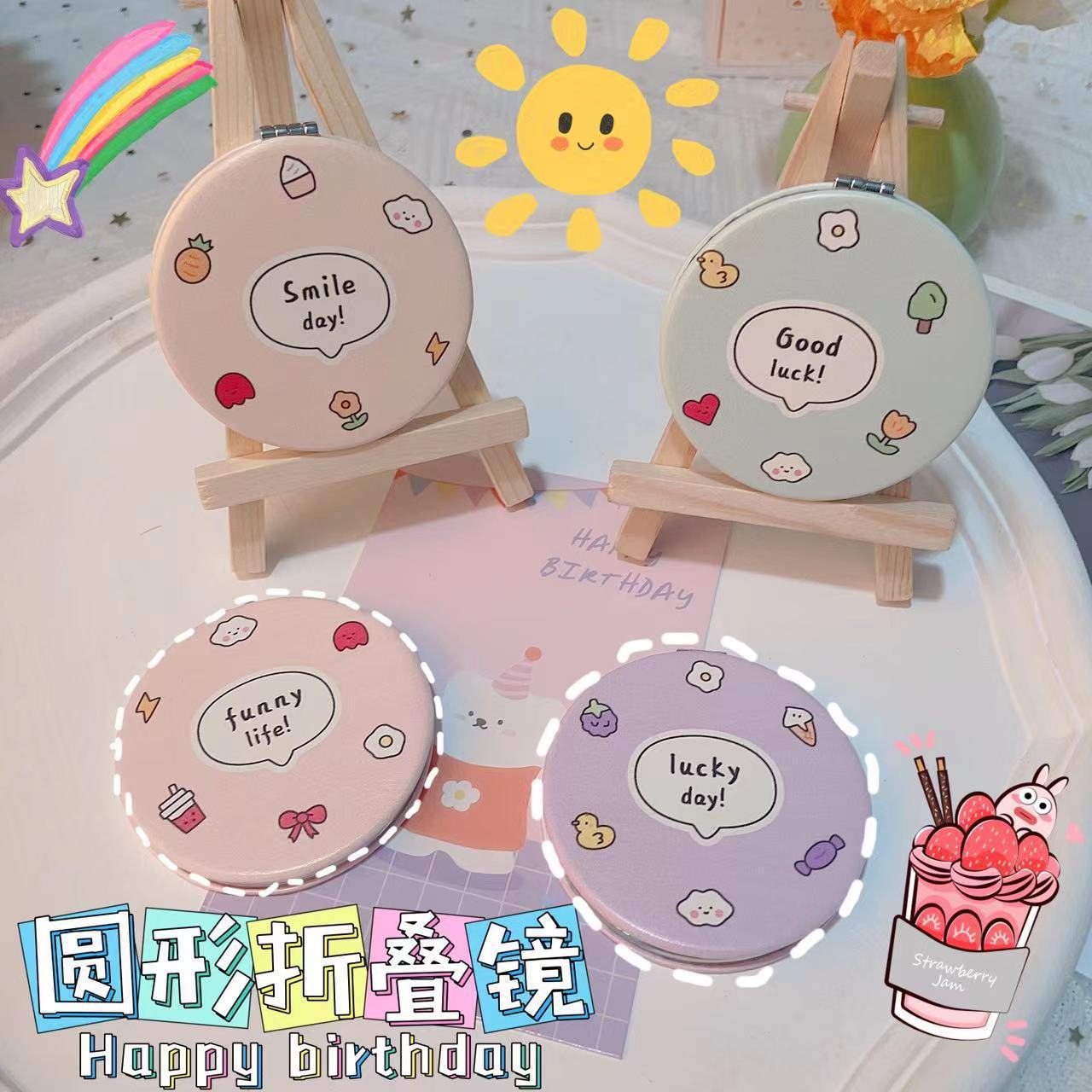 小清新圆形可爱卡通可折叠化妆镜子女孩学生折叠镜手持镜随身镜