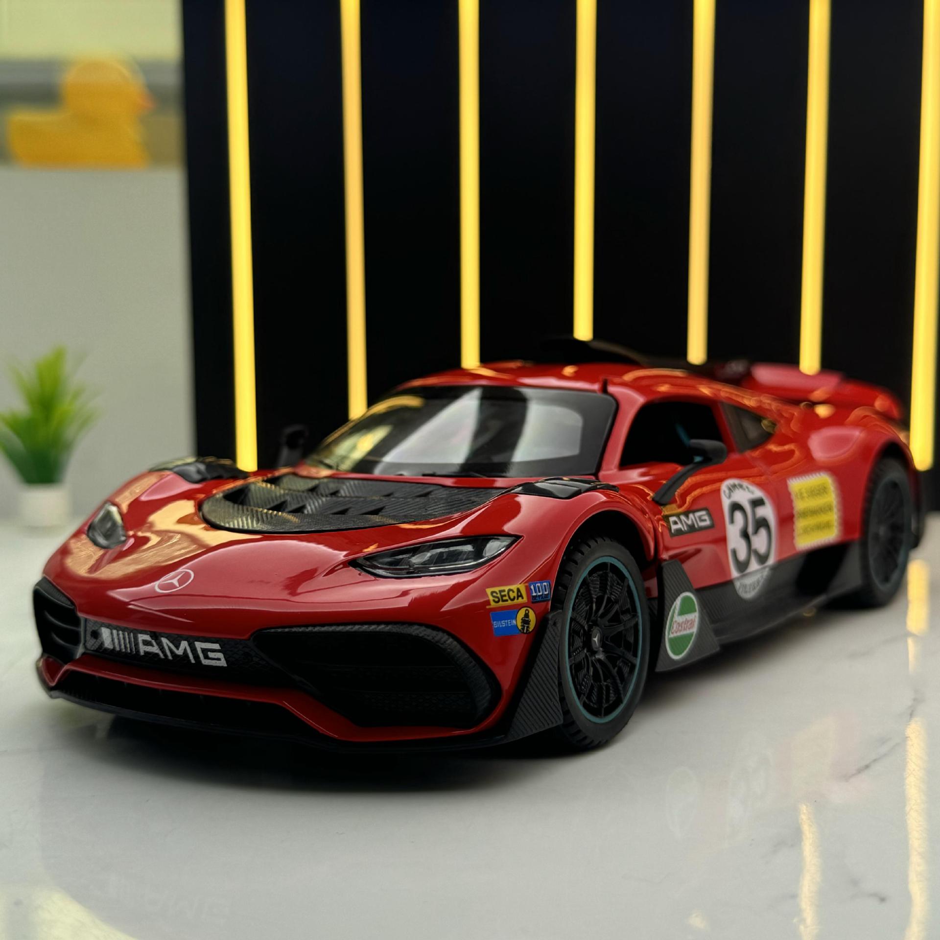 威丽合金车模1比24大驰ONE红猪跑车带声光回力玩具车音效模型摆件