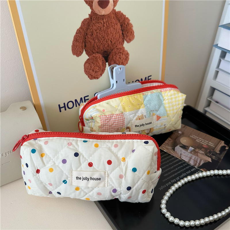可爱卡通波点笔袋新款高颜值中小学生文具袋多功能收纳袋