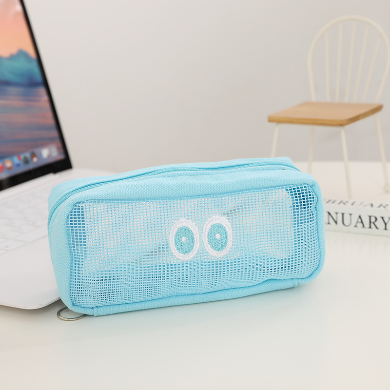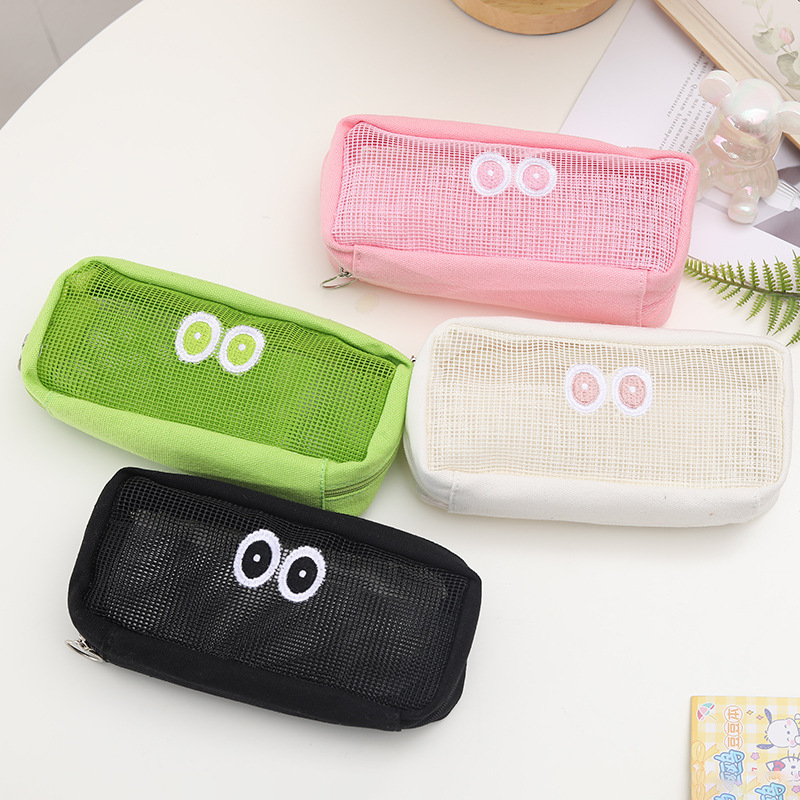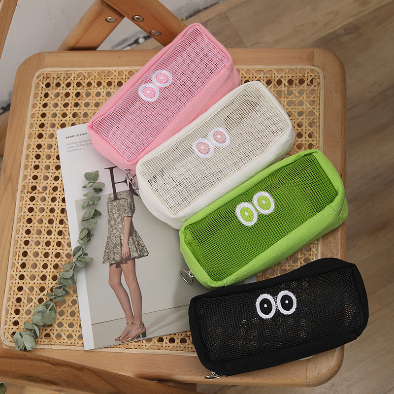 ins风韩版卡通可爱绿色大眼睛笔袋洗漱包大容量学生女文具收纳袋