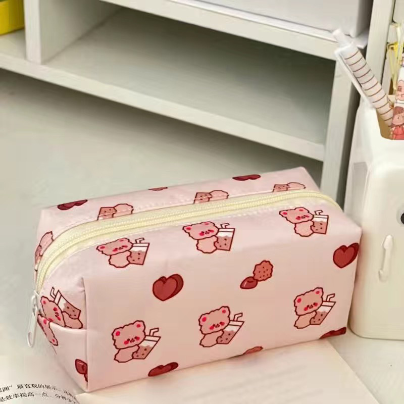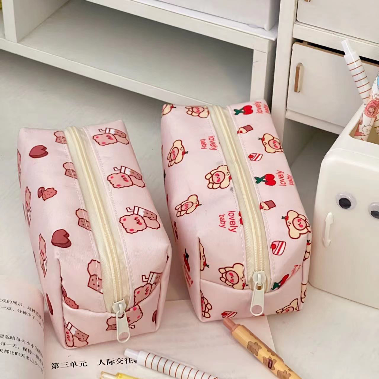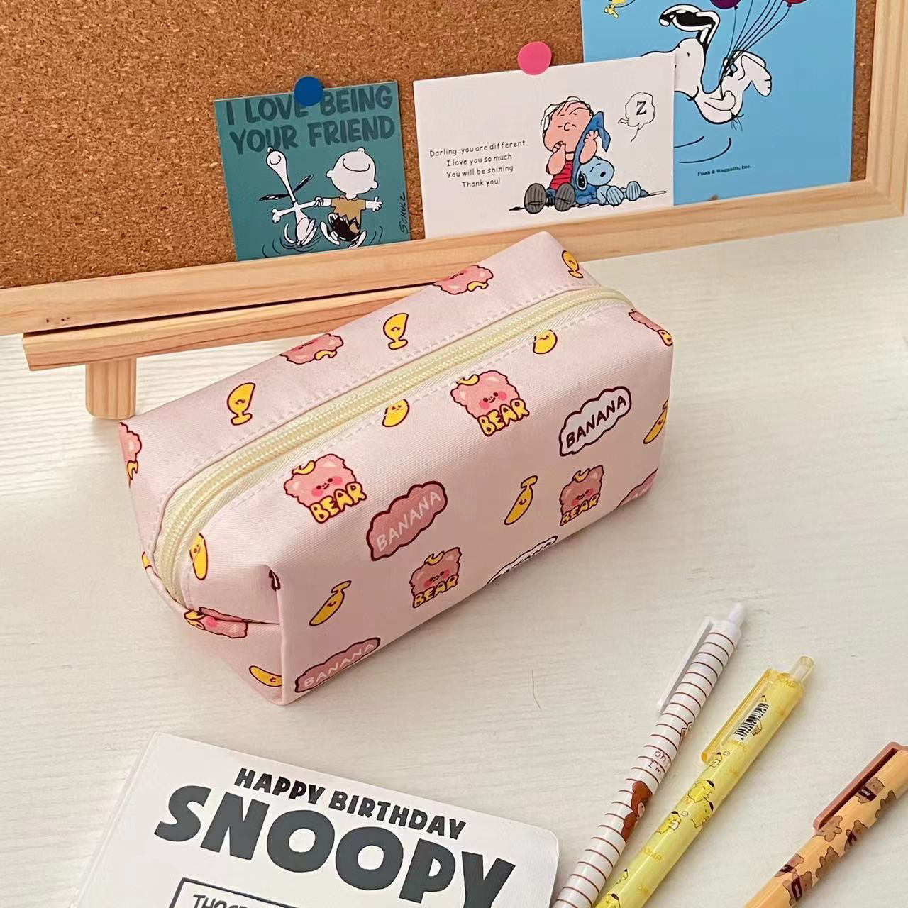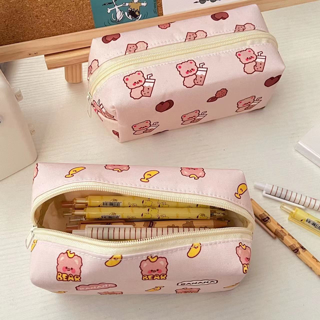 卡通小熊笔袋ins日系女孩儿童笔盒少女心文具袋大容量帆布铅笔盒