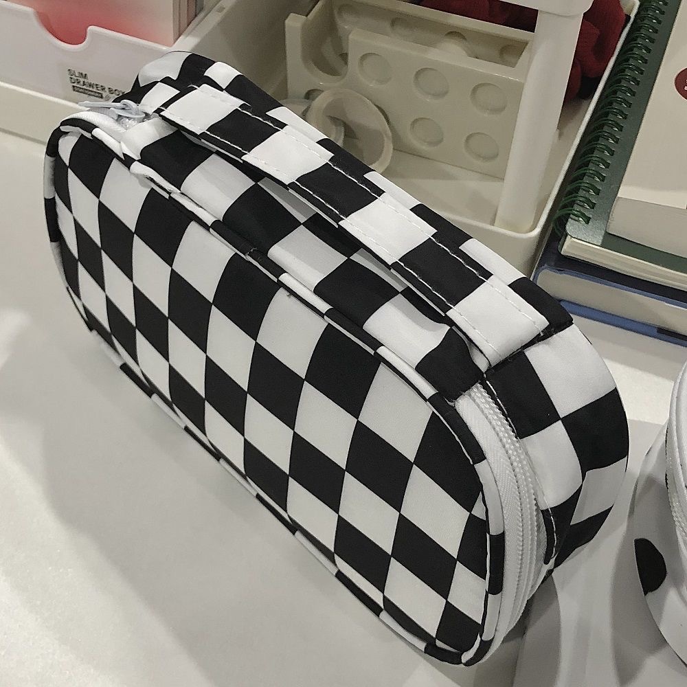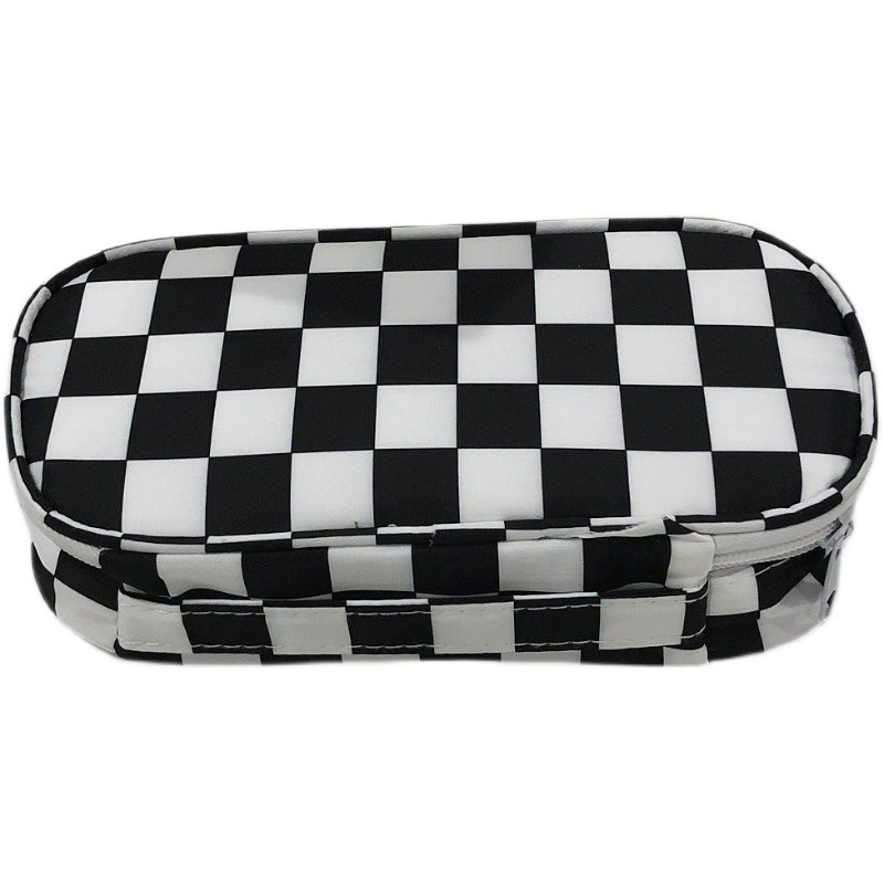 黑白棋盘格子笔袋手提式文具收纳包便携学生专用文具盒