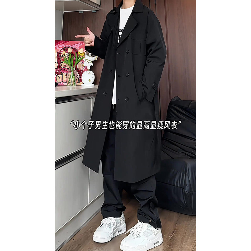 黑色中长款风衣外套男冬季双排扣过膝学院风潮牌春秋宽松大码大衣