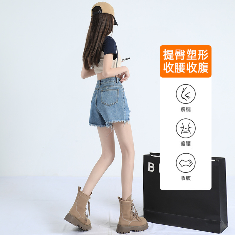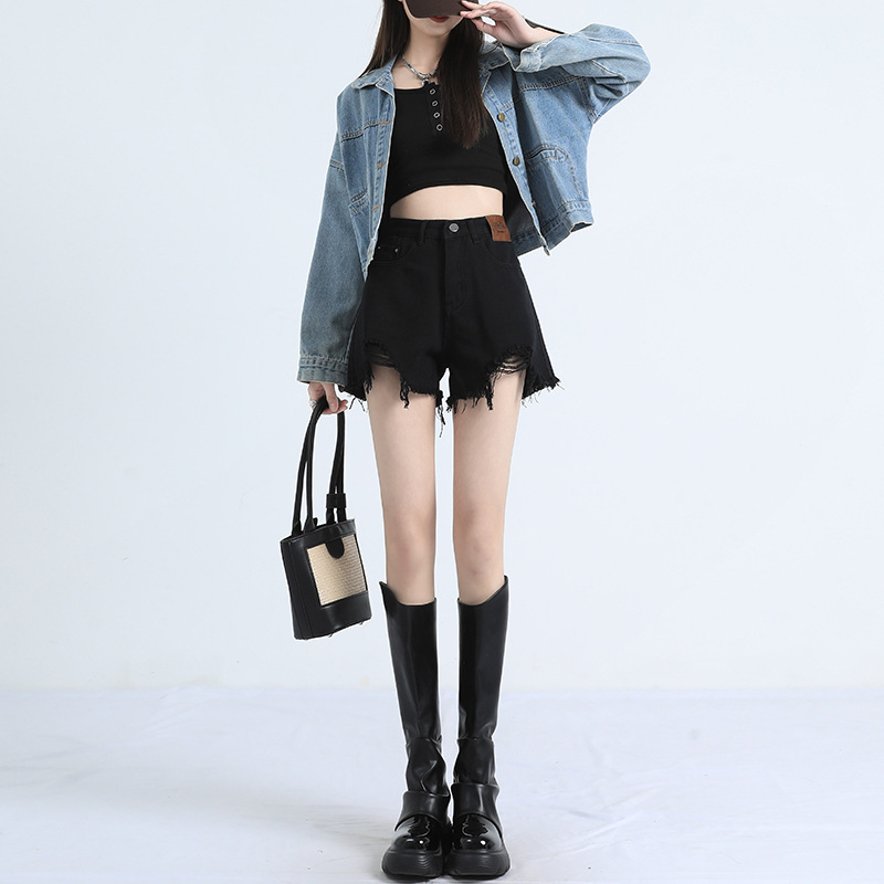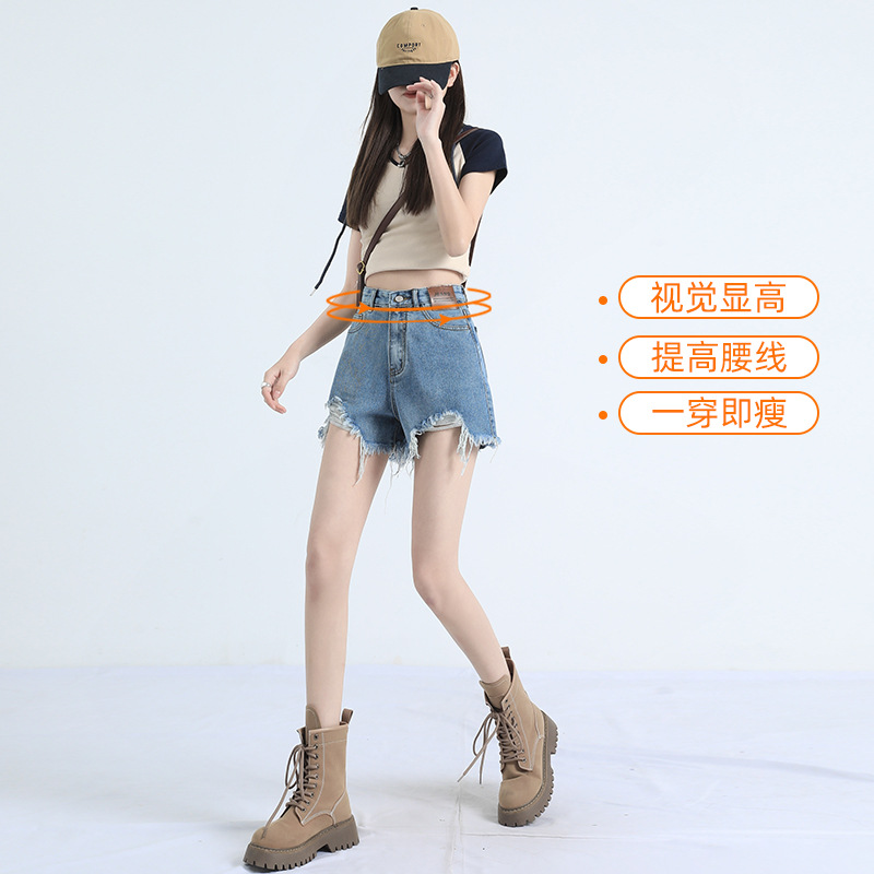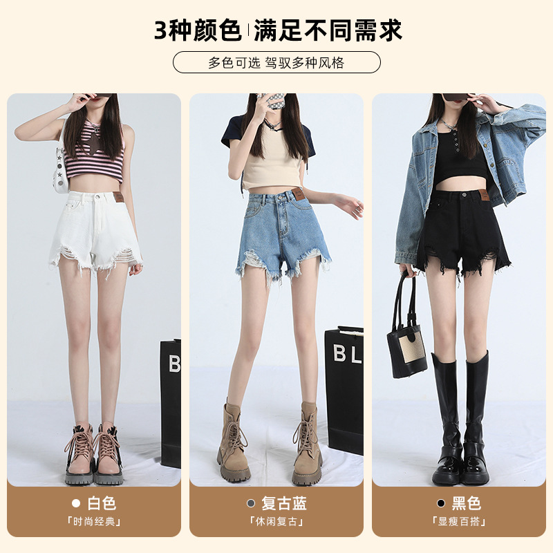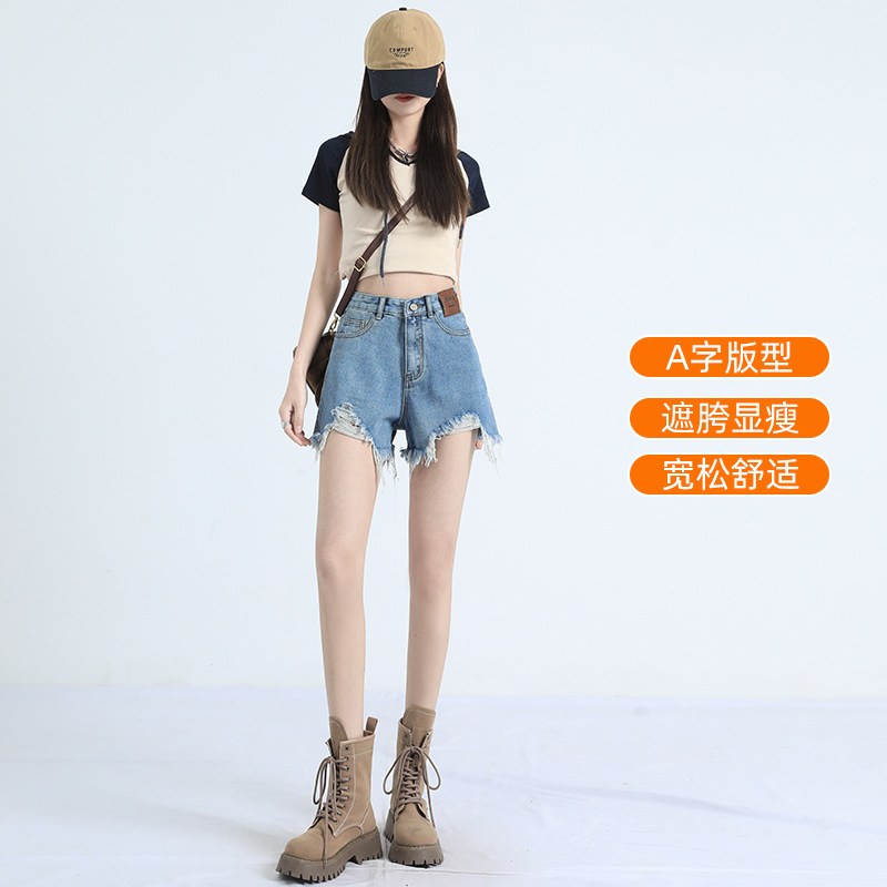 复古牛仔短裤女高腰年新款夏季宽松阔腿小个子破洞a字热裤子