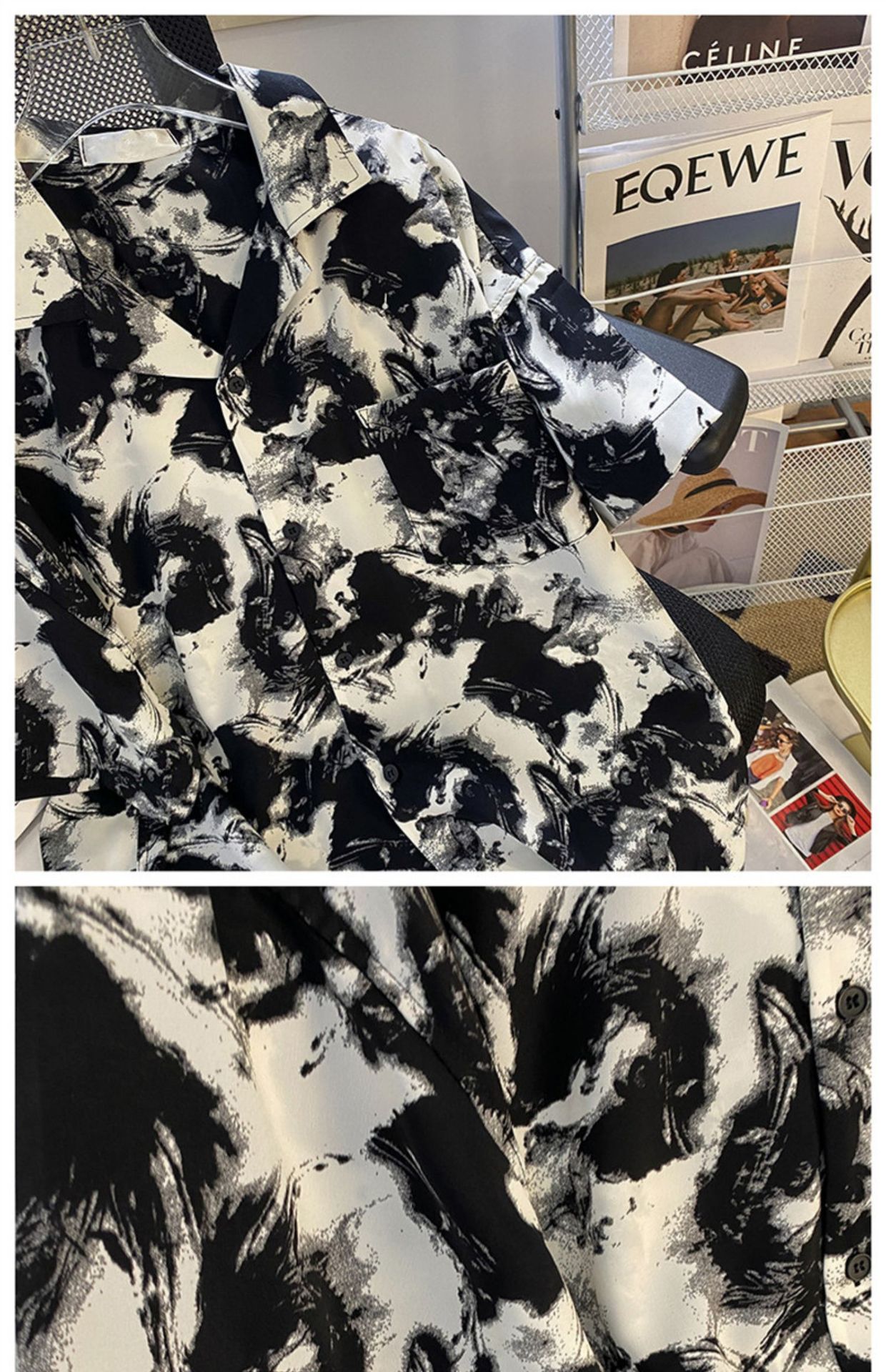 扎染泼墨衬衫男士短袖夏季宽松冰丝凉感衬衣潮流ins韩版痞帅上衣