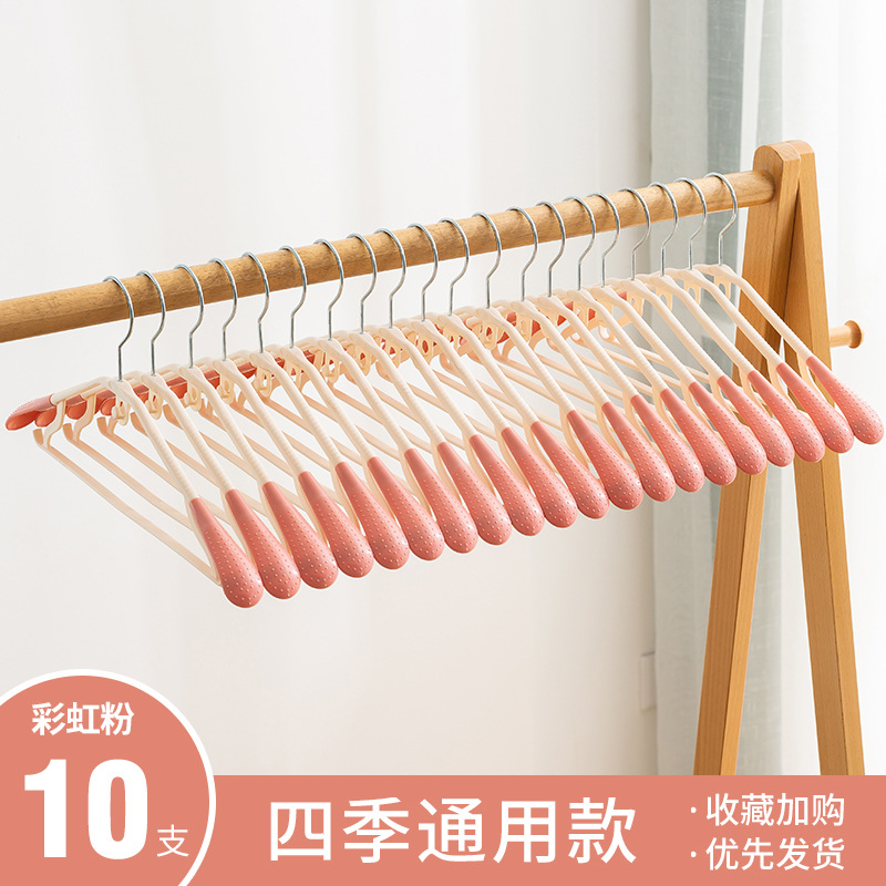 - 彩虹粉10支【宽肩无痕-四季通用】+升级无痕连挂衣架-粉色10支