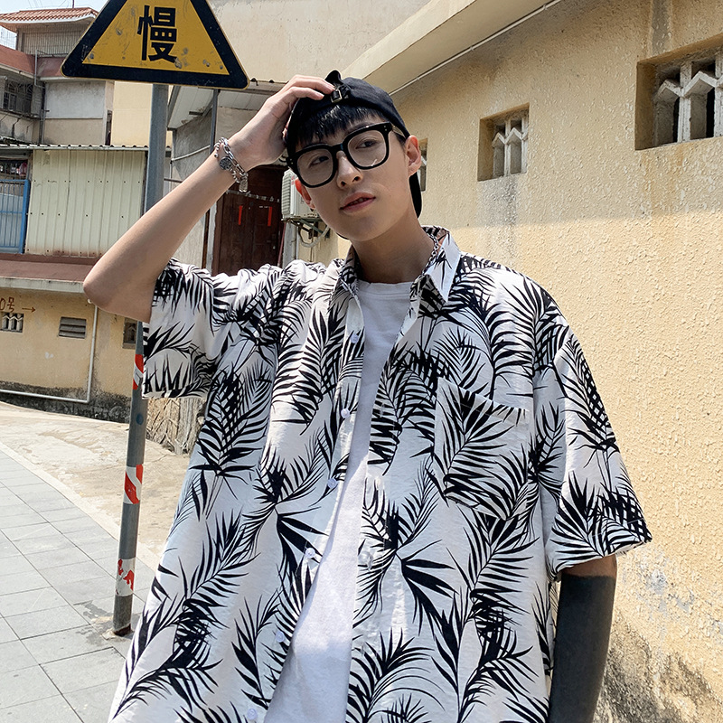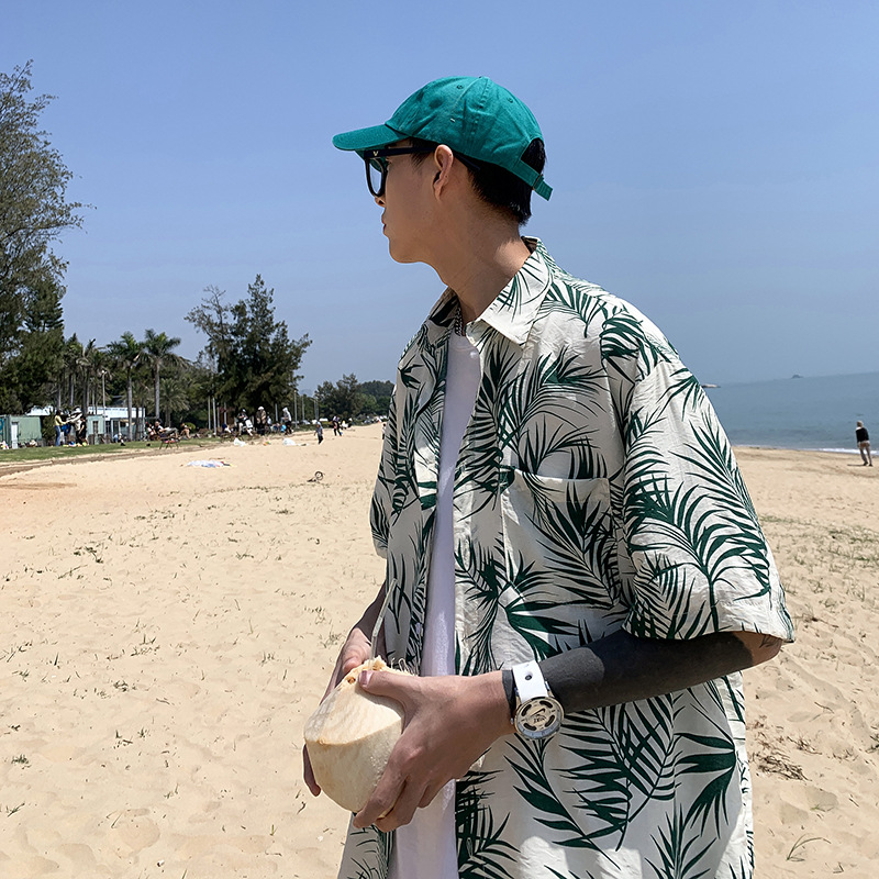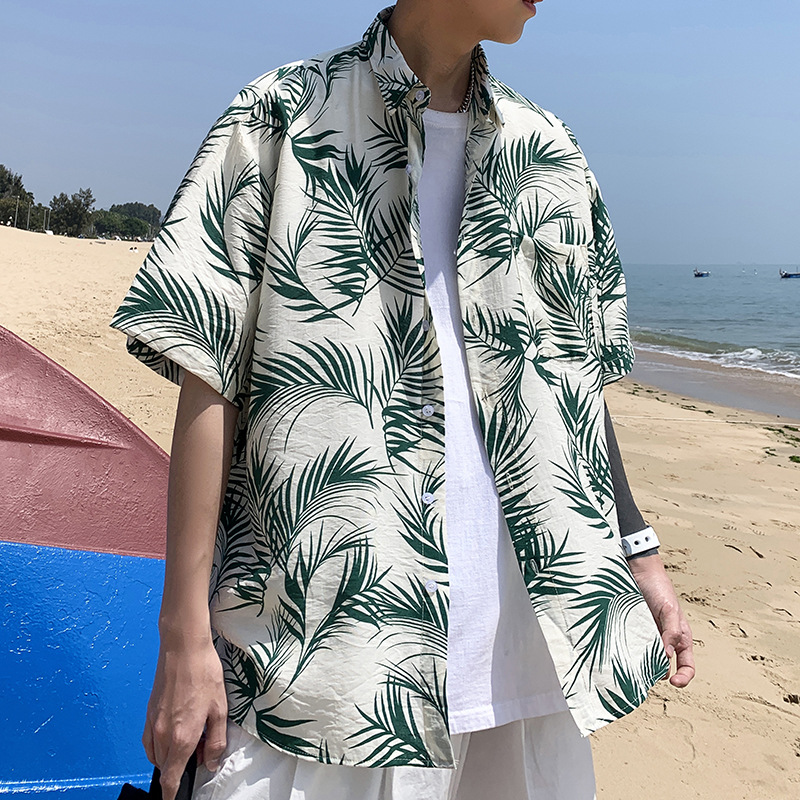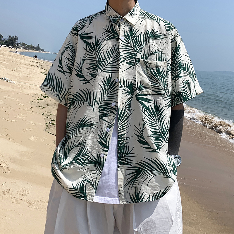 同款短袖衬衫男夏季薄款花寸衣夏威夷沙滩衬衣宽松vintage半袖外