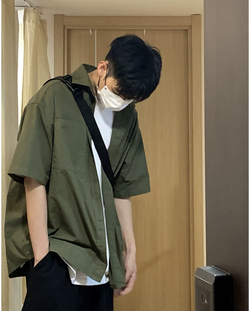 同款夏季新品墨绿色衬衫短袖t恤男韩版ins风百搭简风宽松纯色半袖