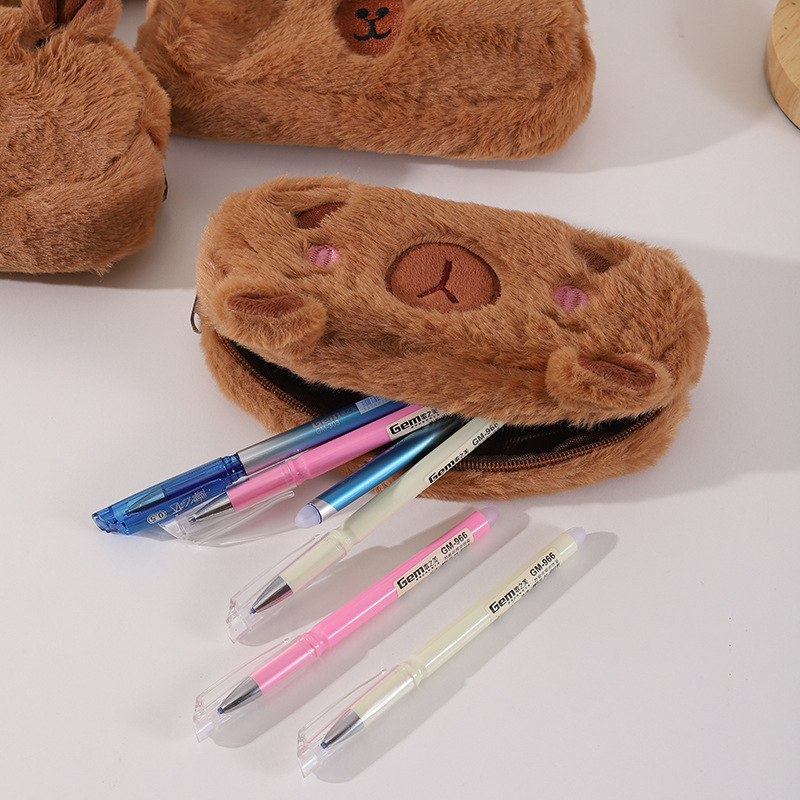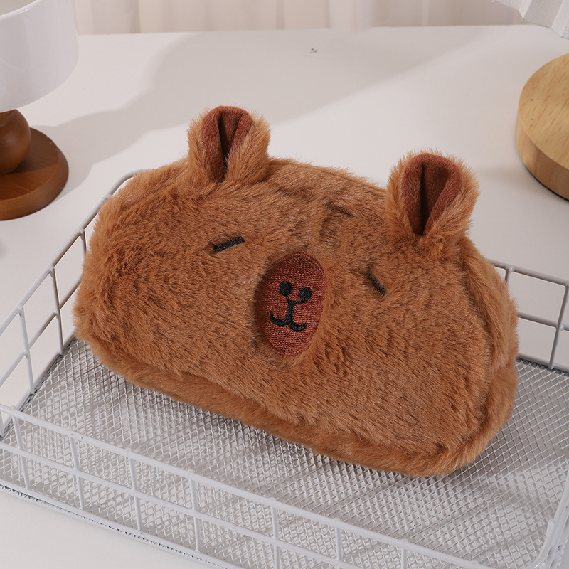 新款卡皮巴拉毛绒笔袋ins风大容量学生卡通多功能文具收纳袋