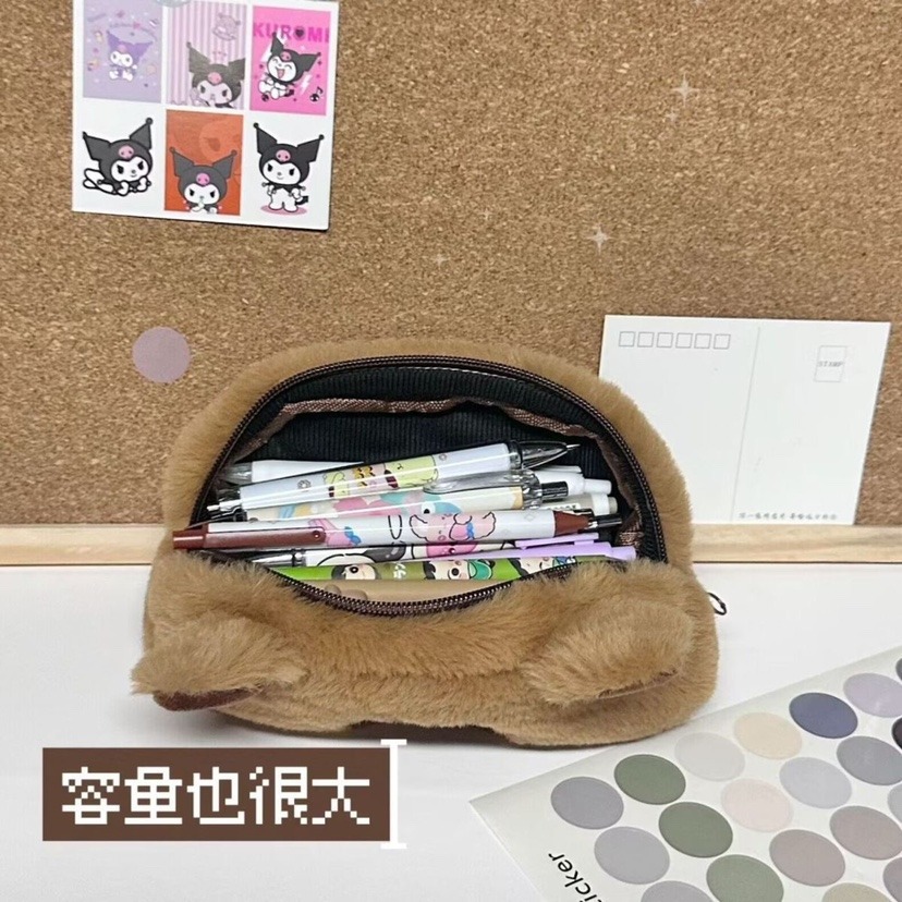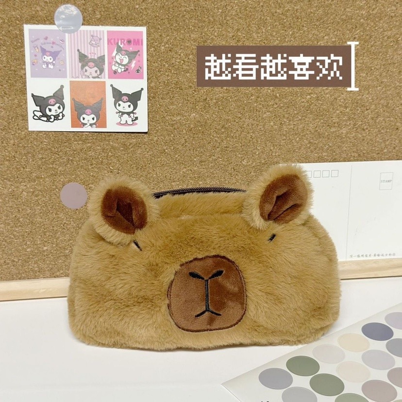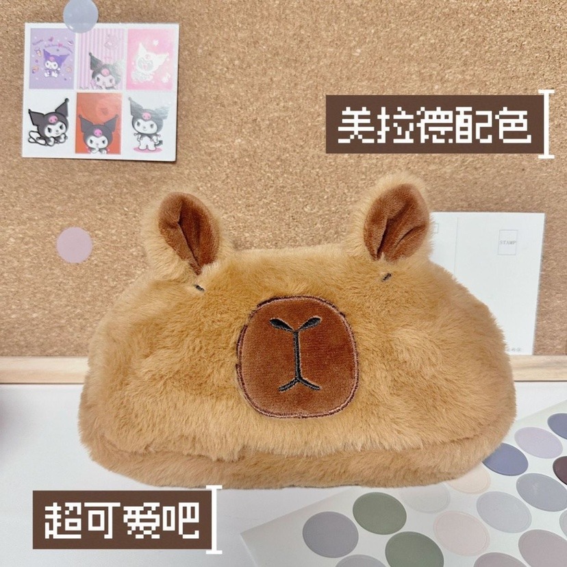 卡皮巴拉毛绒笔袋可爱卡通文具收纳袋大容量文具盒