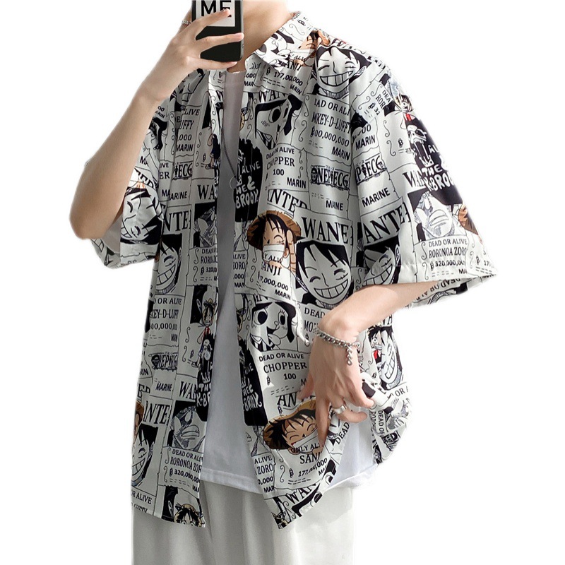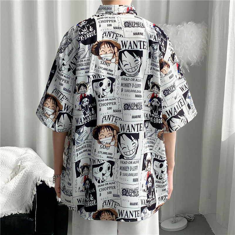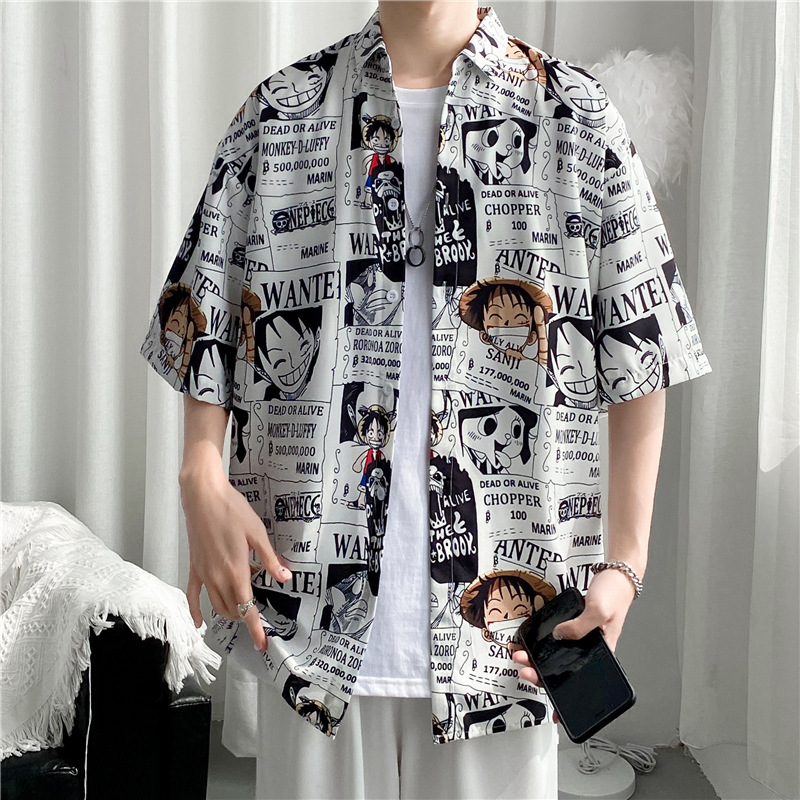同款漫画印花衬衫男ins潮流夏季日系短袖衬衣情侣宽松设计感小众