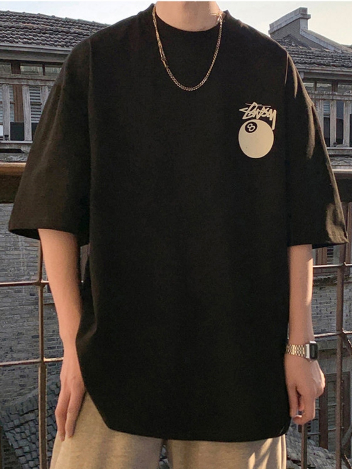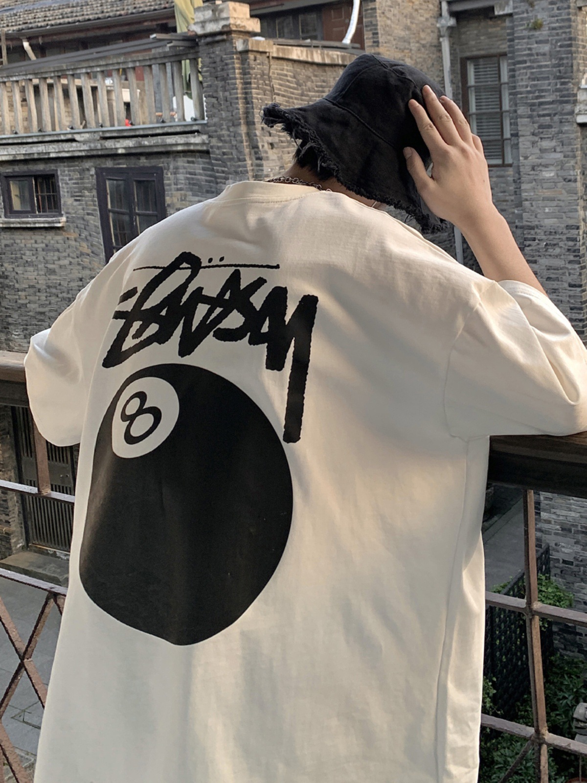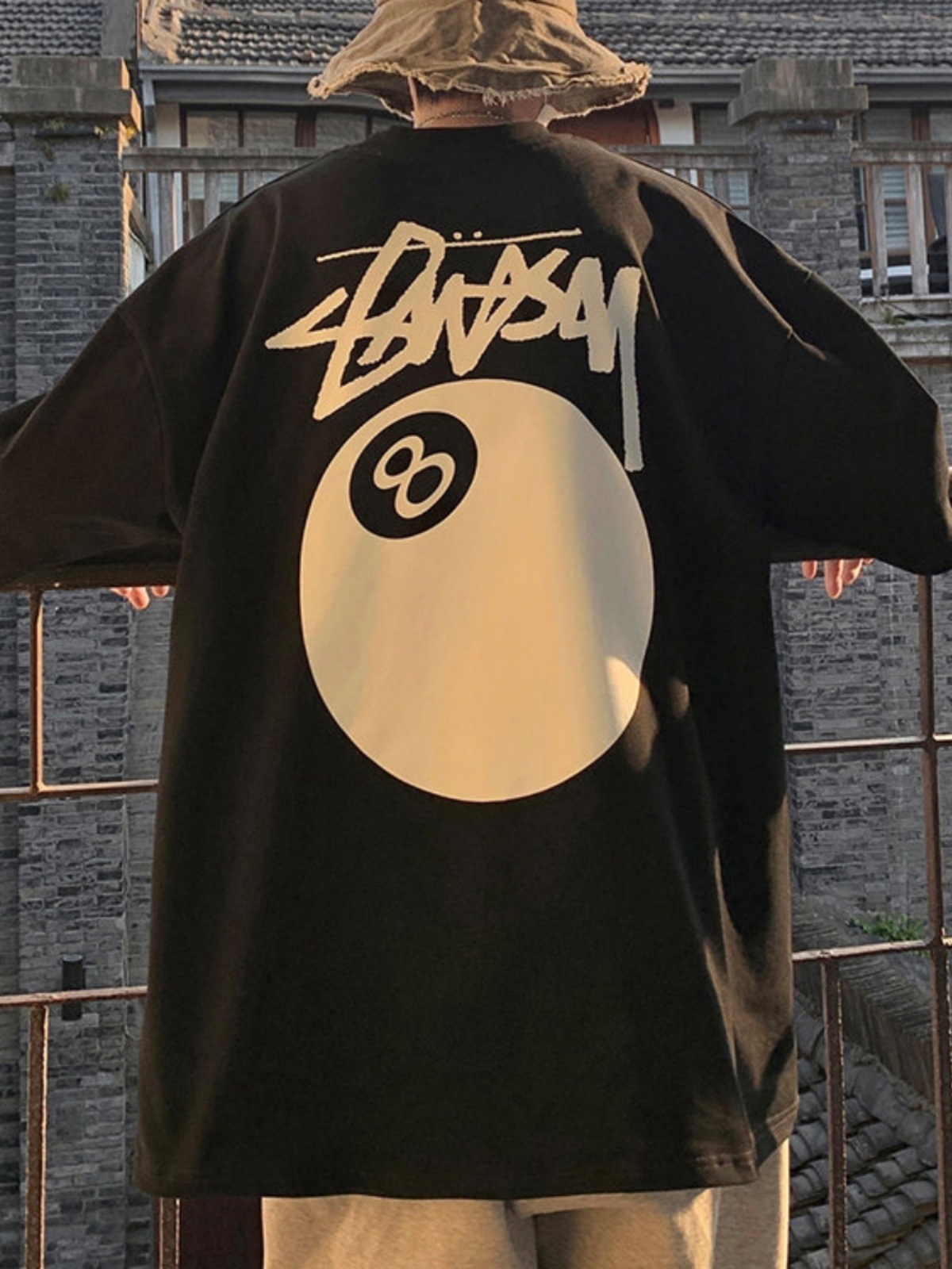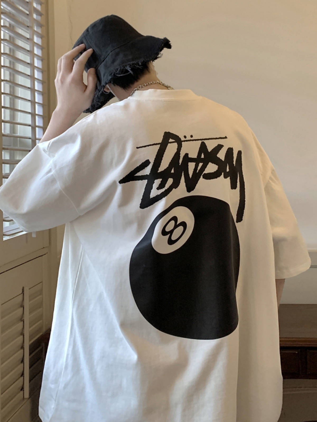 同款美式后背印花短袖t恤男夏季加肥大码潮牌胖子宽松纯棉半截袖