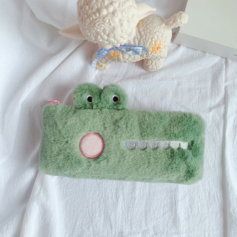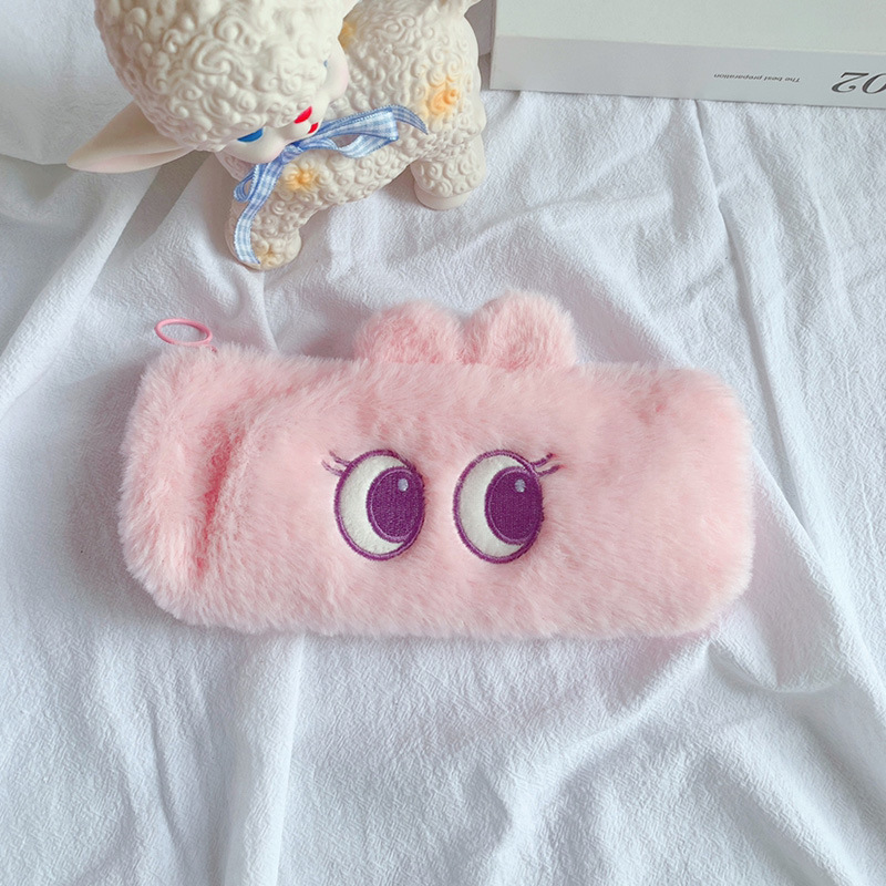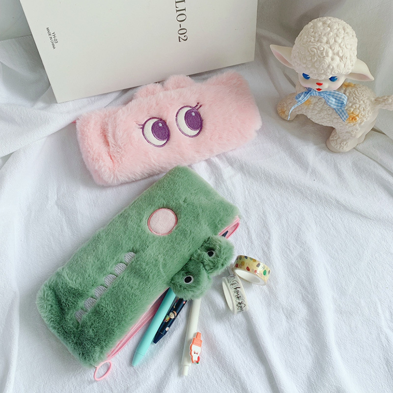 韩国ins少女心卡通鳄鱼兔子眼睛毛绒笔袋学生可爱大容量收纳包包