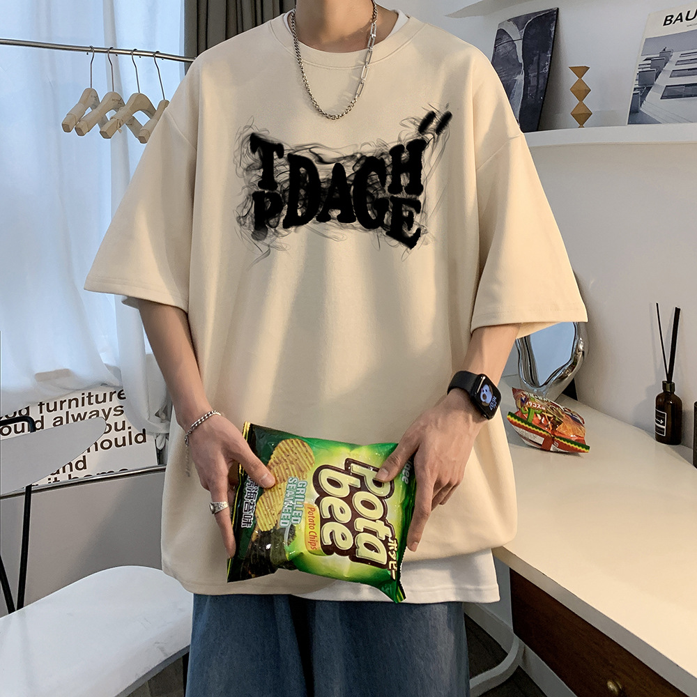 同款美式高街t恤男夏季短袖卫衣宽松半袖潮牌潮流青少年港风圆领