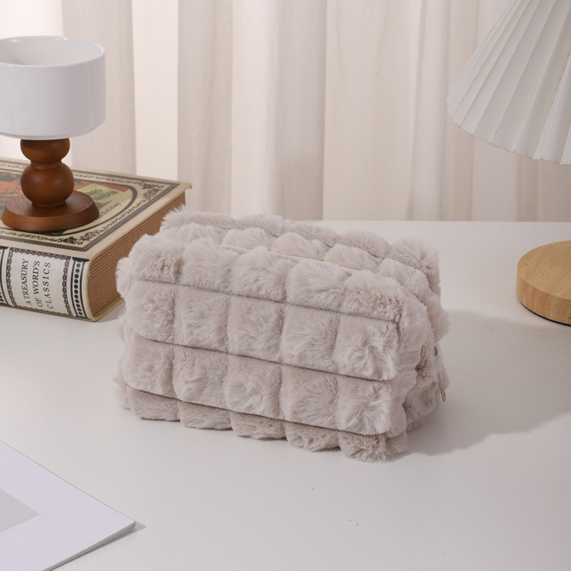 毛绒泡芙笔袋小众不撞款大容量纯色泡泡ins风化妆包文具袋