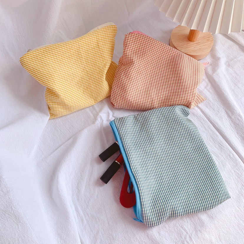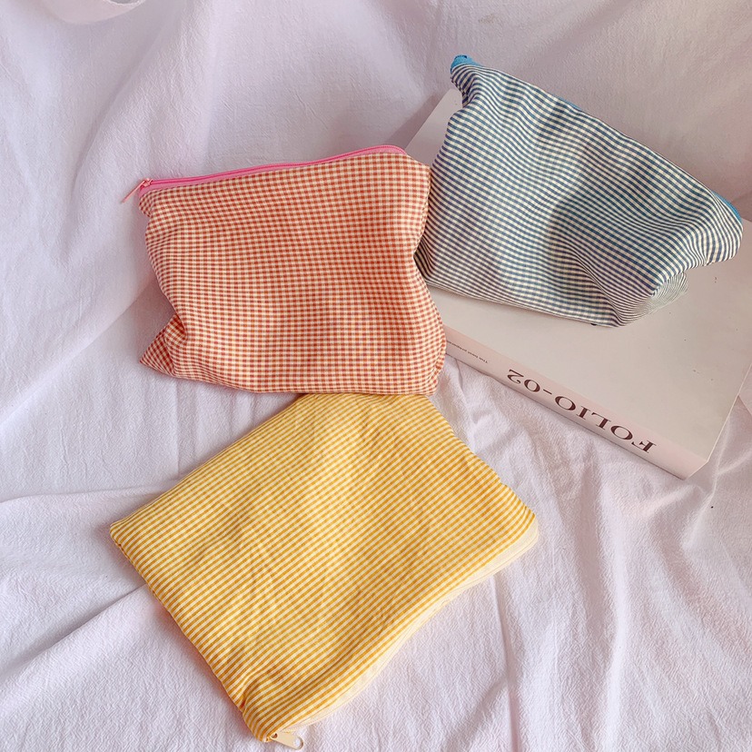 复古小众格子笔袋ins少女心大容量jk方形文具袋女孩文具铅笔盒
