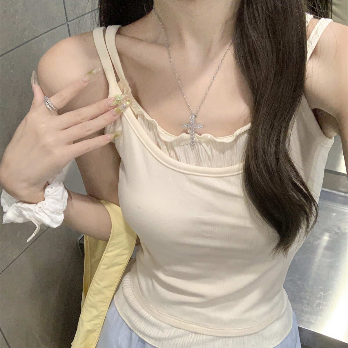 纯欲风假两件吊带背心女夏季新款小众设计感修身显瘦短款上衣欧货