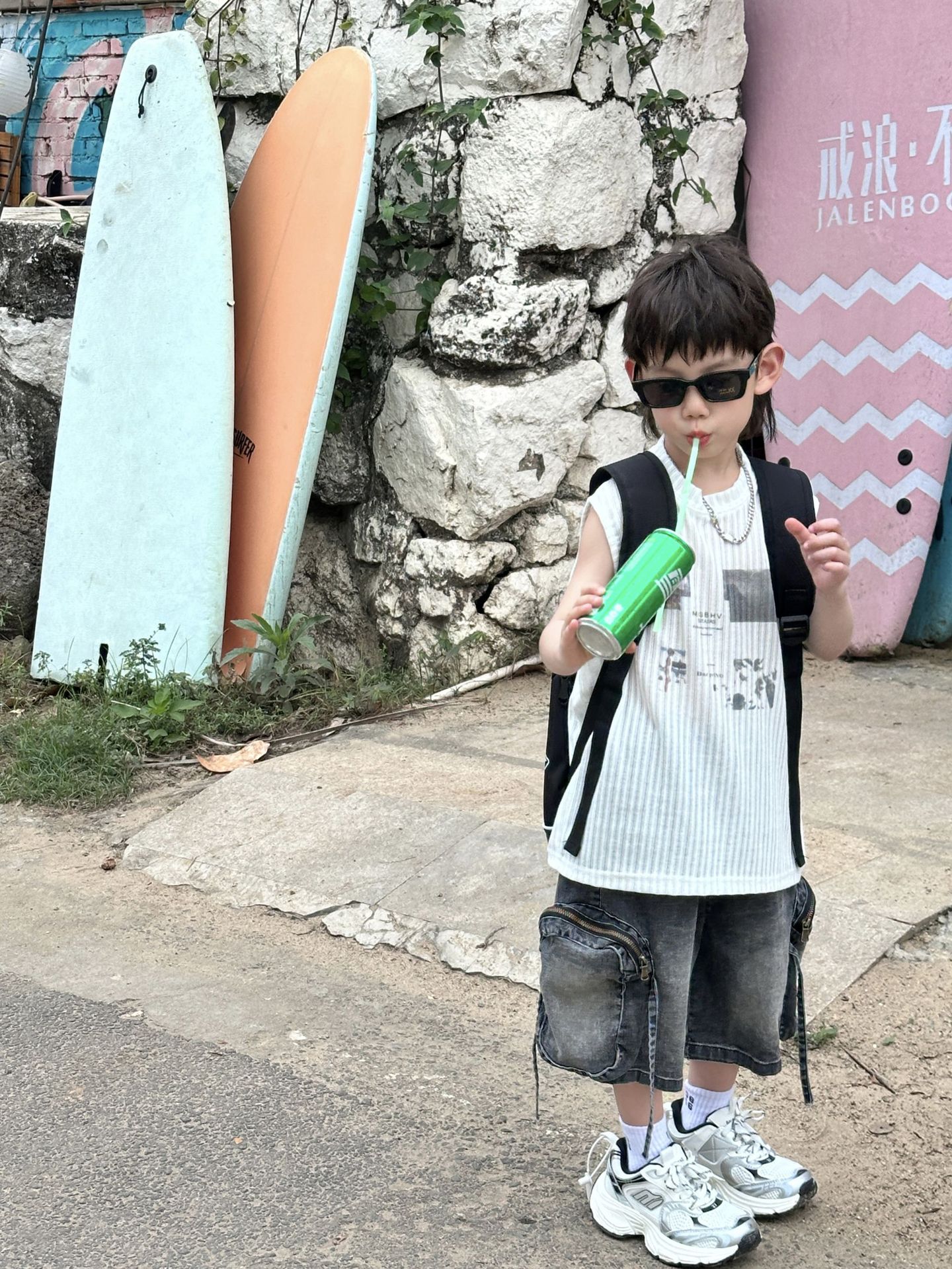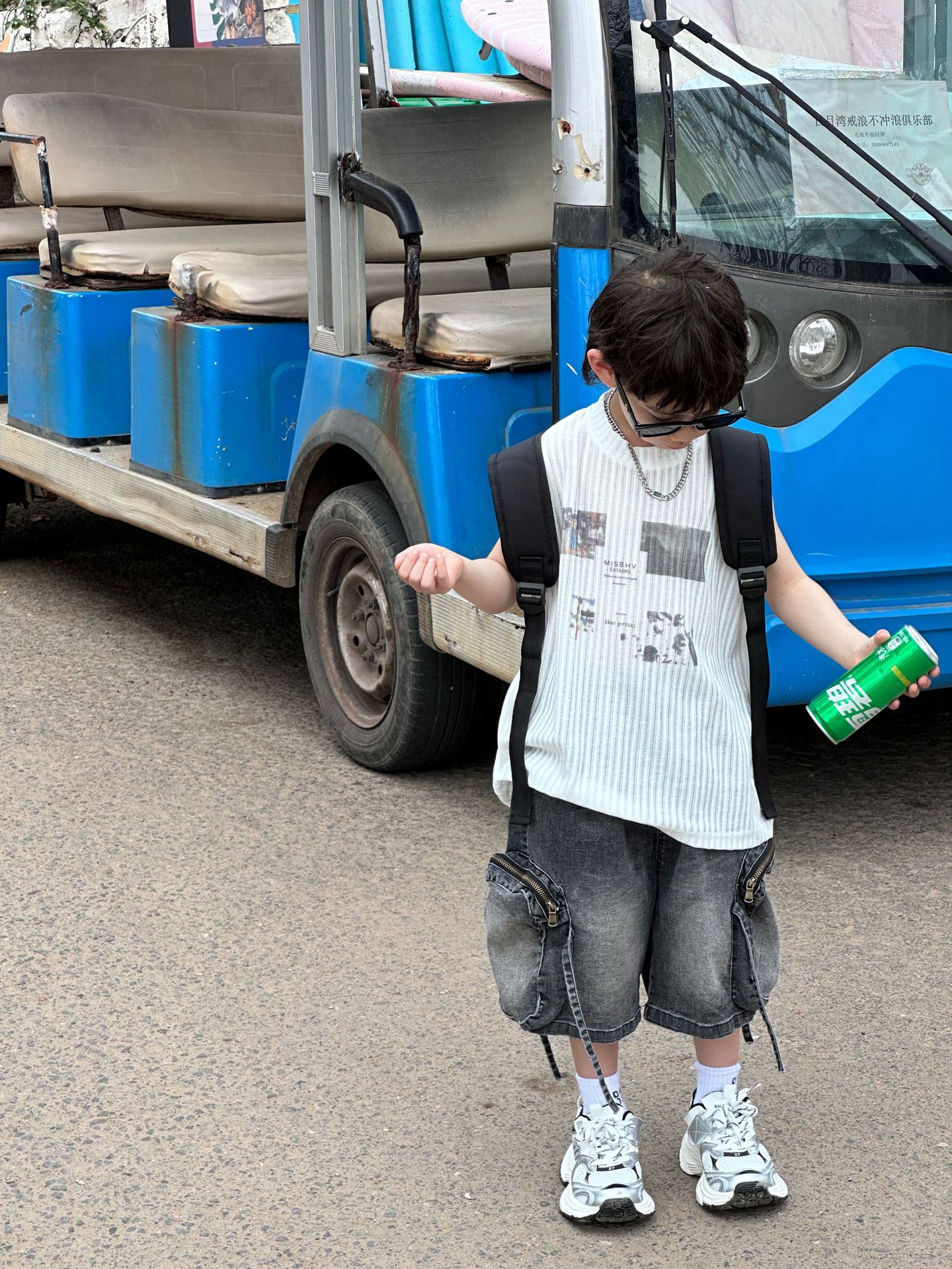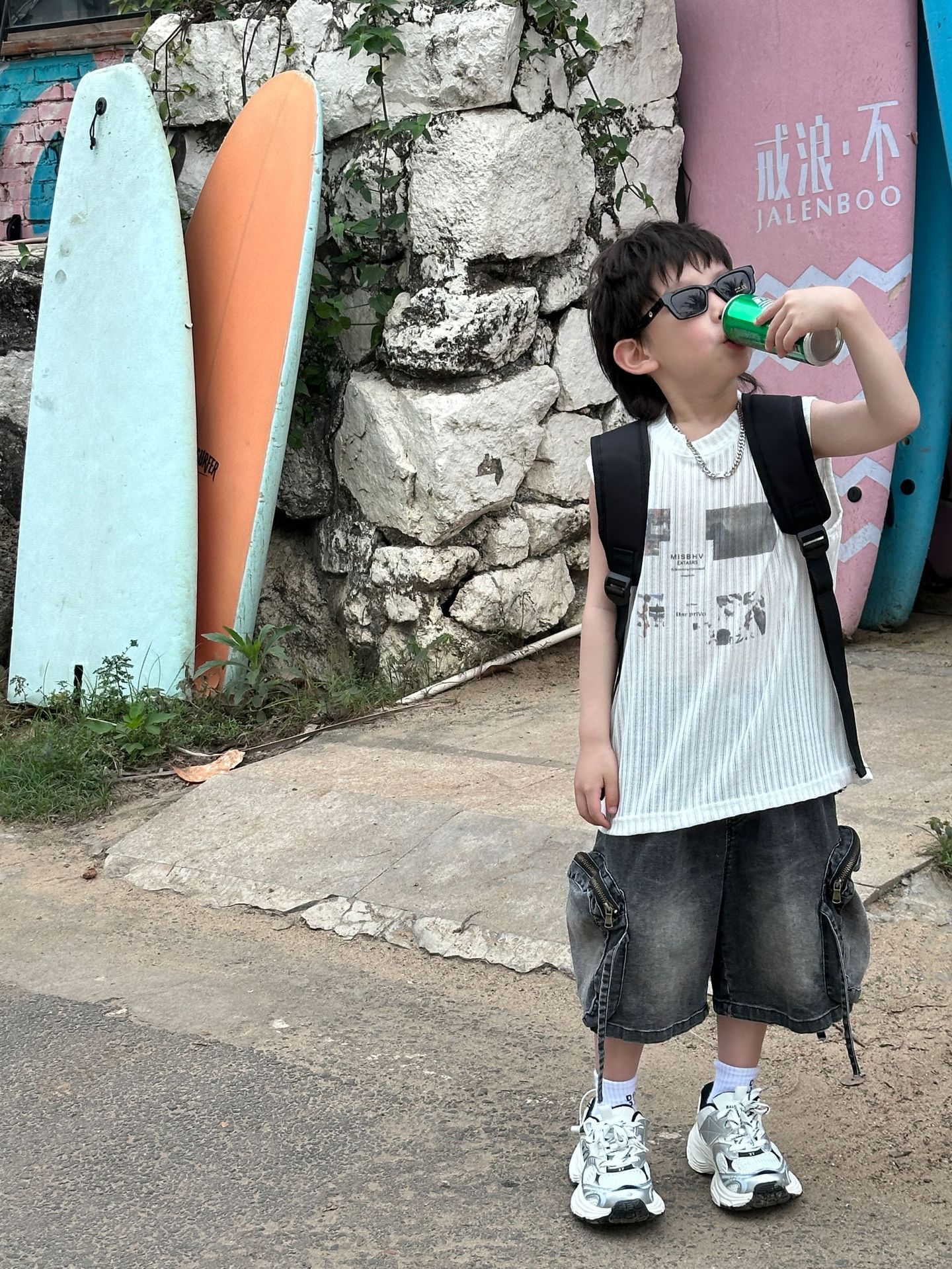 泰如夏季新款韩版男童套头印花透气无袖背心儿童上衣百搭潮