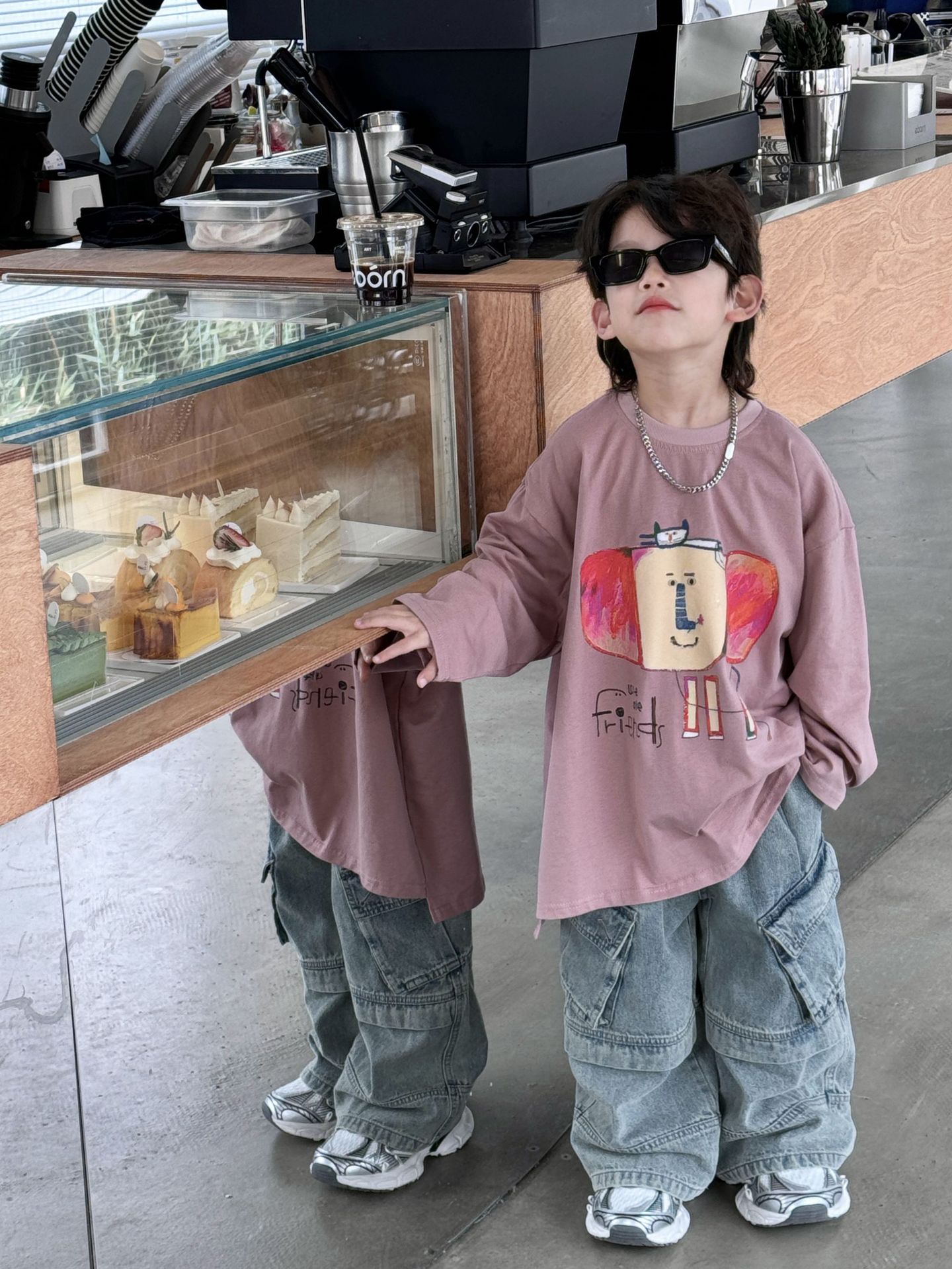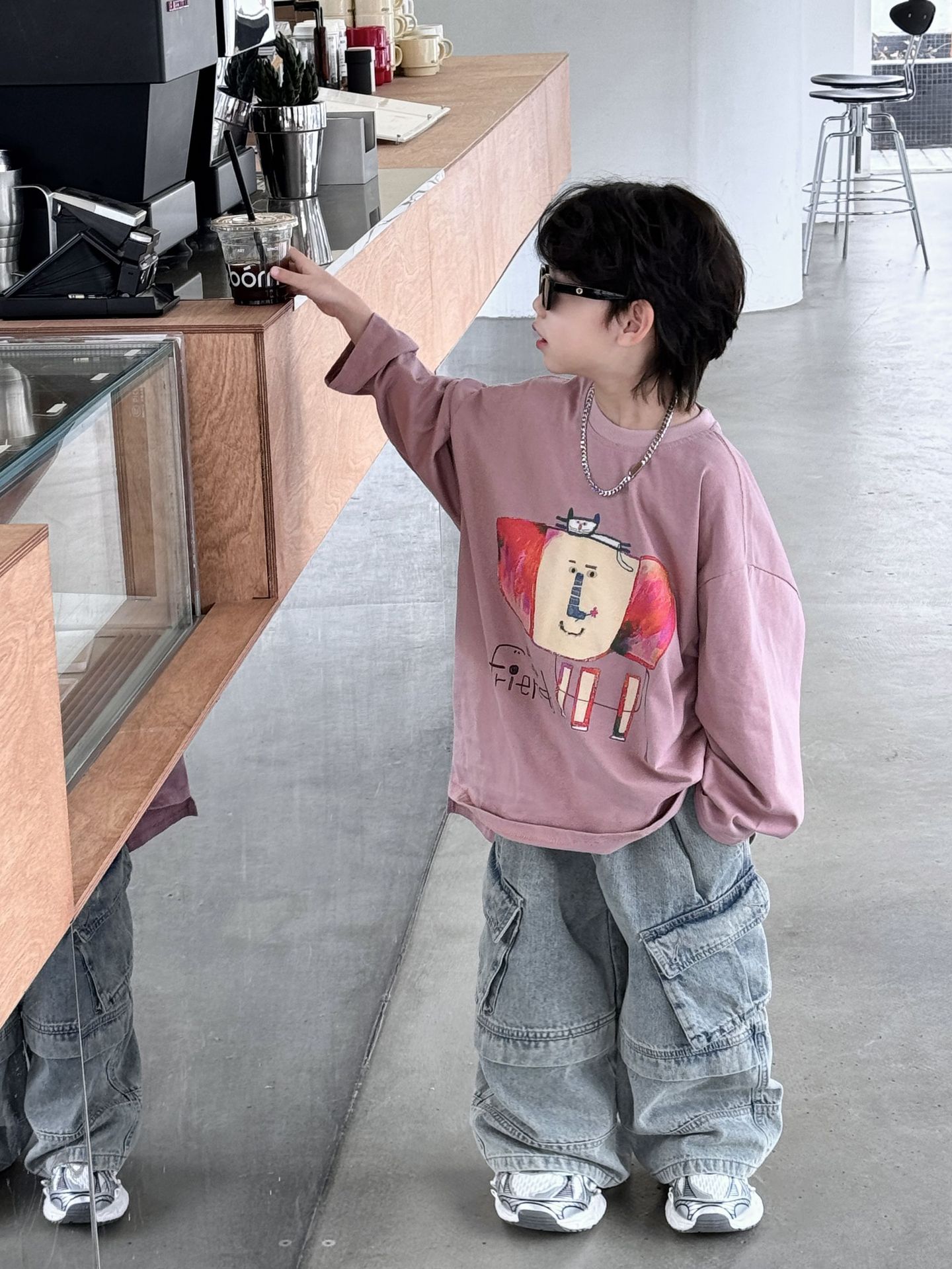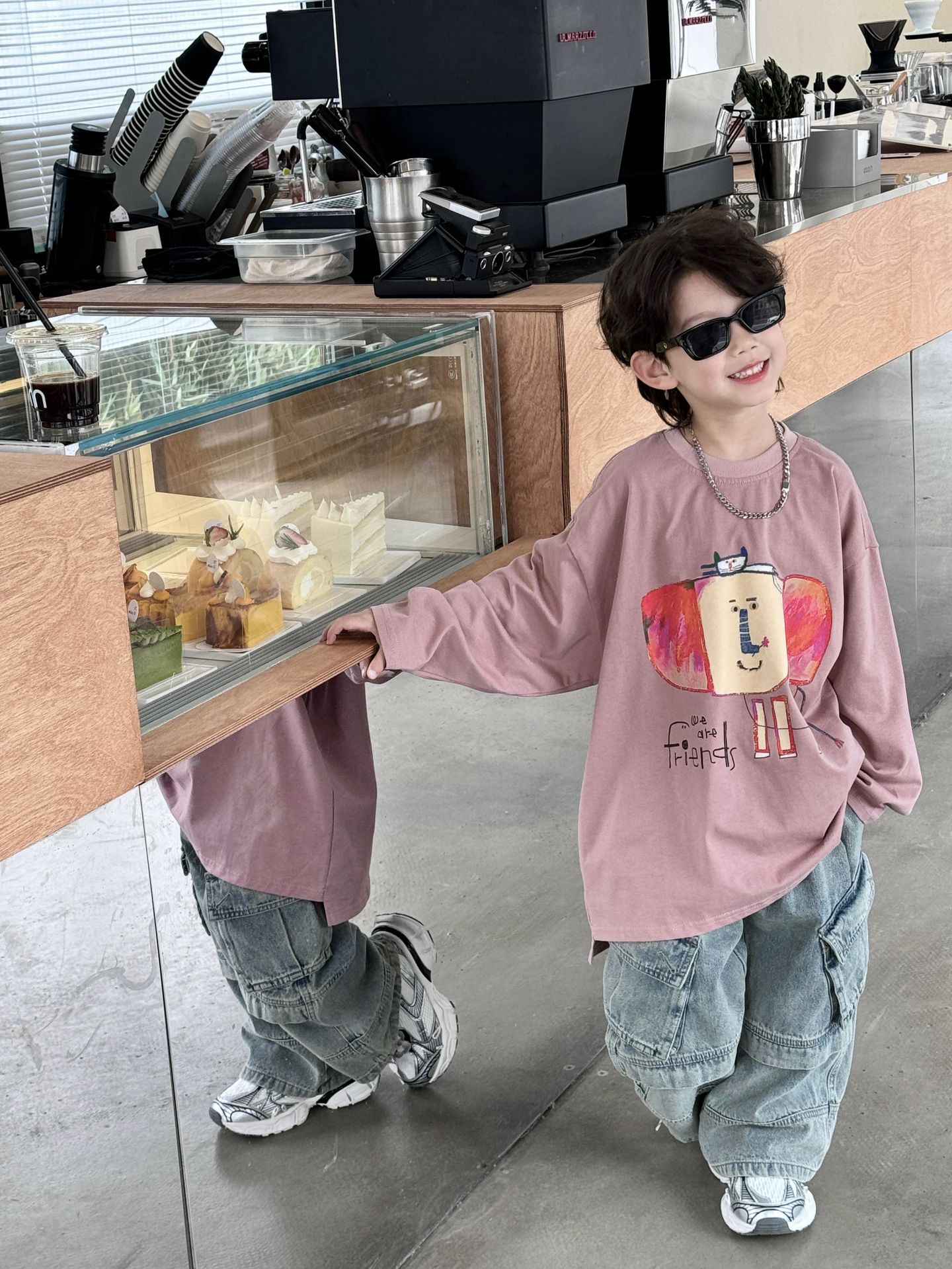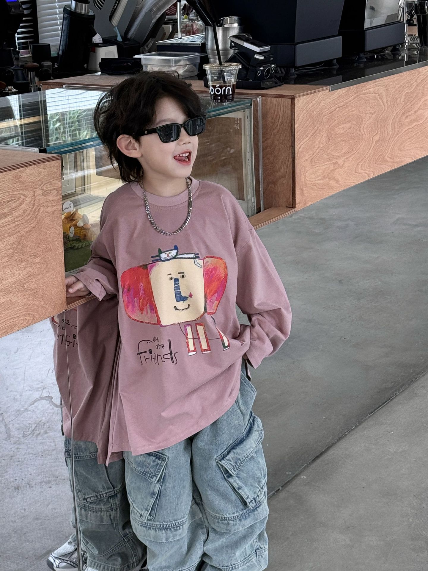 泰如春季新款韩版男童宽松洋气卡通套头T恤儿童百搭上衣潮