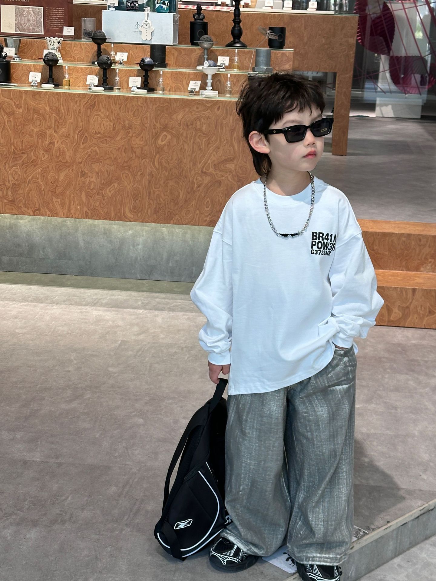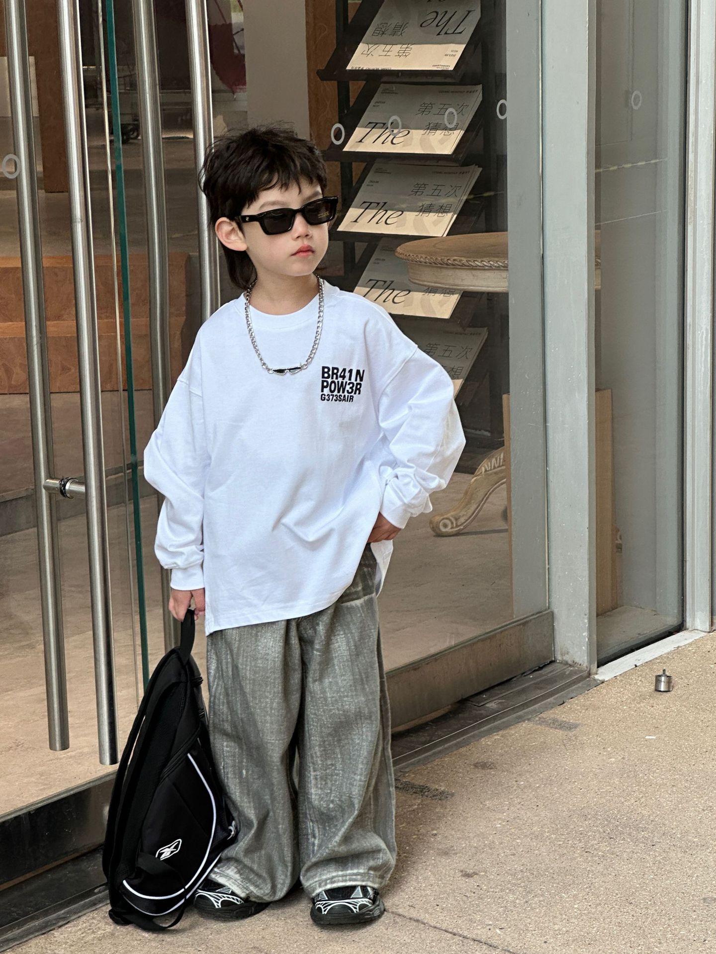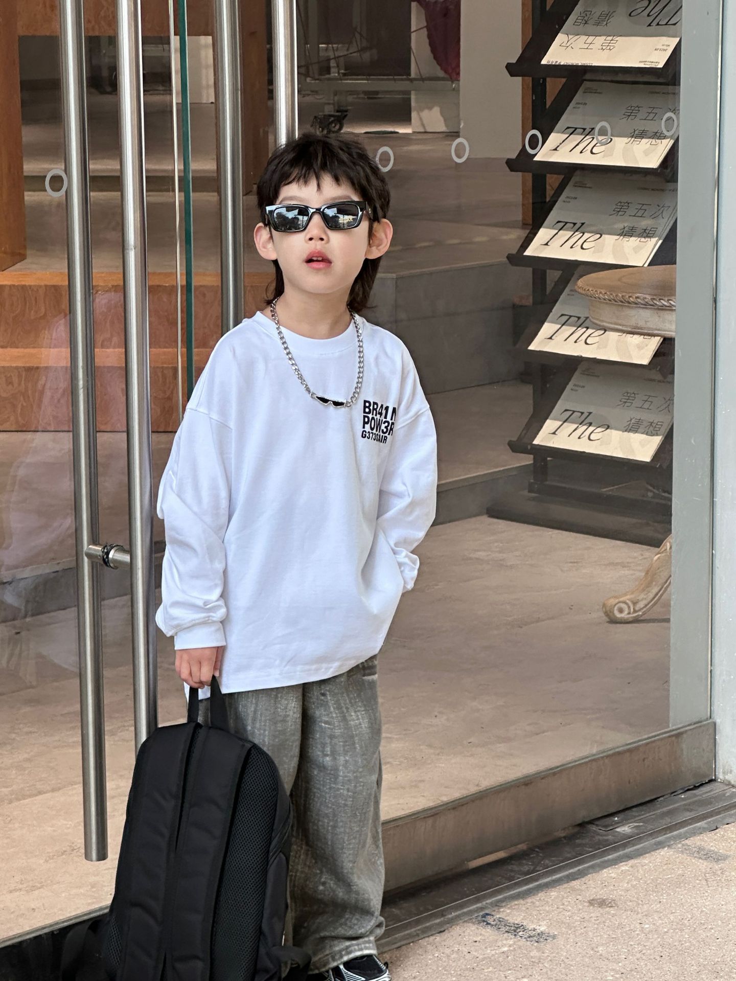 泰如春季新款韩版男童时尚字母宽松百搭长袖T恤儿童上衣潮