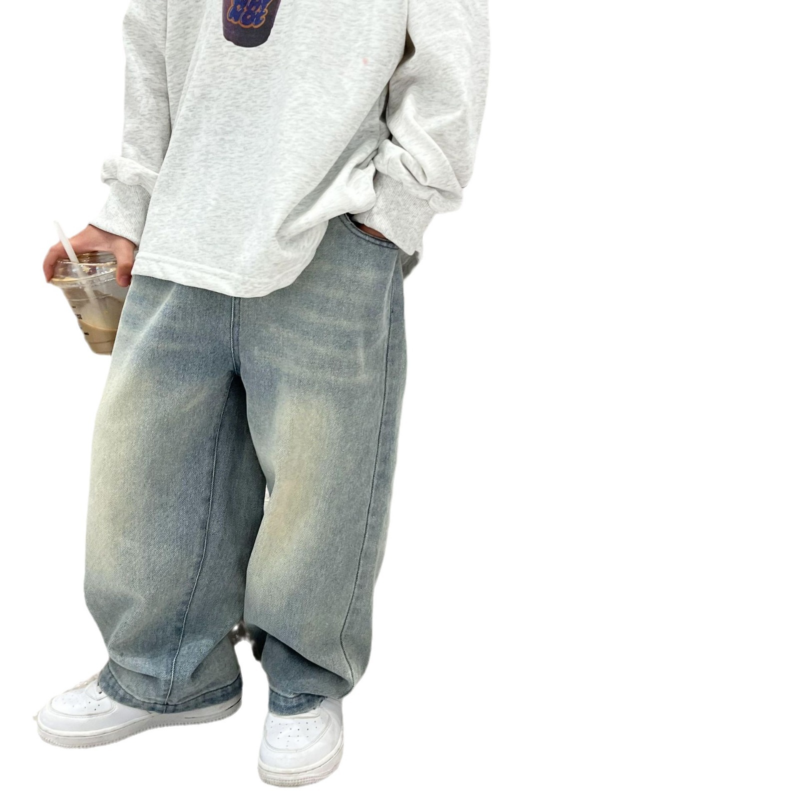 儿童长裤泰如秋季新款男童时尚复古牛仔裤宝宝韩版直筒长裤潮