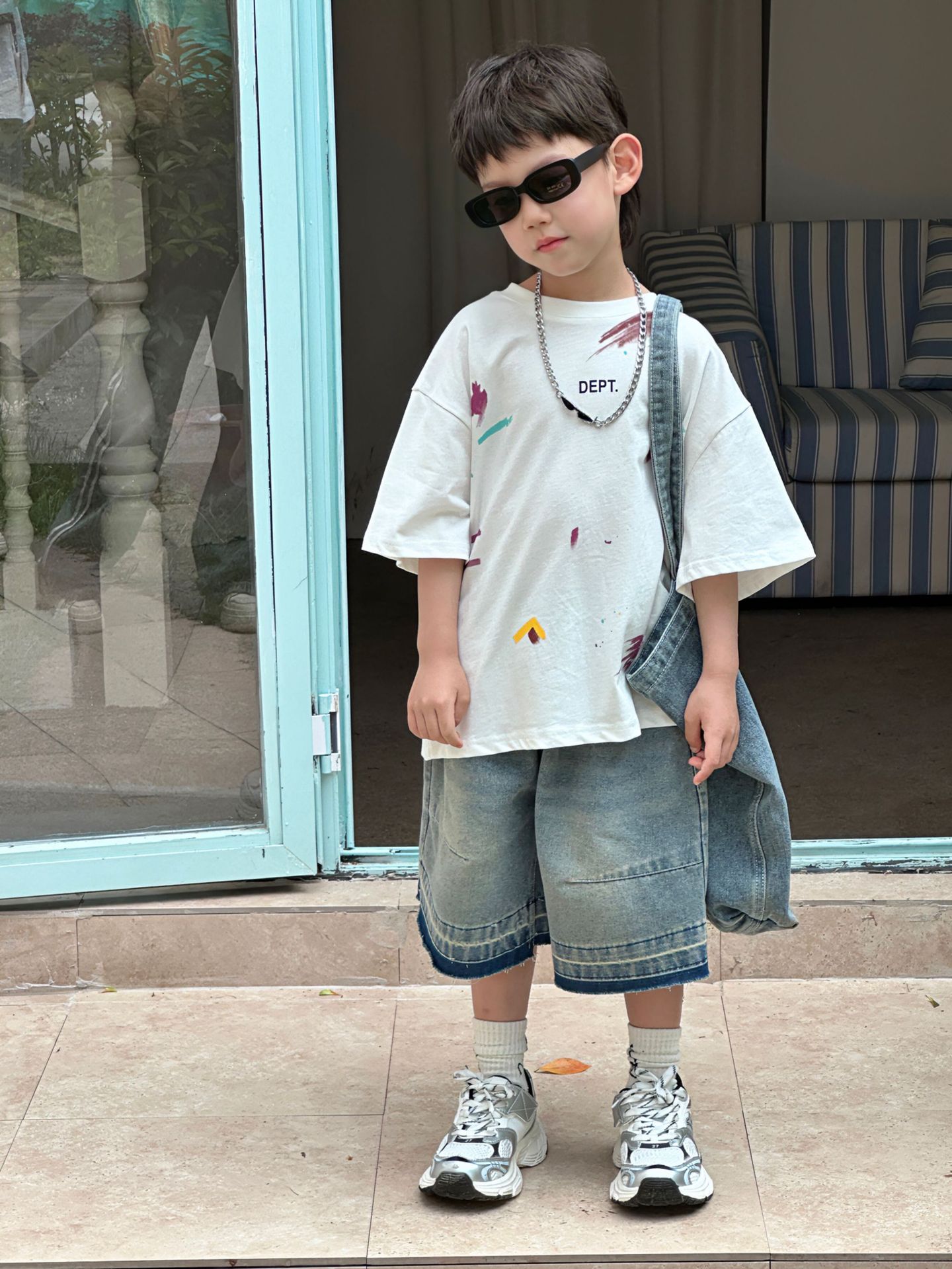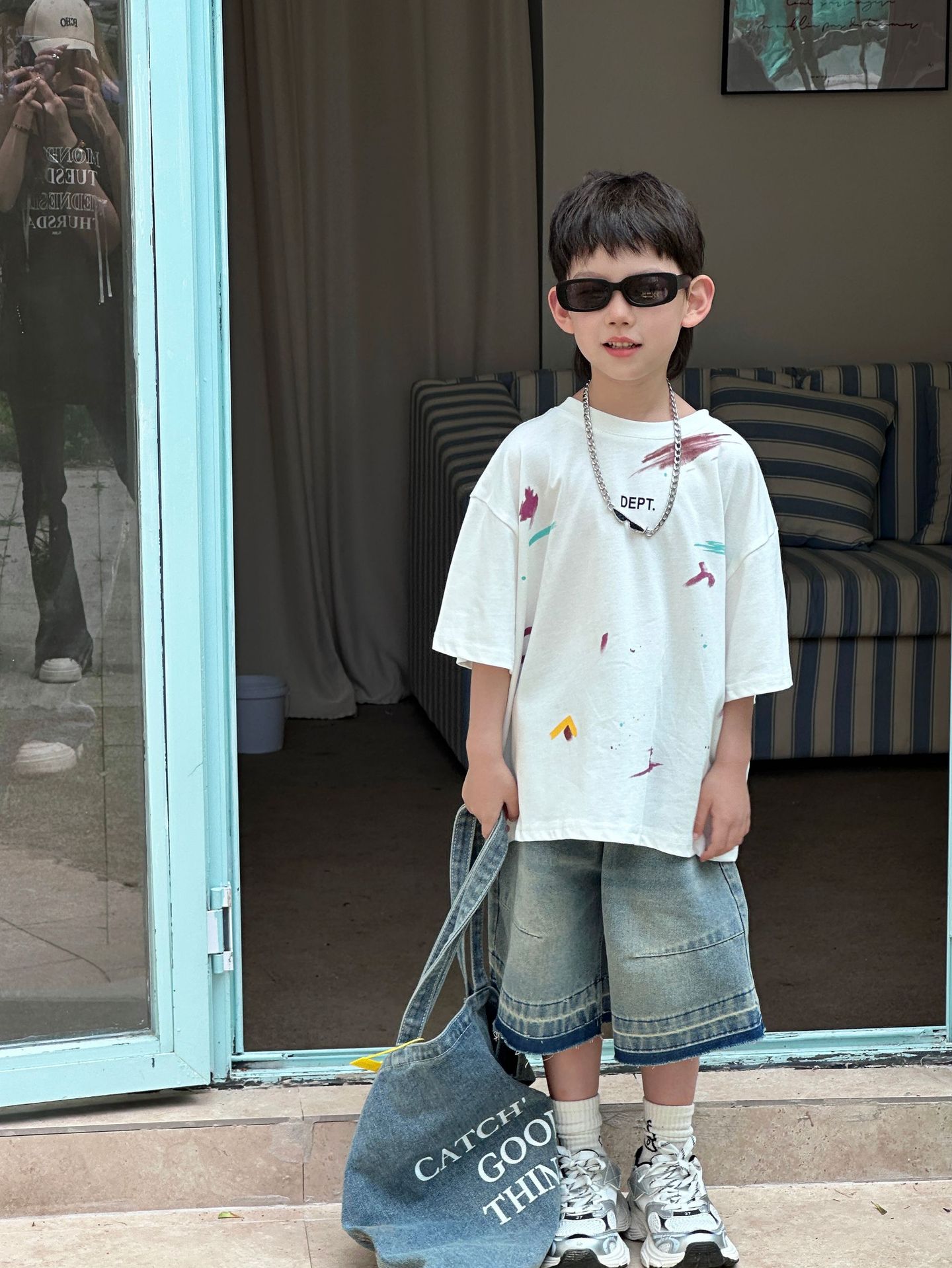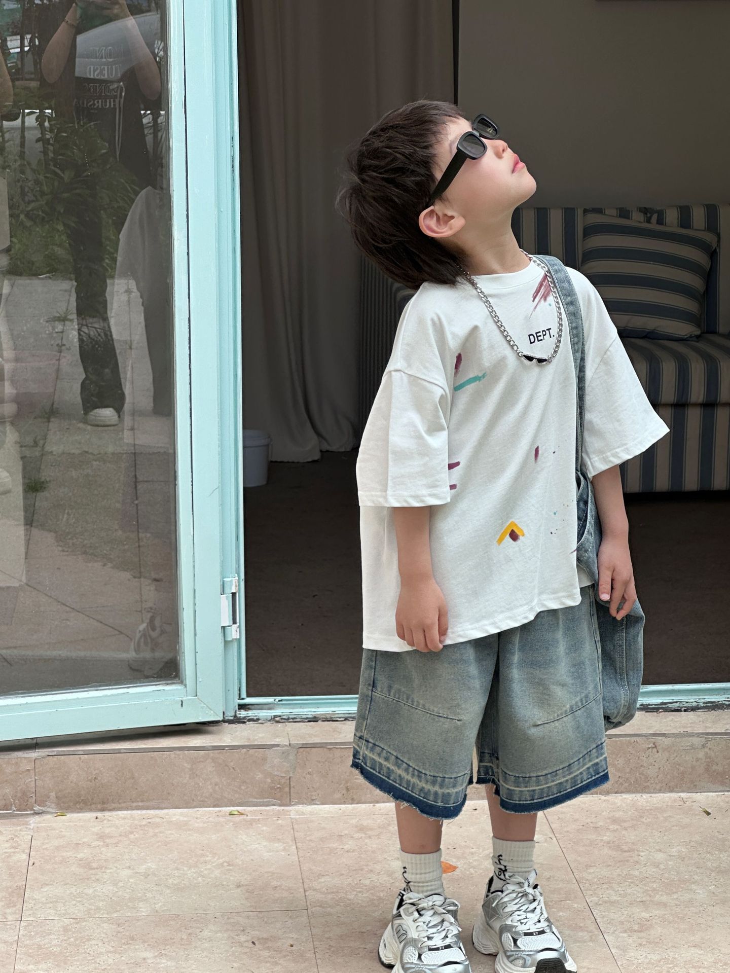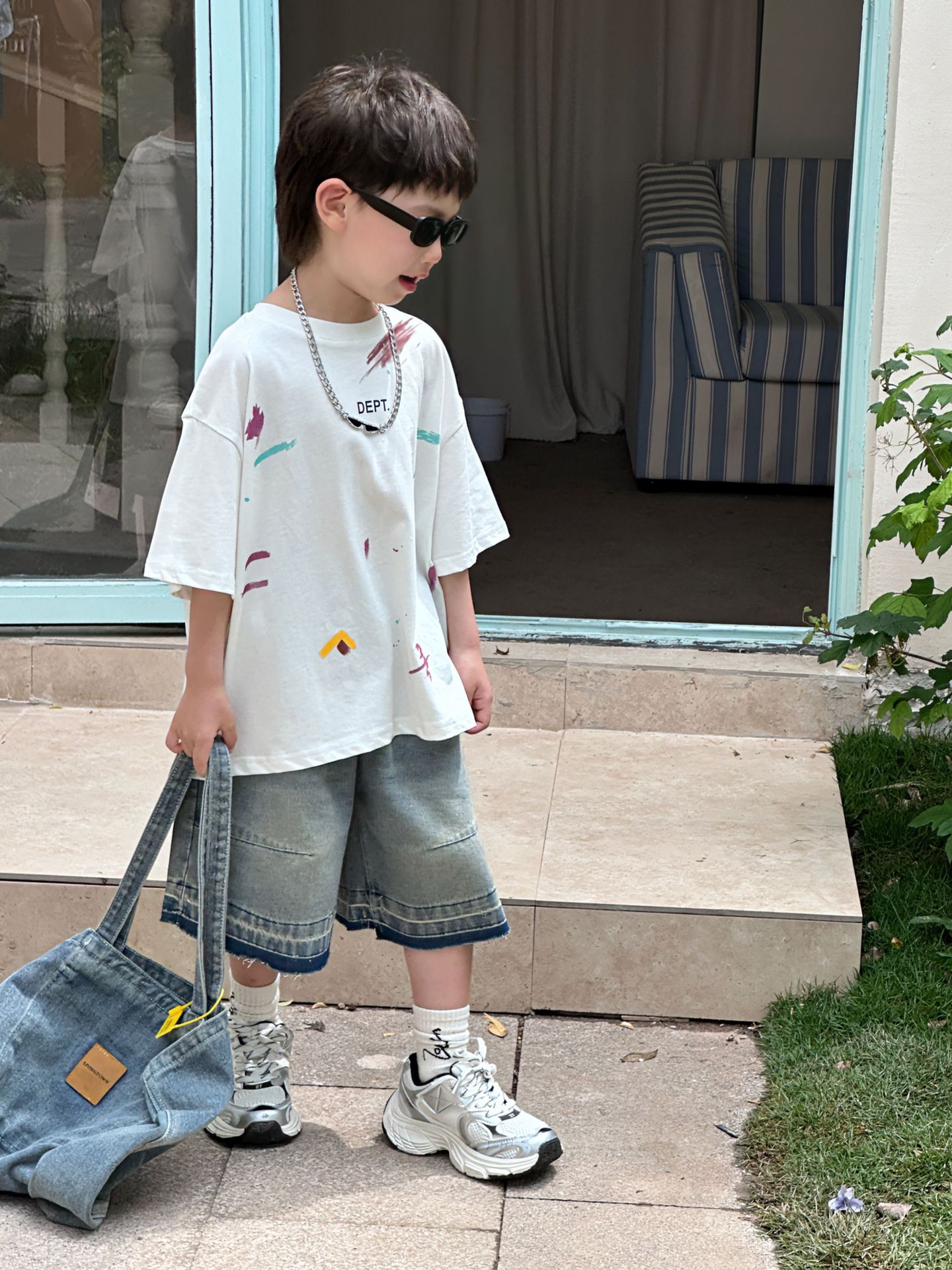 泰如夏季新款韩版男童时尚涂鸦设计感漆点短袖儿童T恤上衣潮