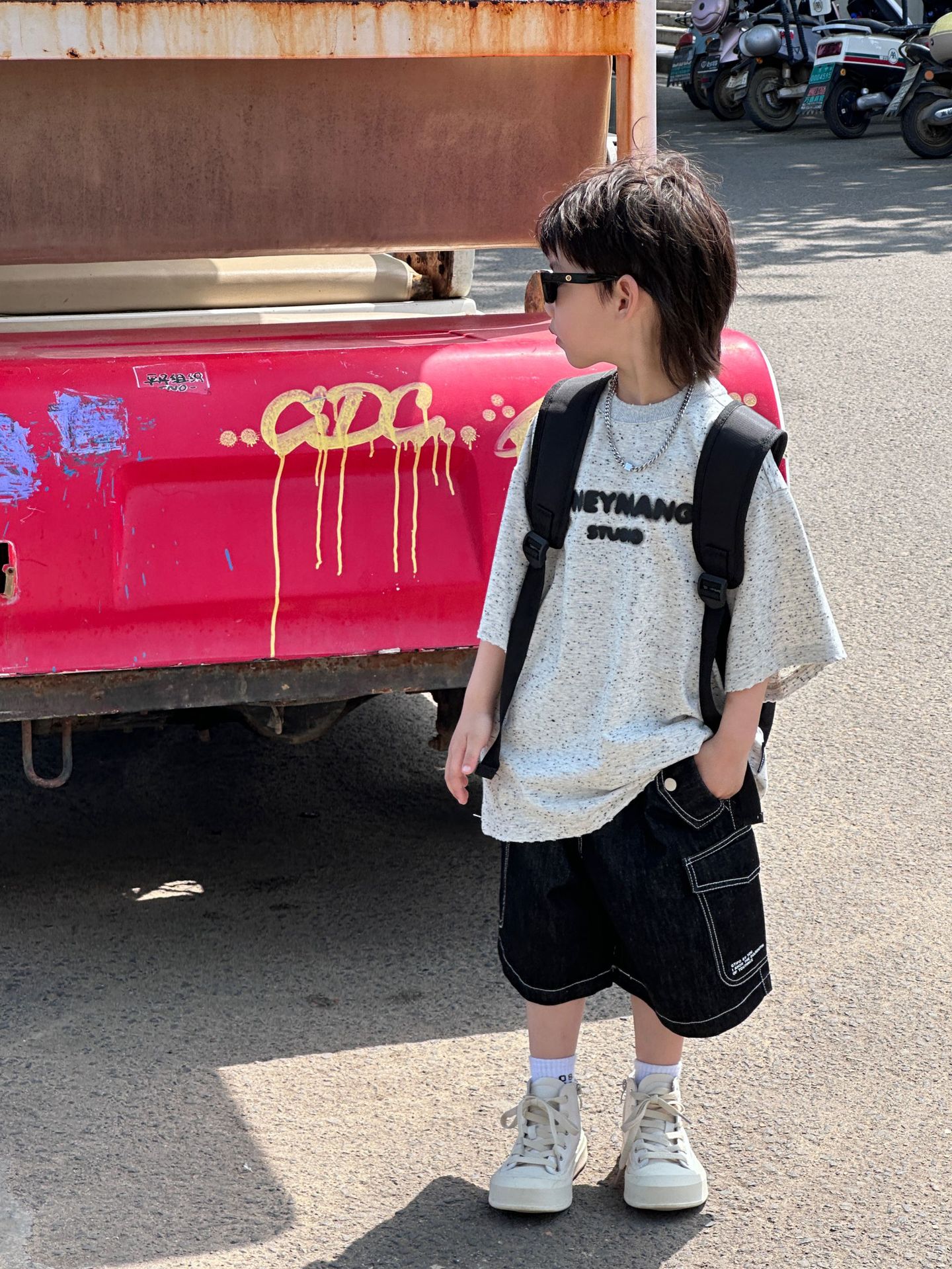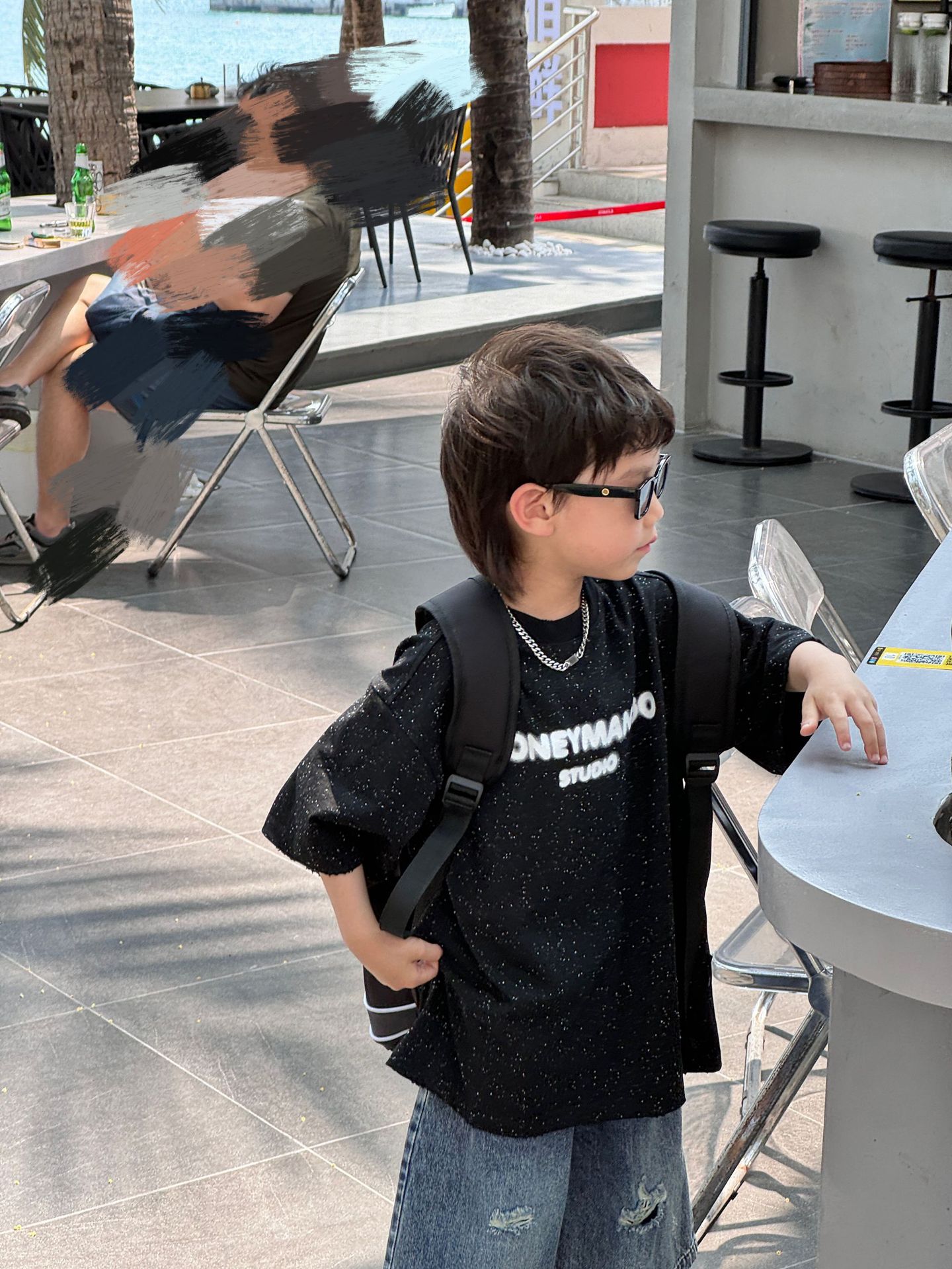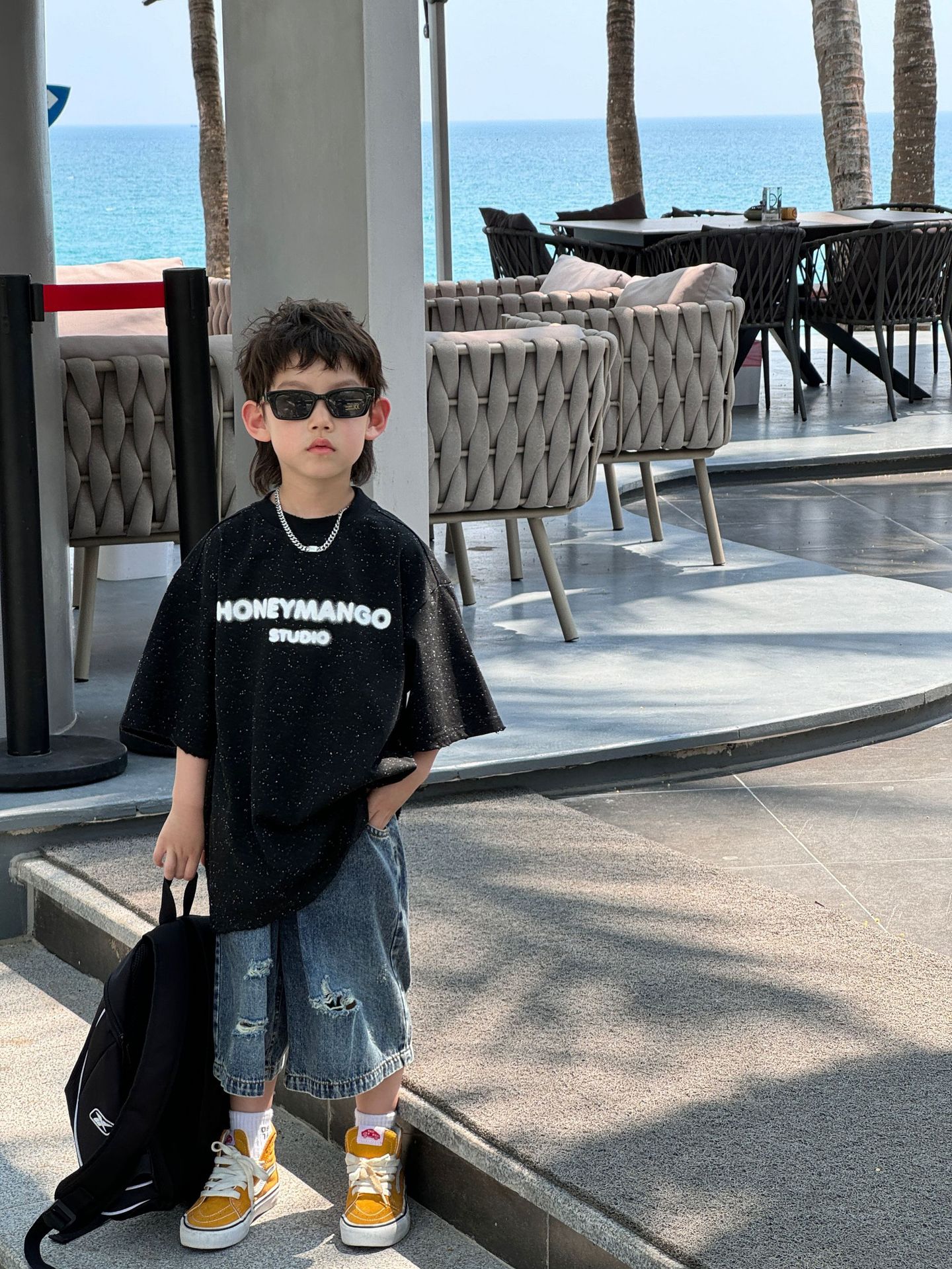 泰如夏季新款韩版百搭奥利奥字母设计感短袖儿童T恤时尚潮
