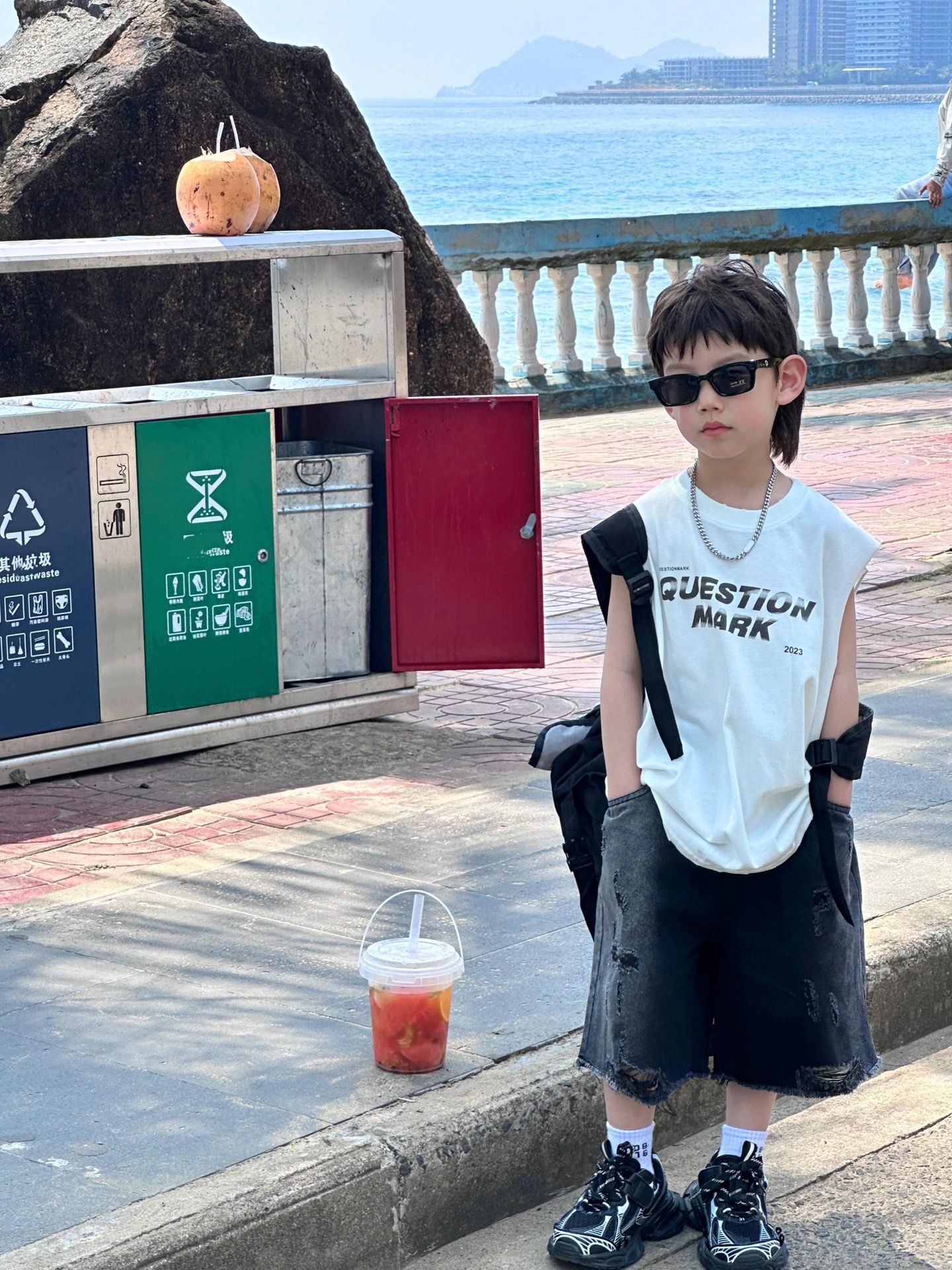 麦可希童装男童背心纯棉夏季新款儿童透气无袖T恤男孩衣服