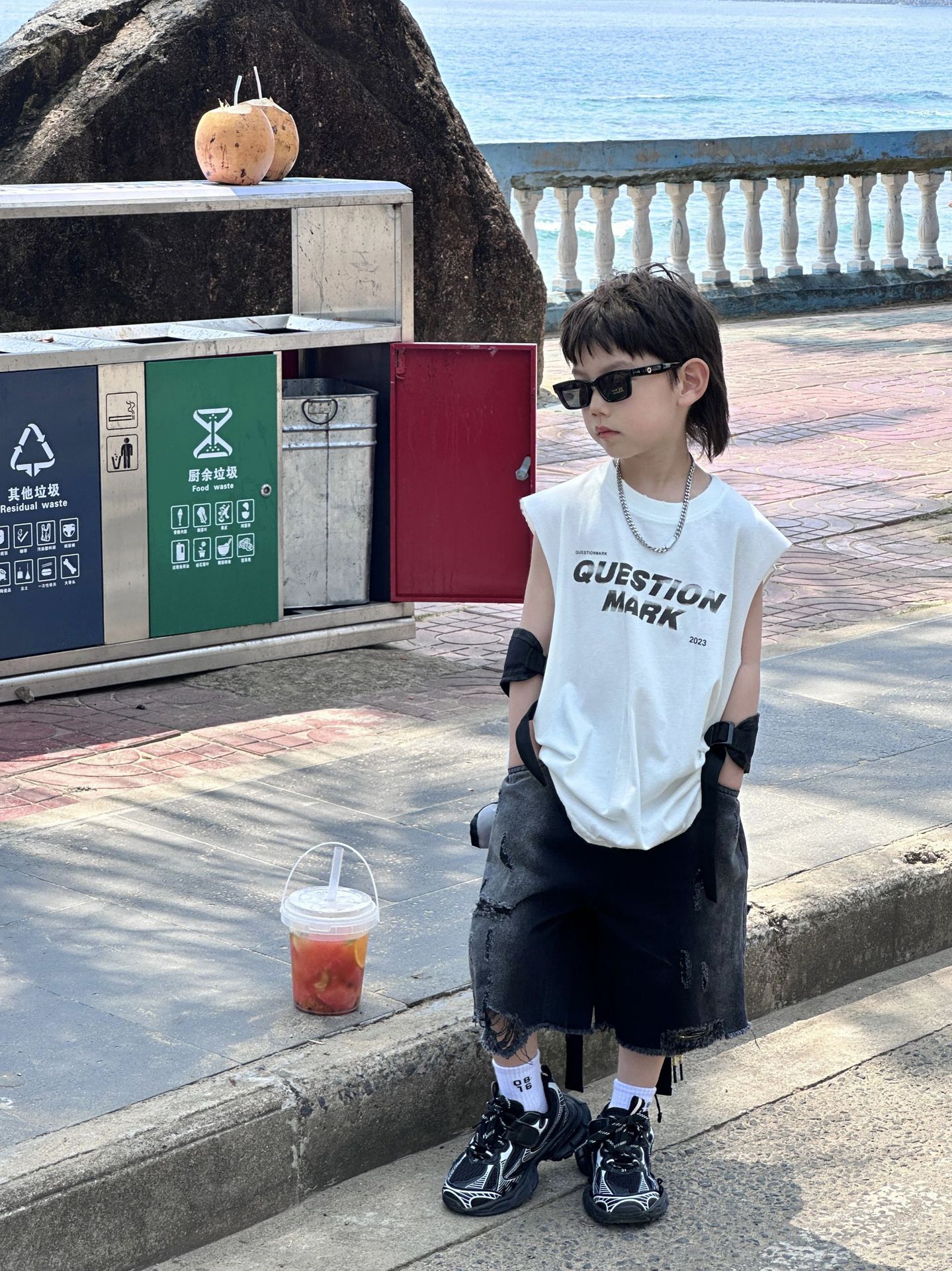 泰如夏季新款韩版男童字母简约纯色套头T恤儿童上衣无袖潮