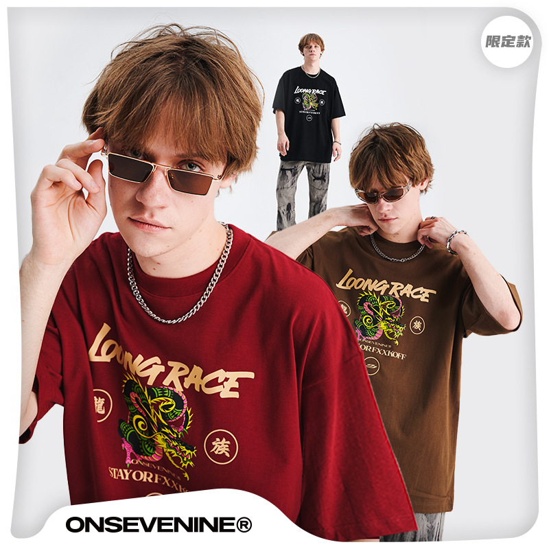 VIVGAE潮牌国潮短袖龙年印花设计宽松oversize男式T恤男女