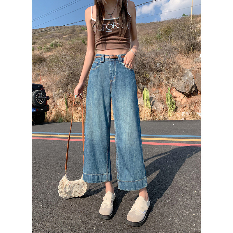 复古辣妹多巴胺天丝阔腿奶奶裤新款垂感薄款八分小个子牛仔裤子