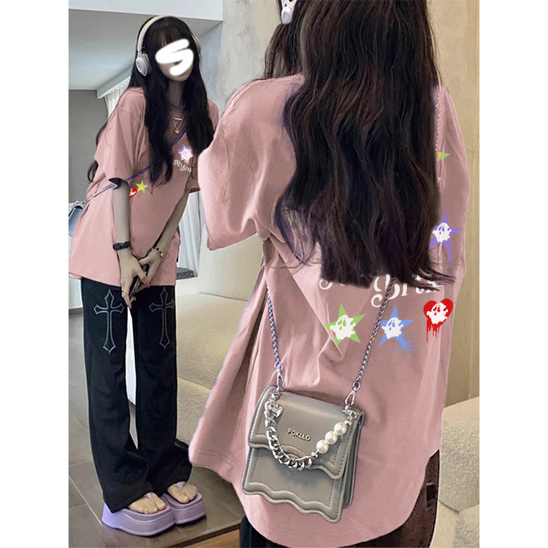 美式复古圆领短袖t恤女夏季新款oversize独特设计感上衣