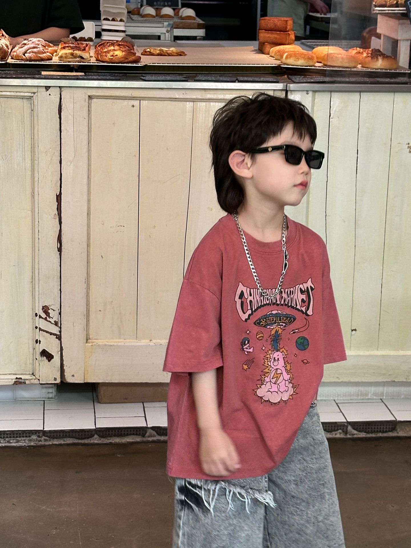 泰如夏季新款韩版男童美式字母套头百搭T恤时尚短袖儿童上衣