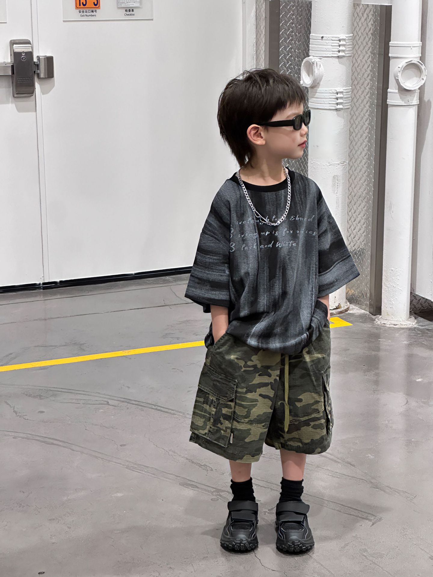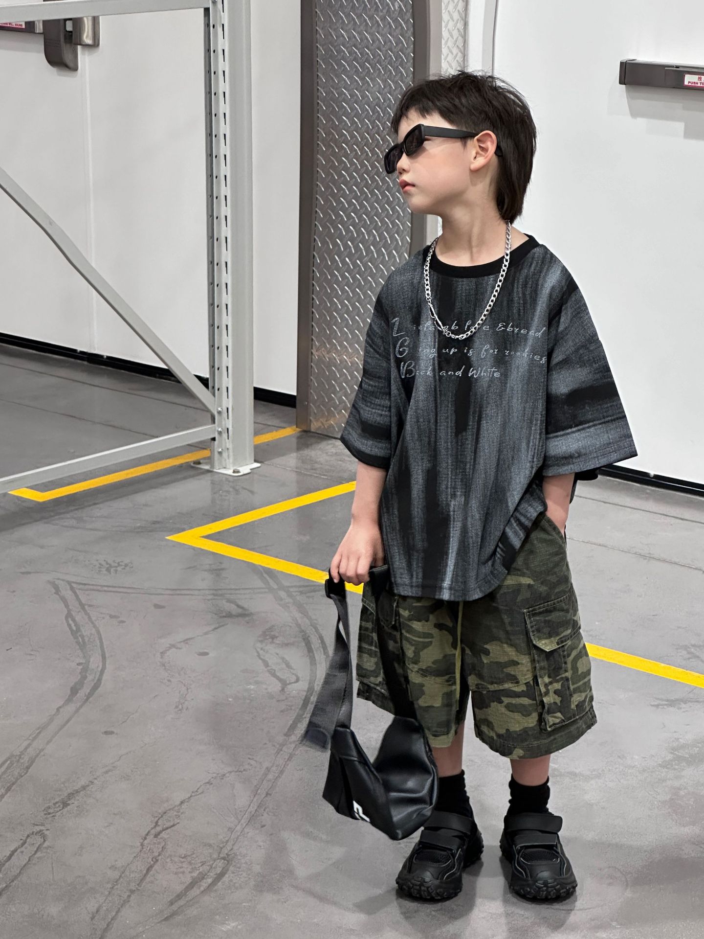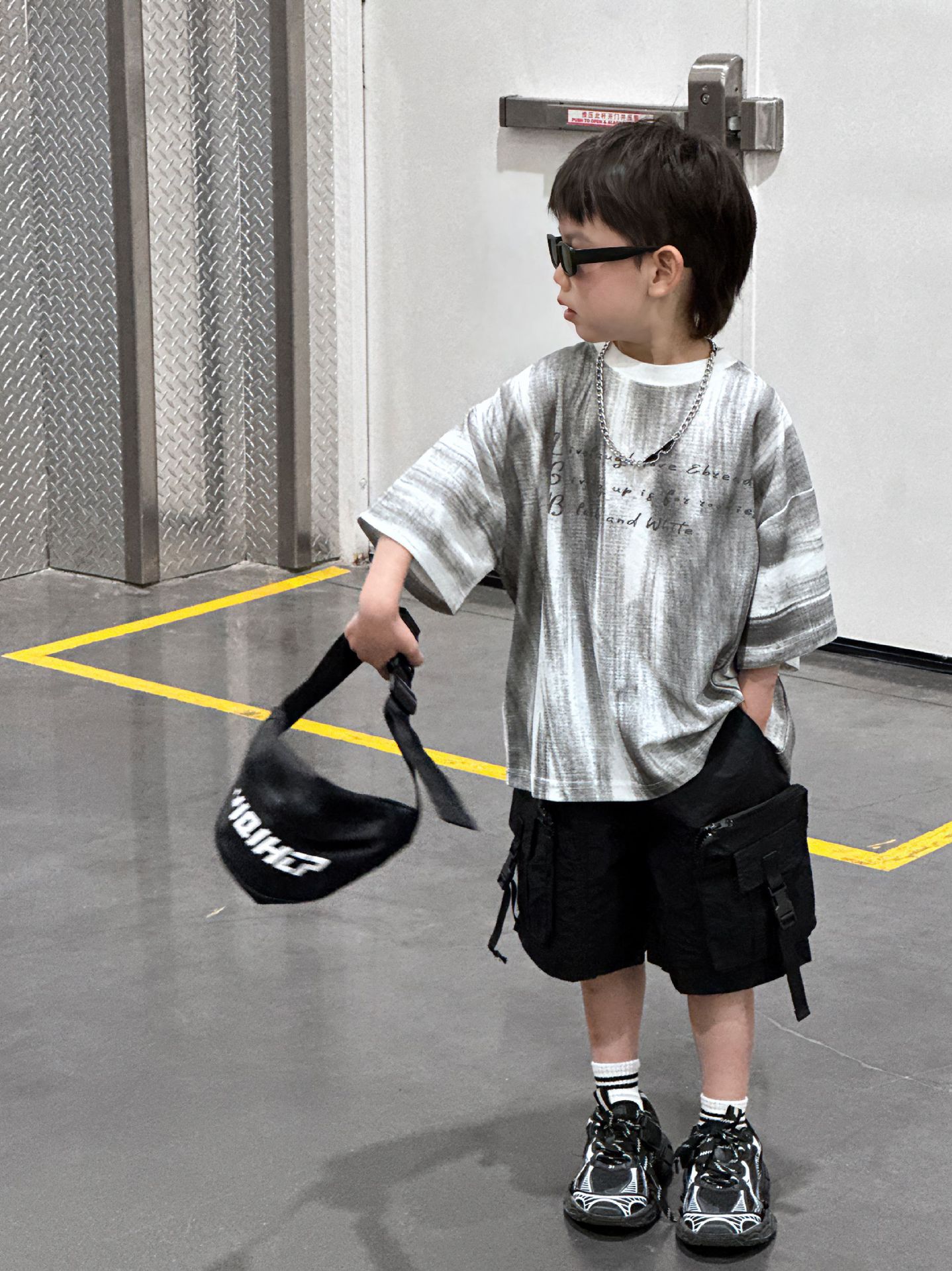 泰如夏季新款韩版男童时尚扎染字母设计感短袖儿童上衣T恤潮