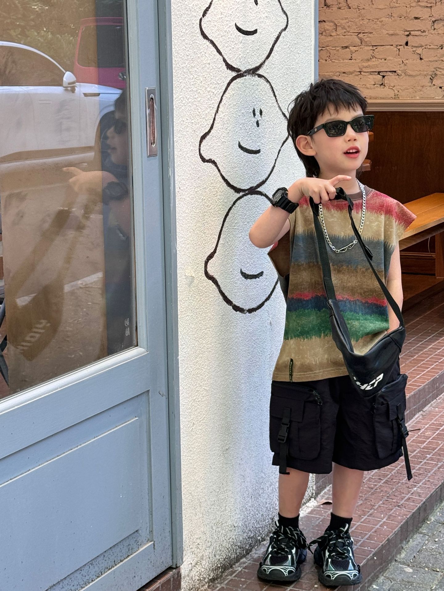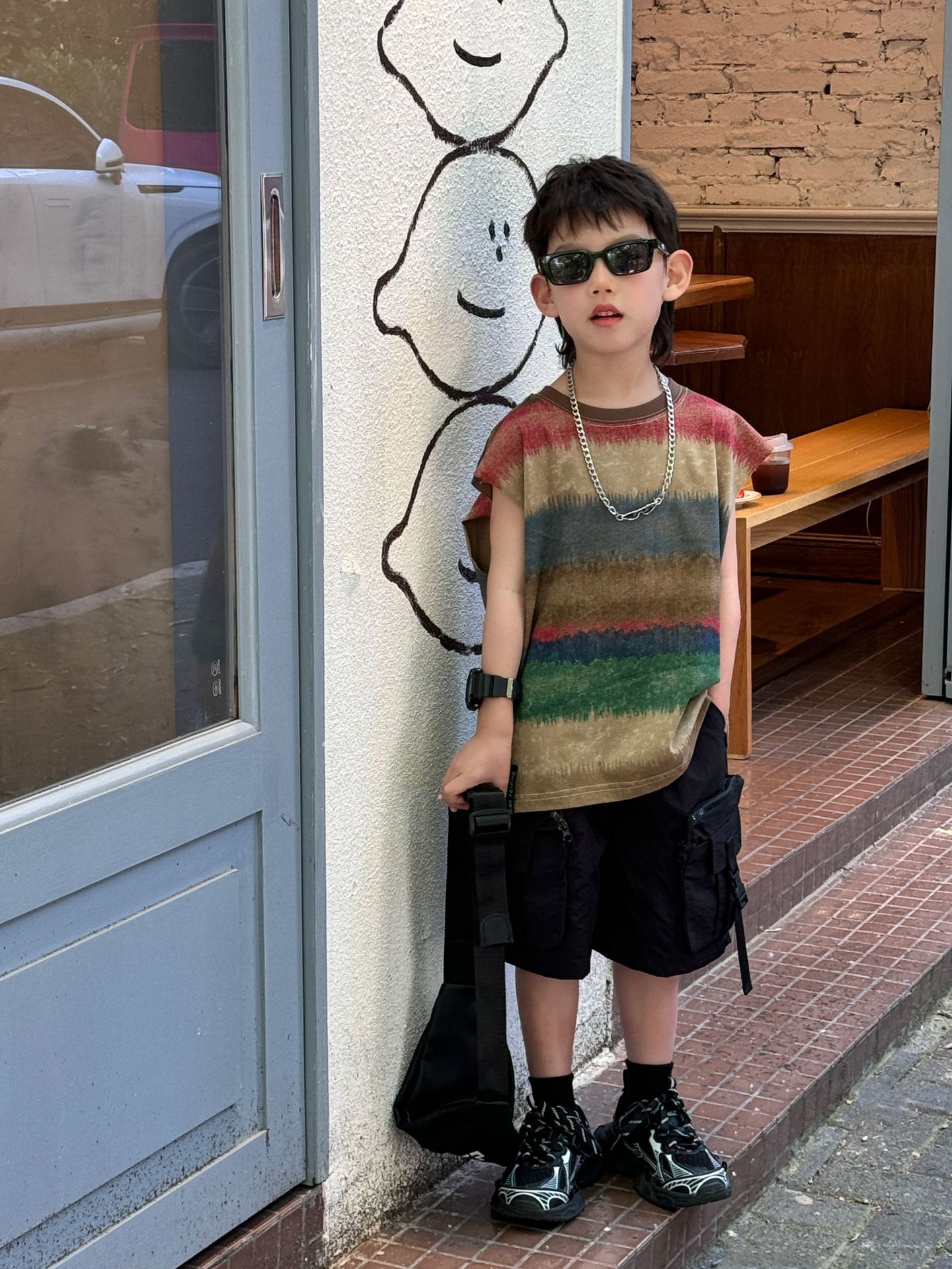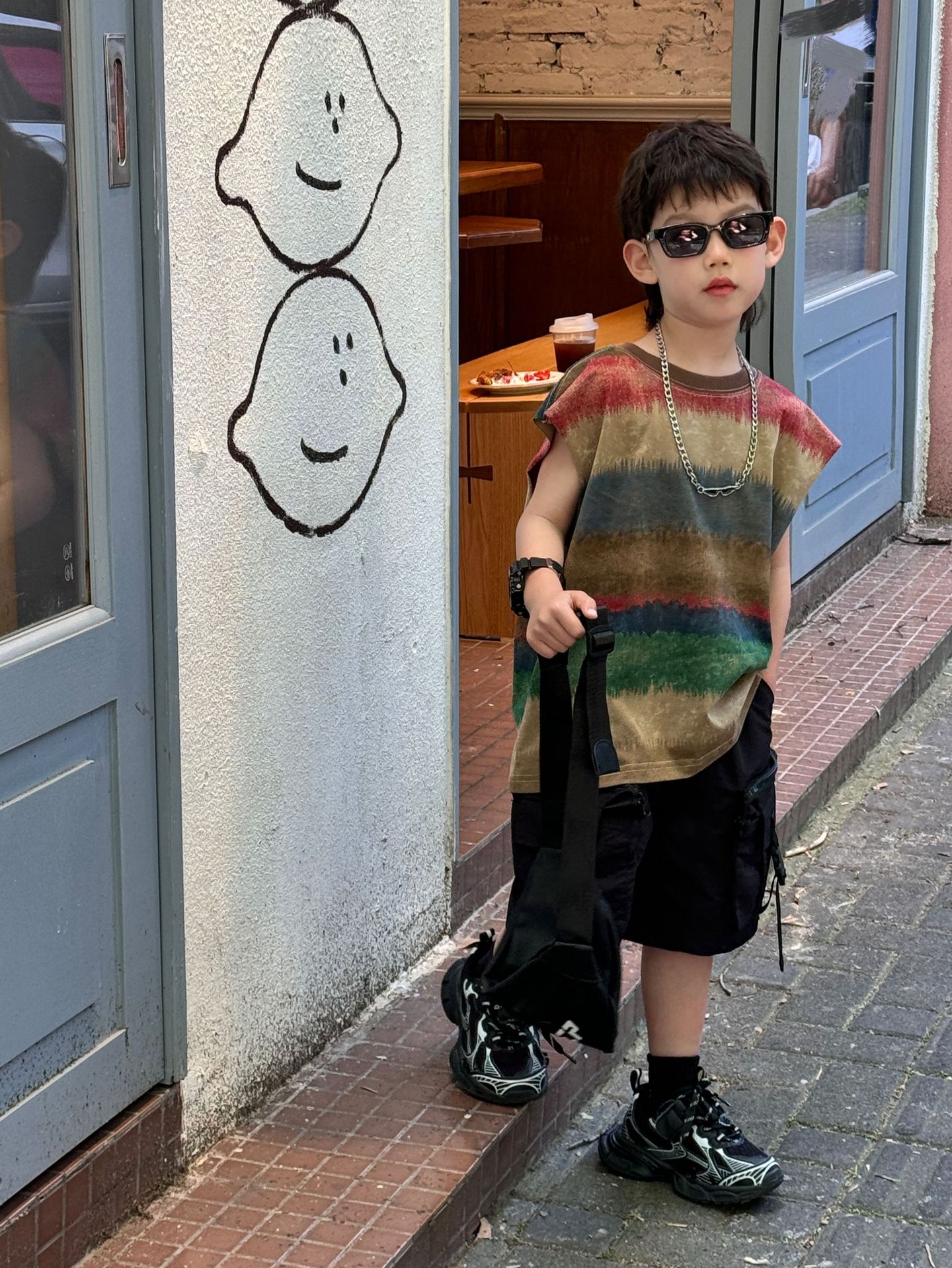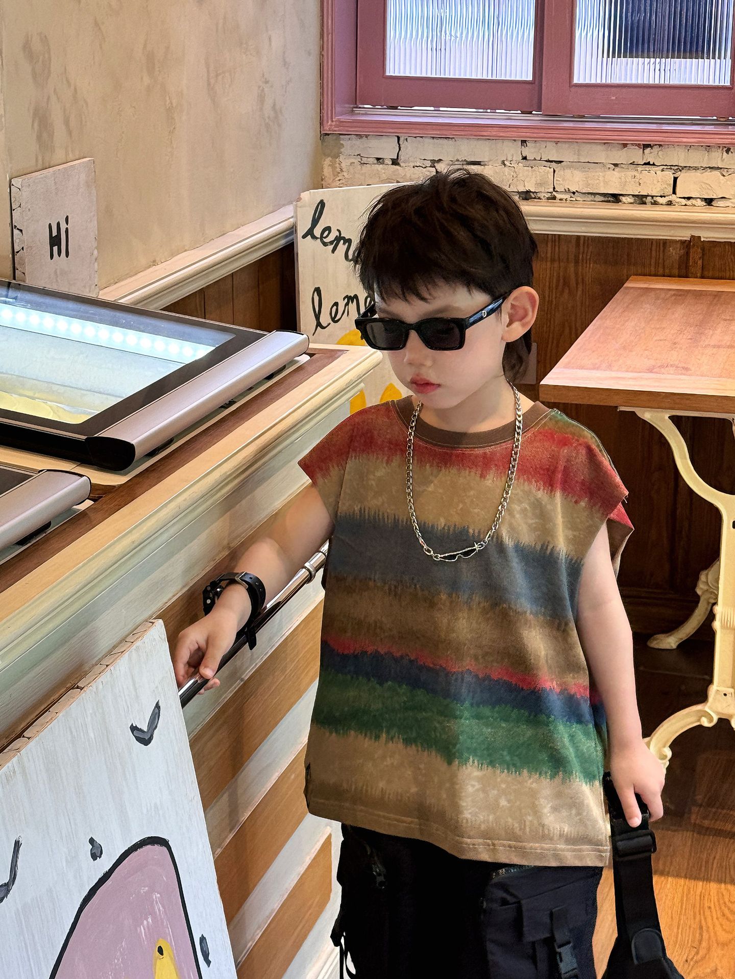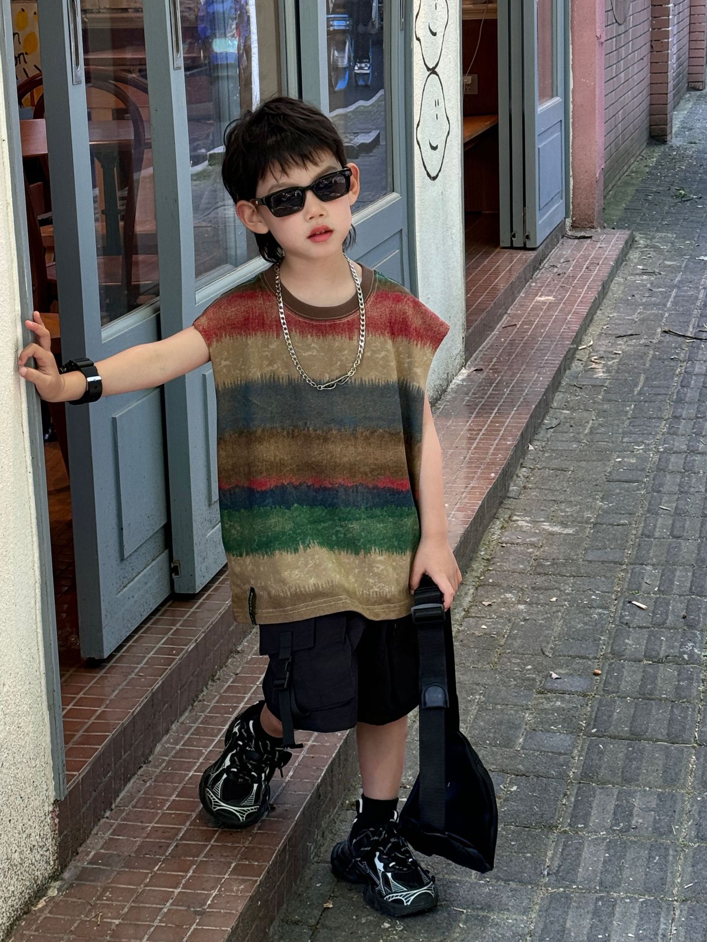 泰如夏季新款韩版男童时尚百搭洋气条纹背心T恤儿童上衣潮