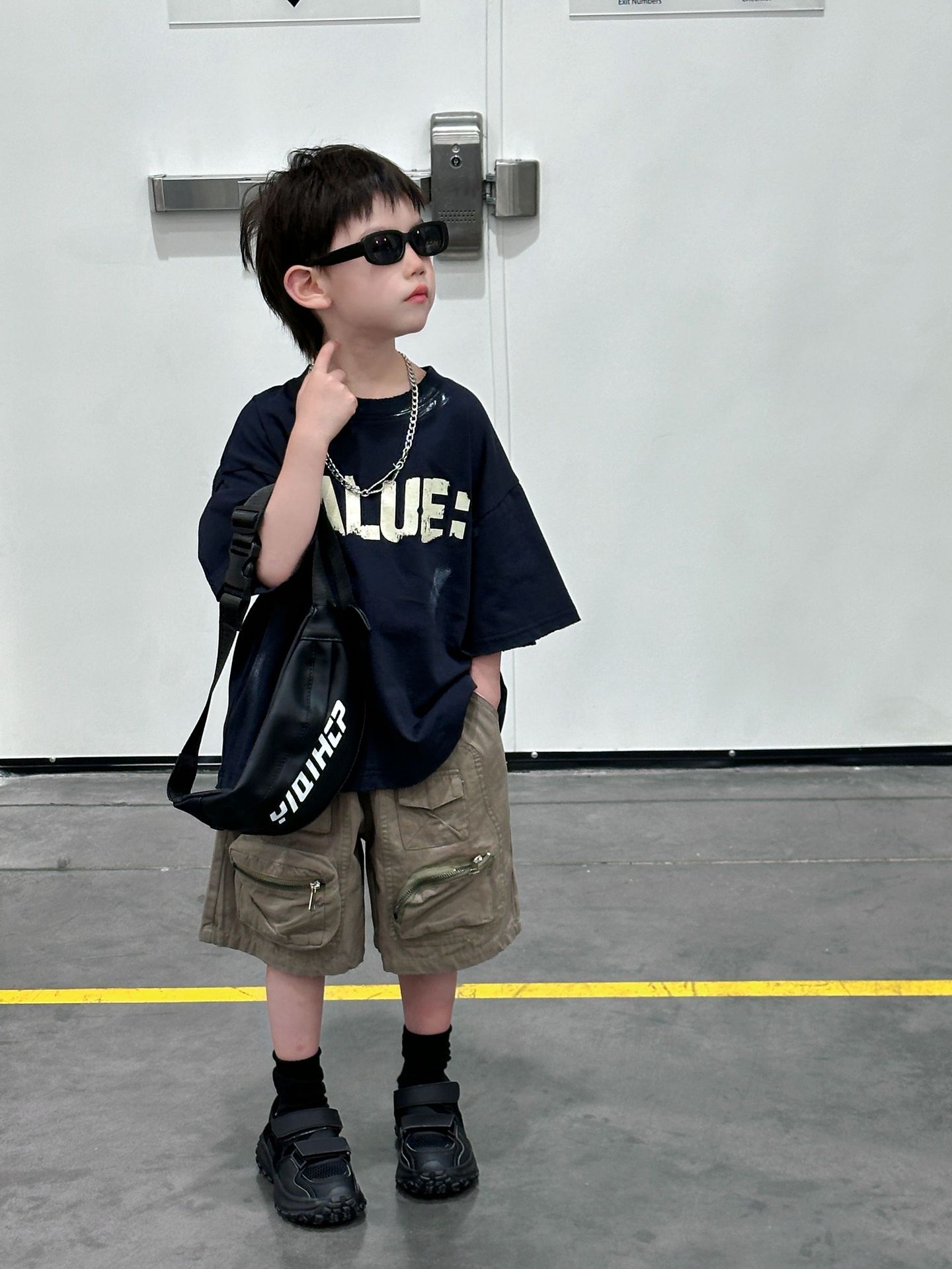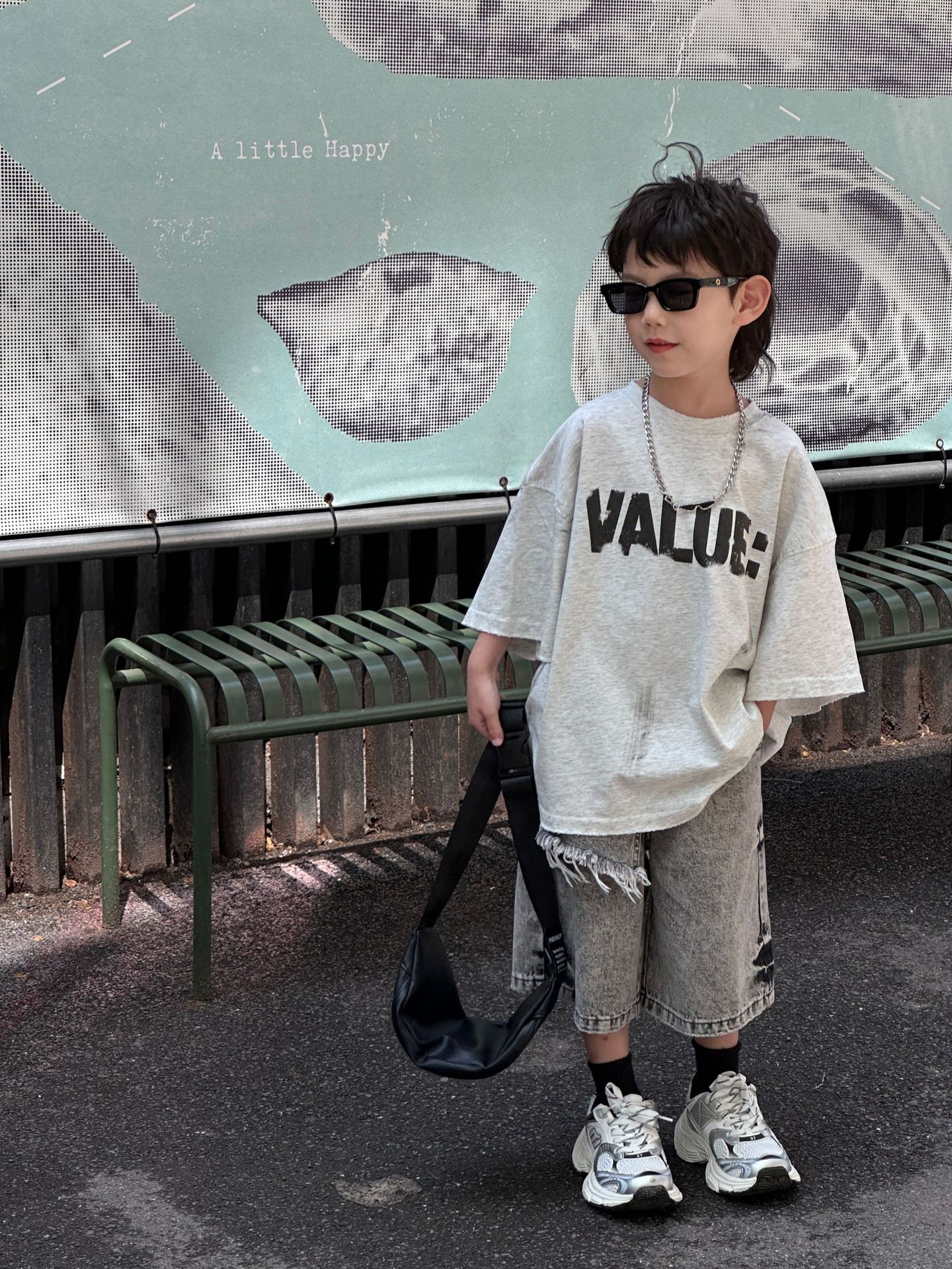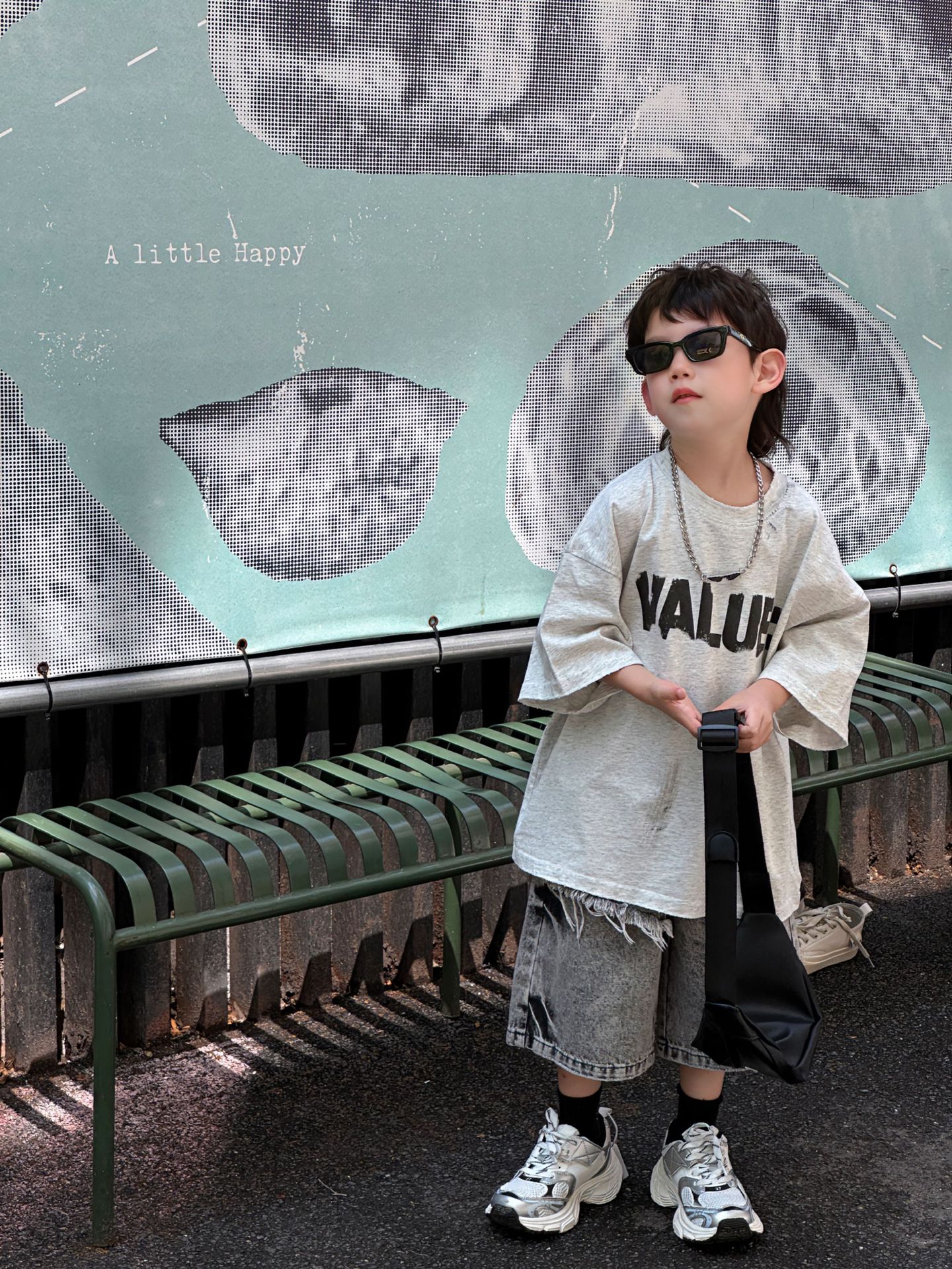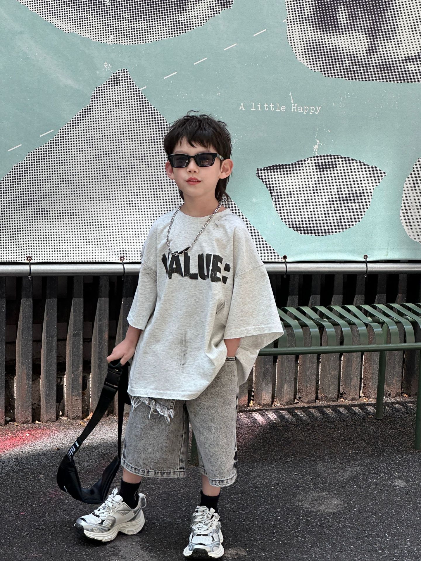 泰如夏季新款韩版男童时尚百搭字母涂鸦洋气短袖儿童T恤上衣