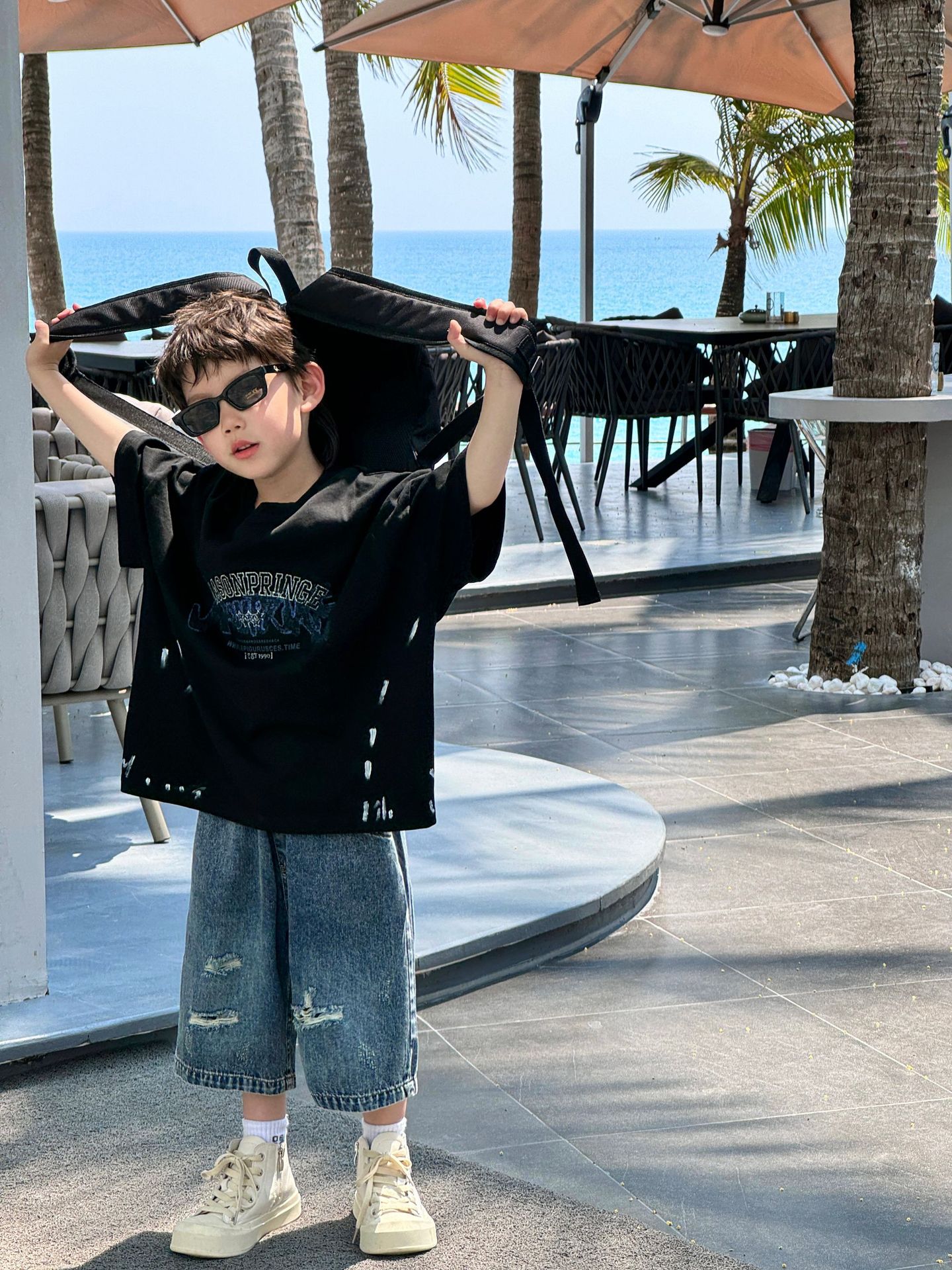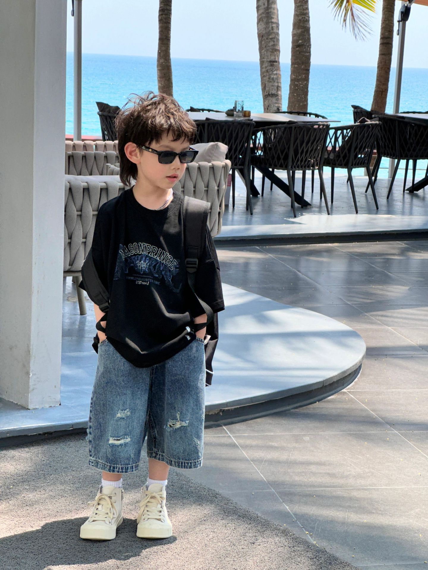 泰如夏季新款韩版男童休闲字母洋气百搭短袖T恤儿童上衣潮