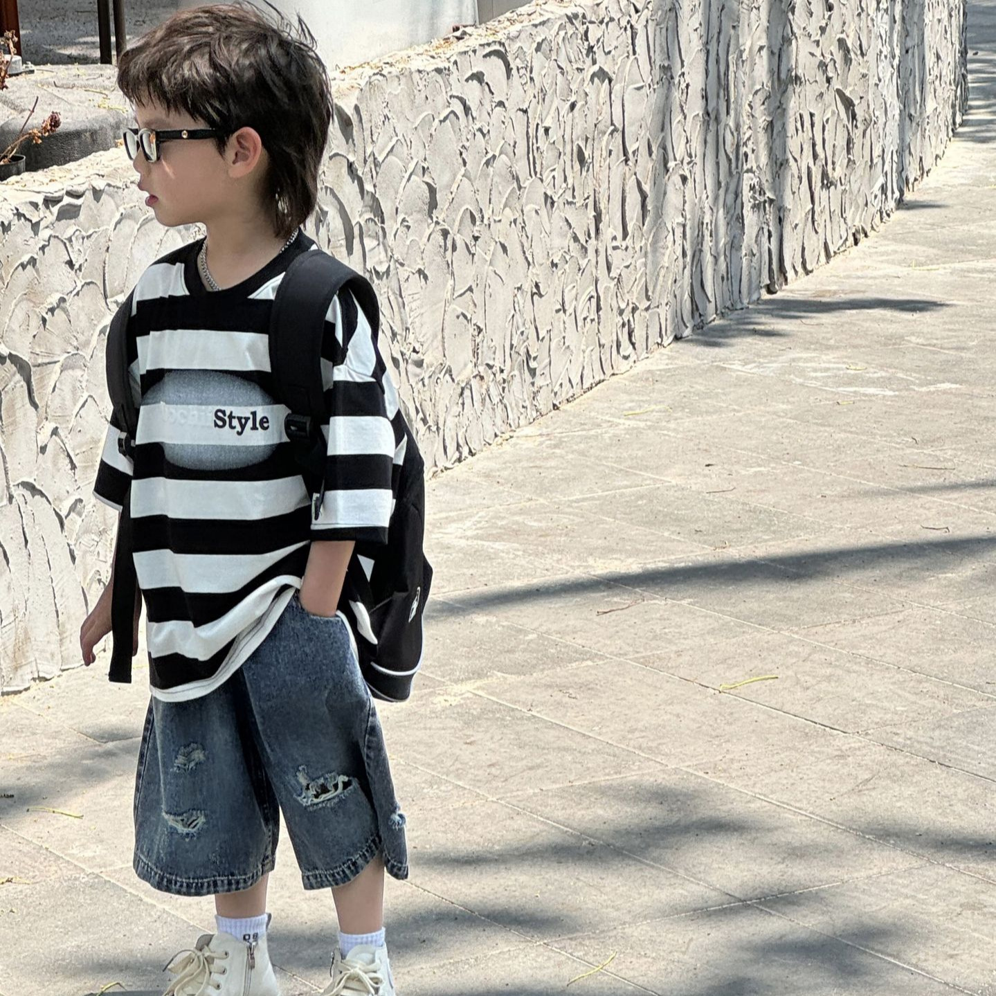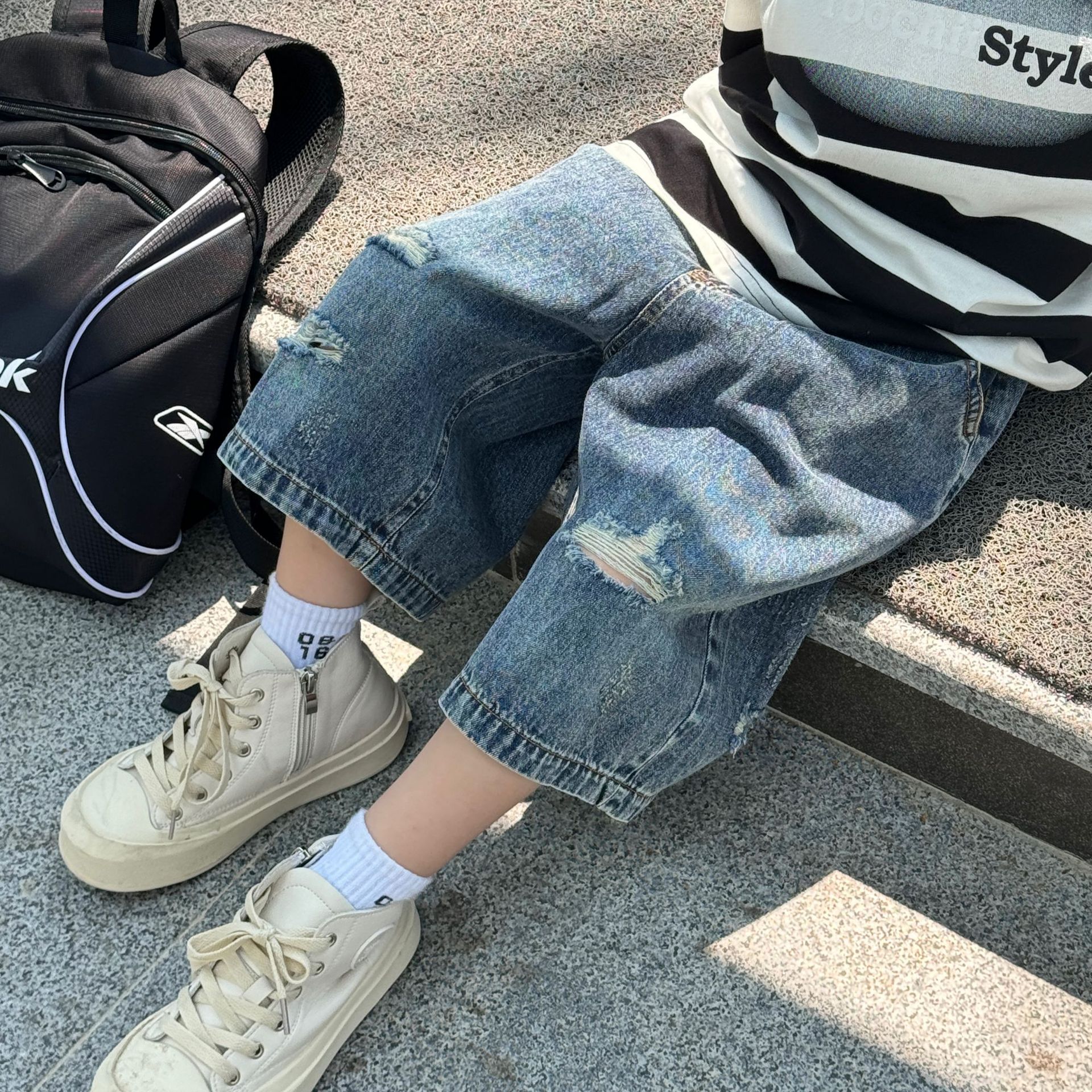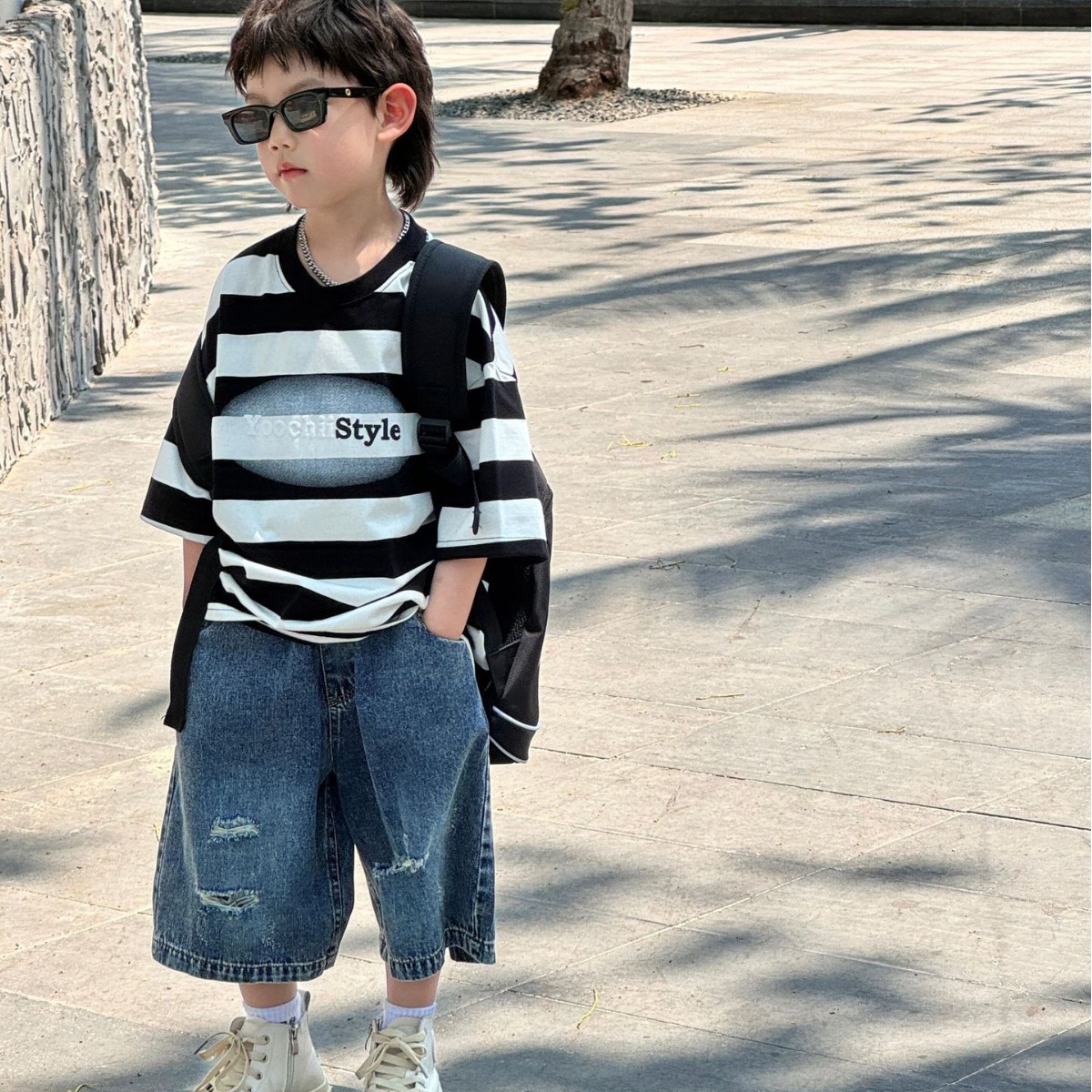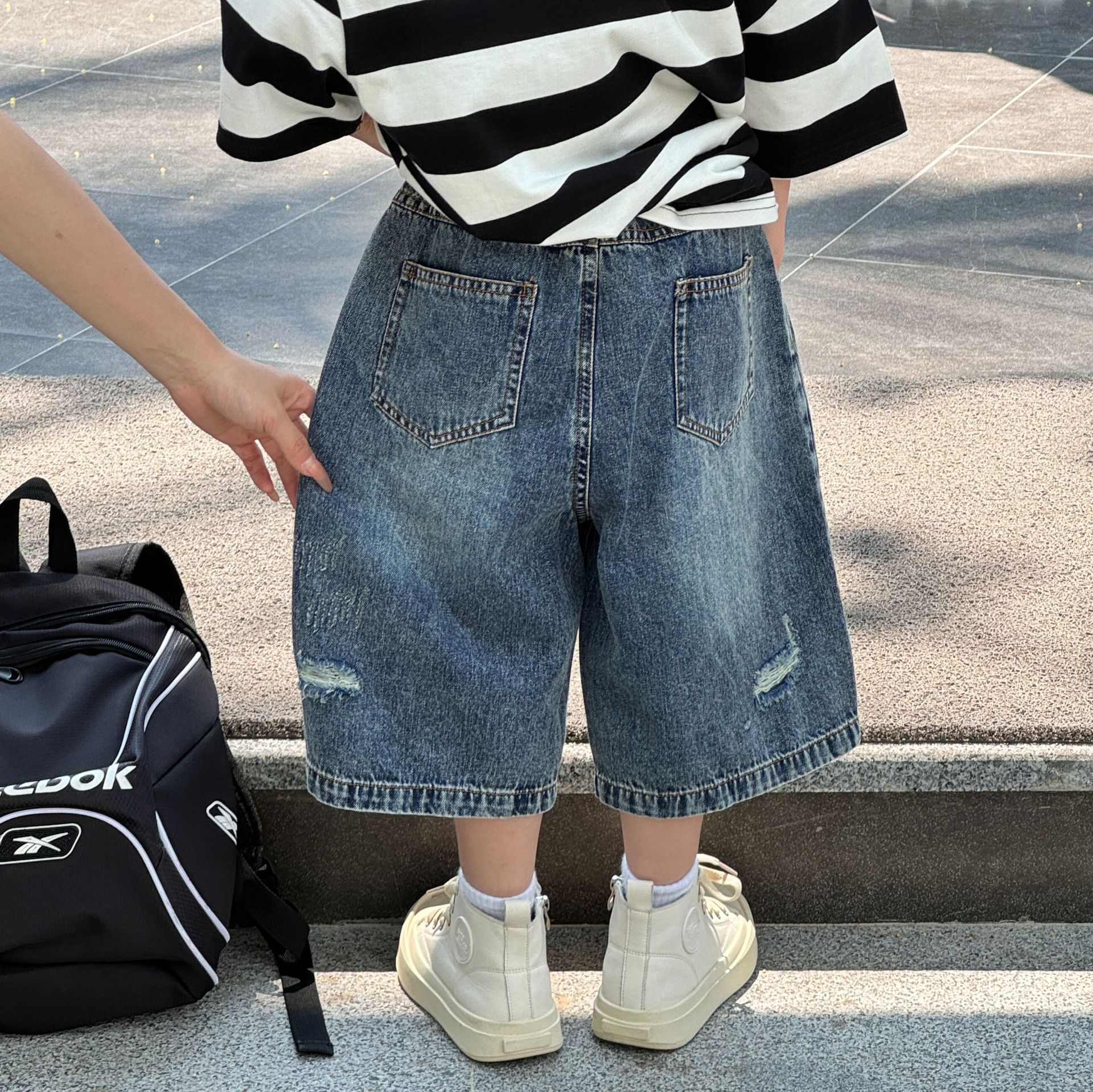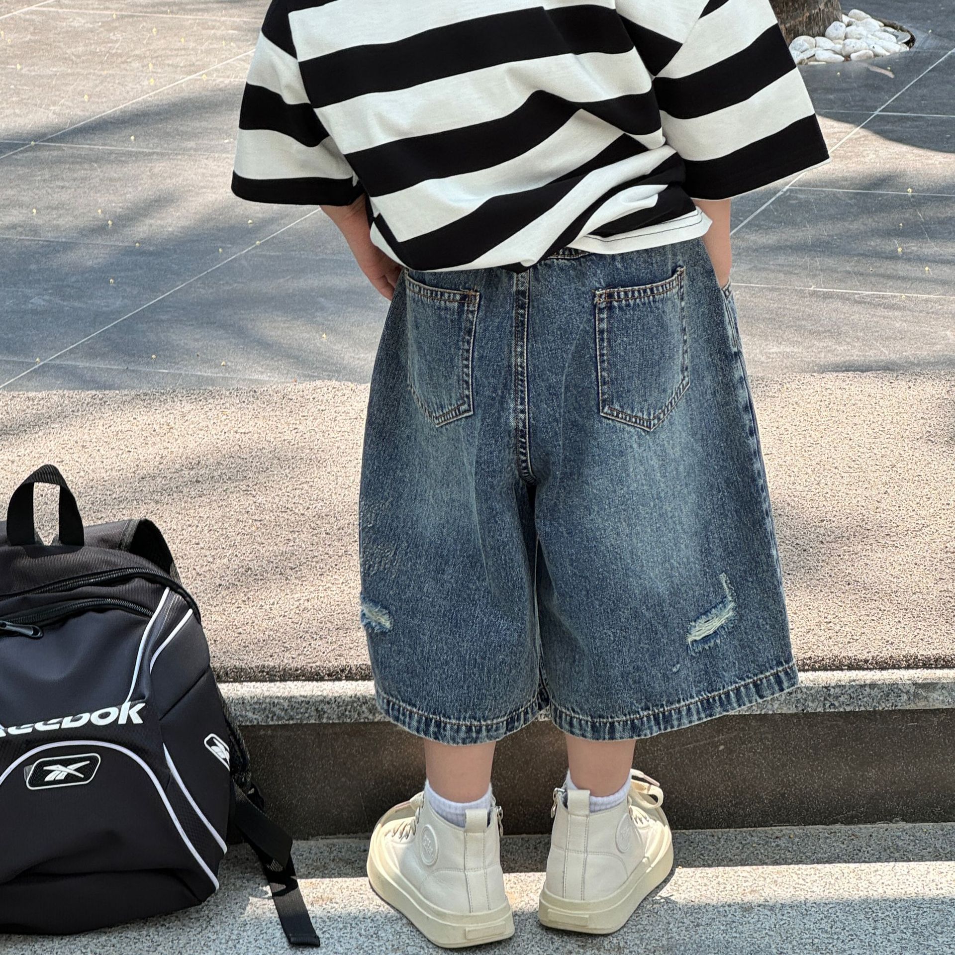 泰如夏季新款韩版男童纯色百搭破洞洋气时尚牛仔短裤儿童裤潮
