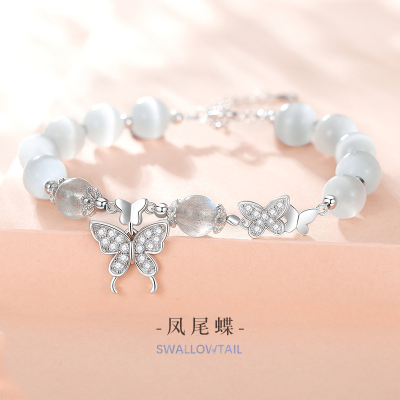 蝴蝶纯银925手链女小众设计轻奢款猫眼石手环送闺蜜ins风锆石手饰