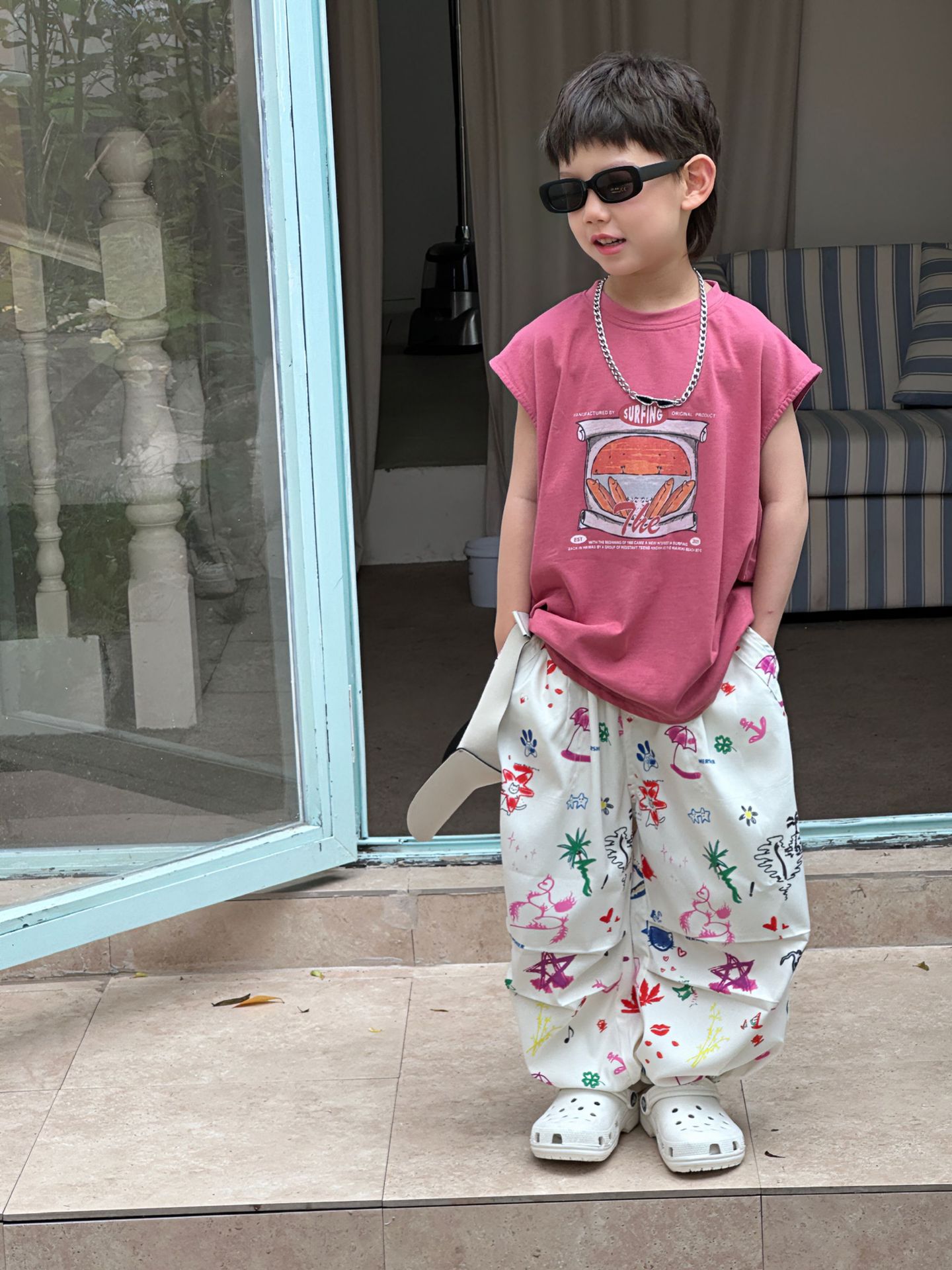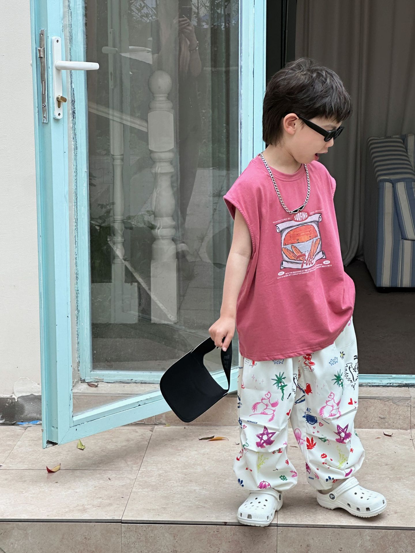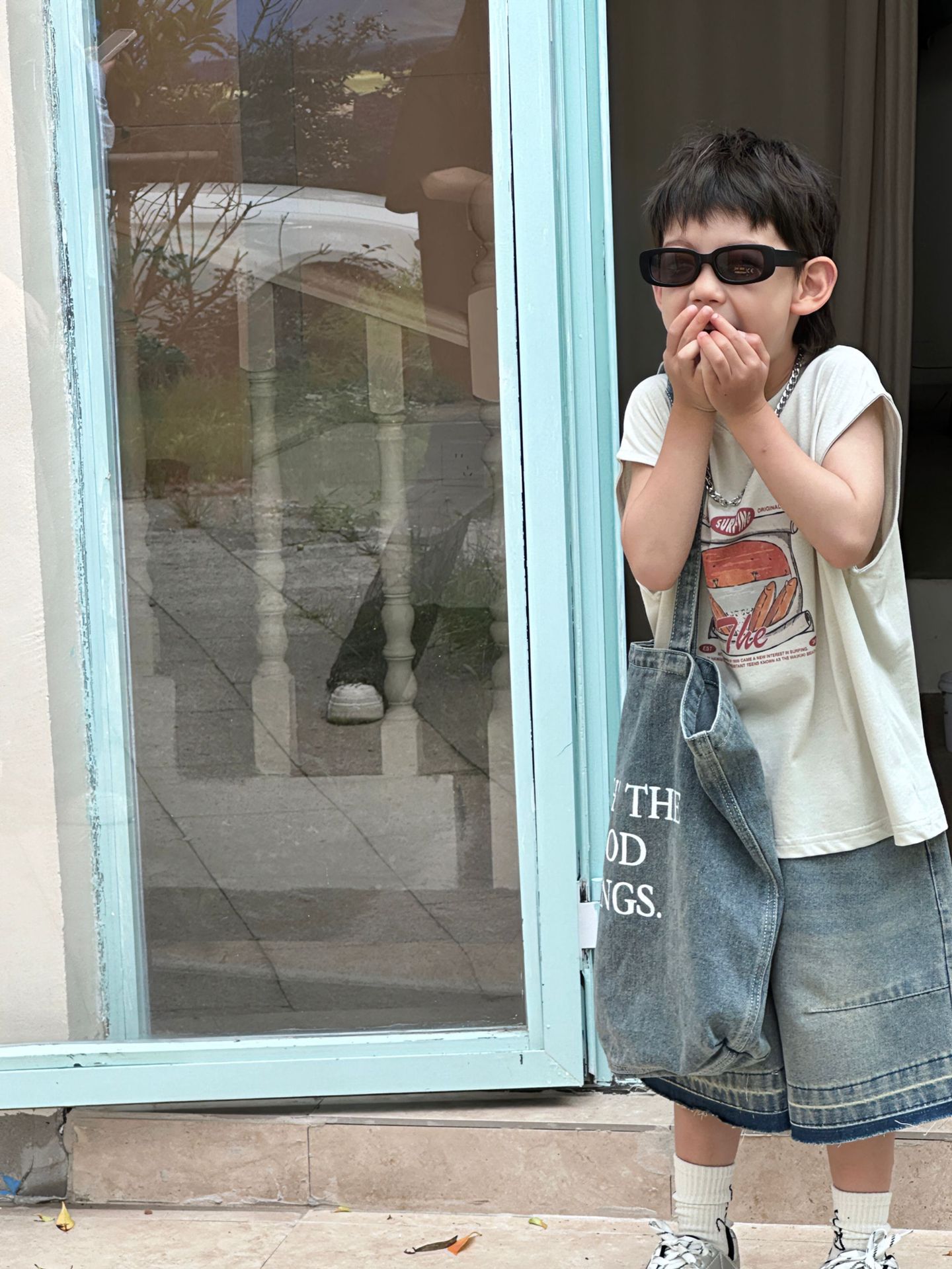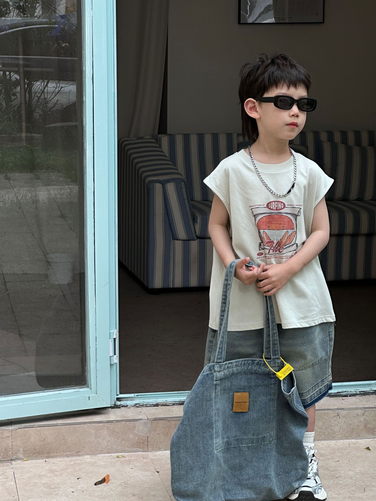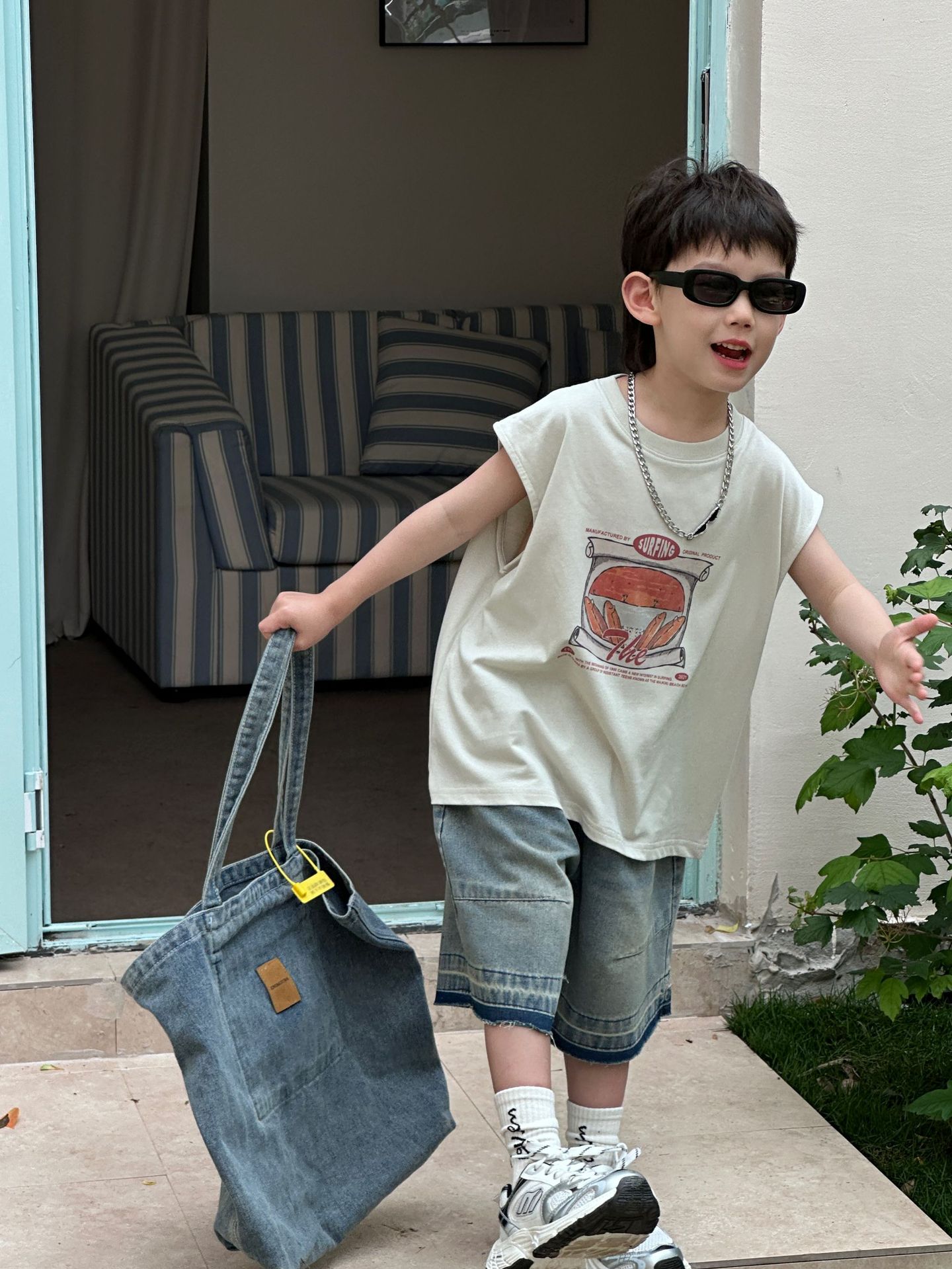 泰如夏季新款韩版男童时尚纯色卡通百搭洋气无袖儿童T恤上衣