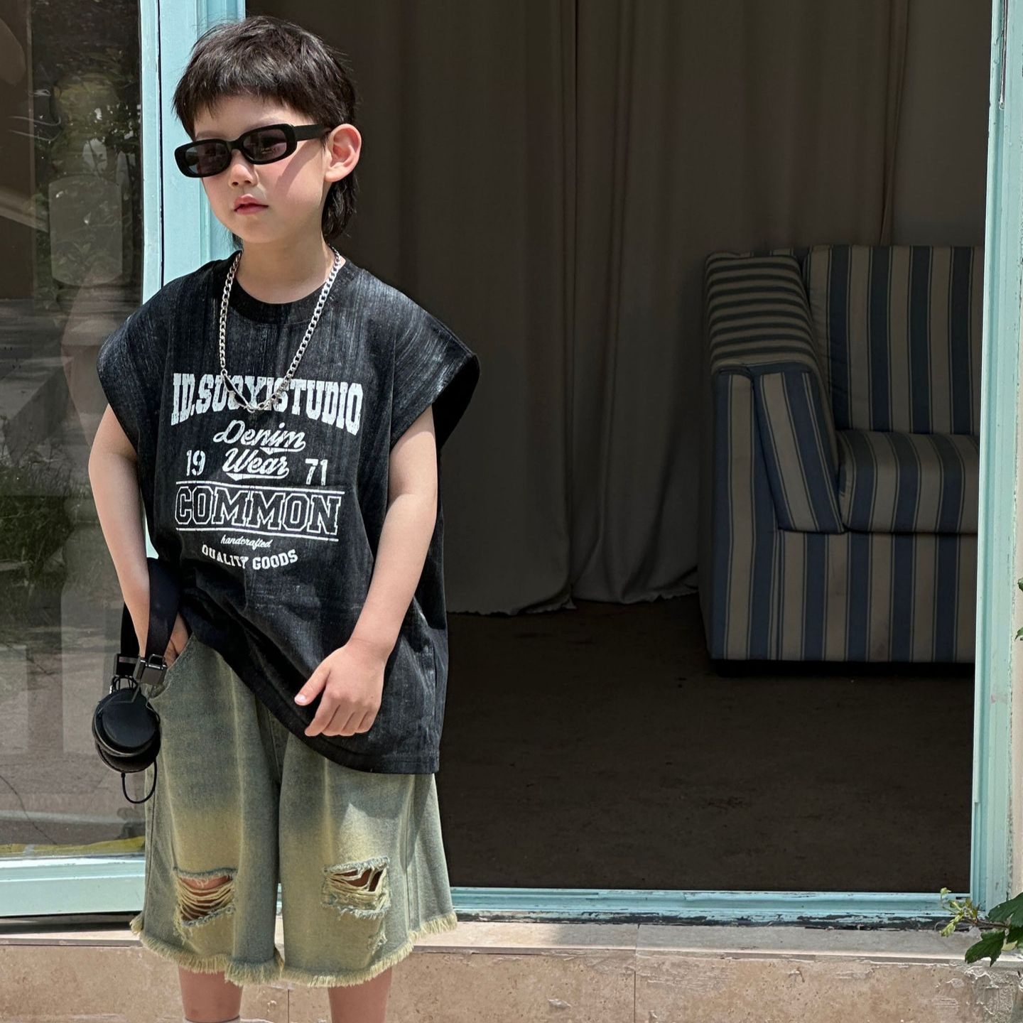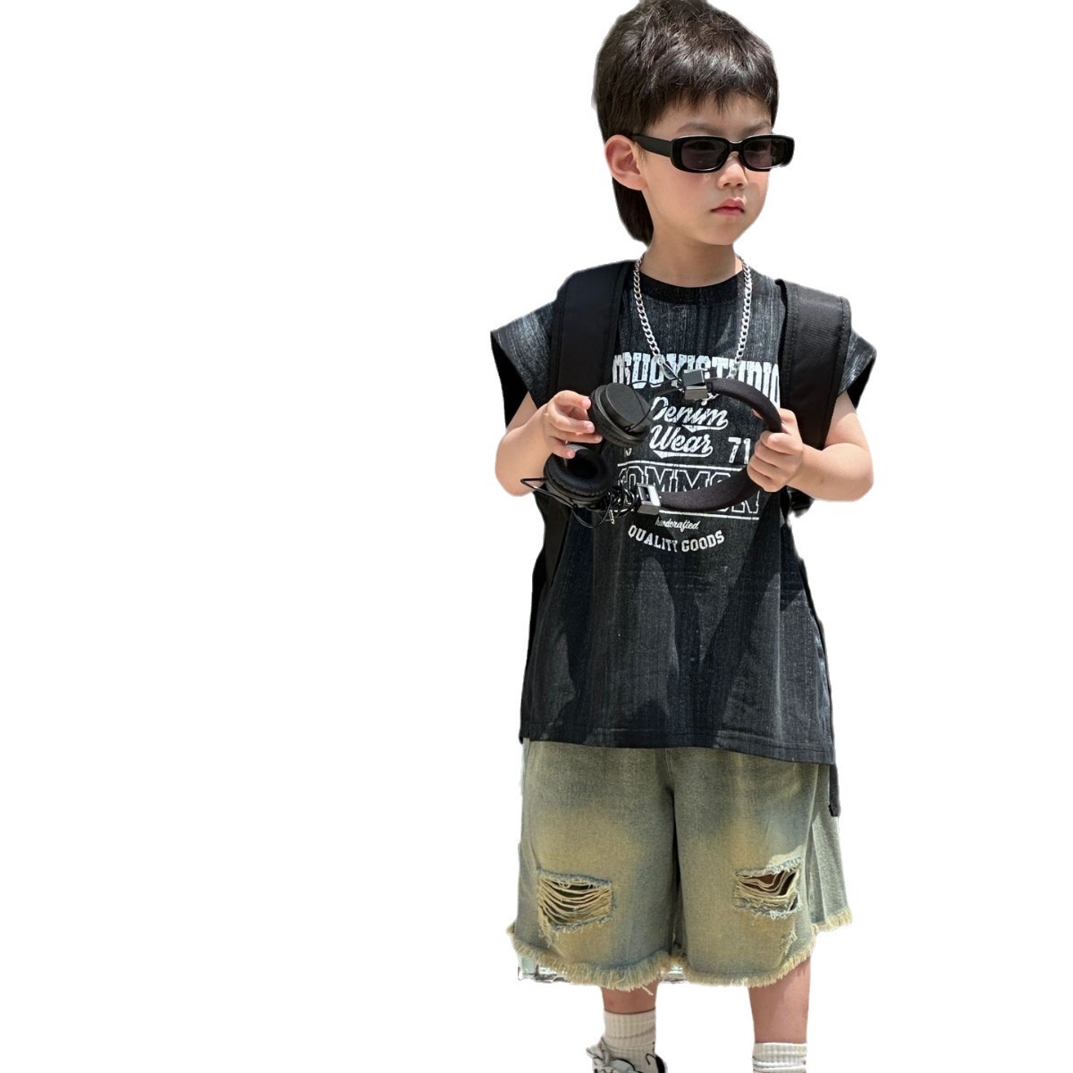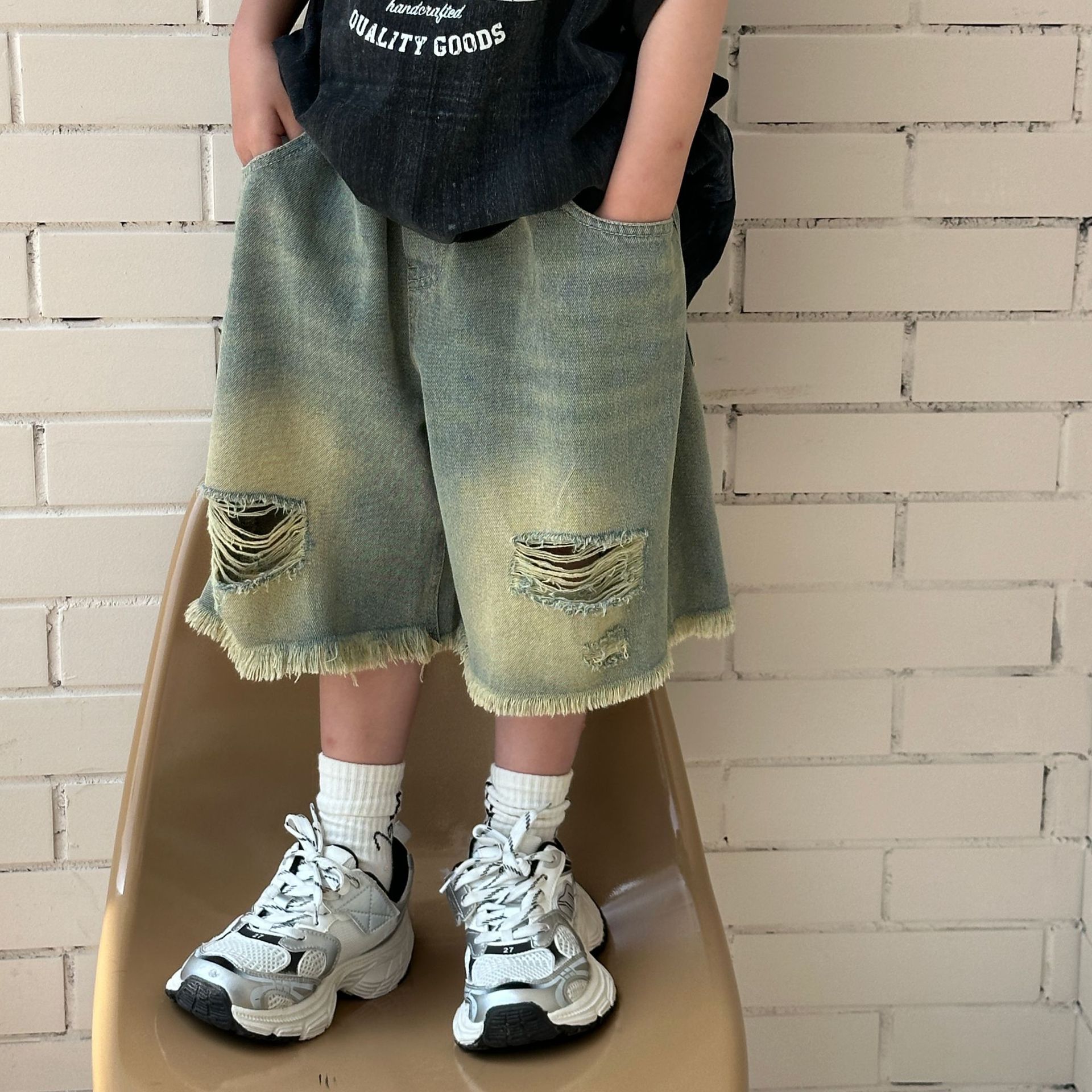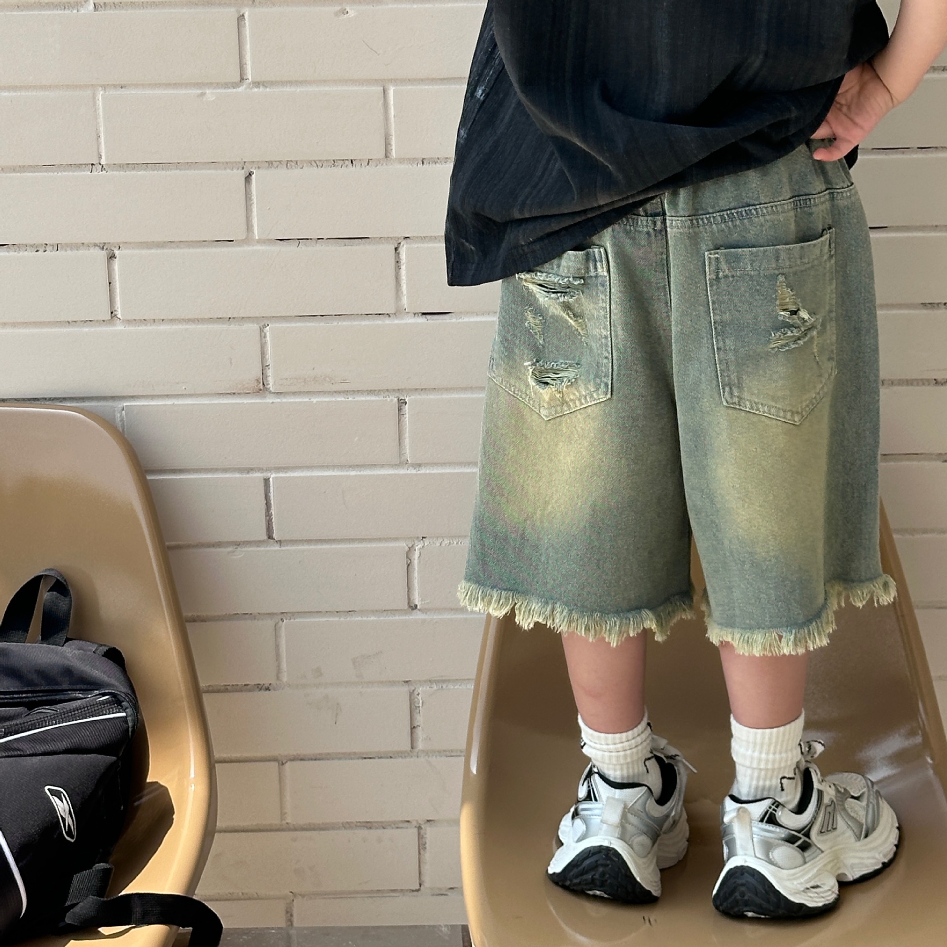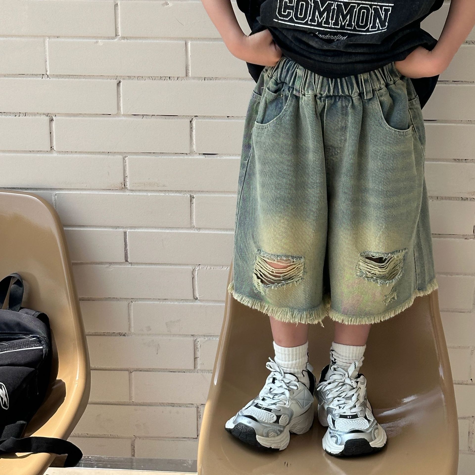 泰如夏季新款韩版男童复古美式洋气破洞牛仔短裤儿童裤潮